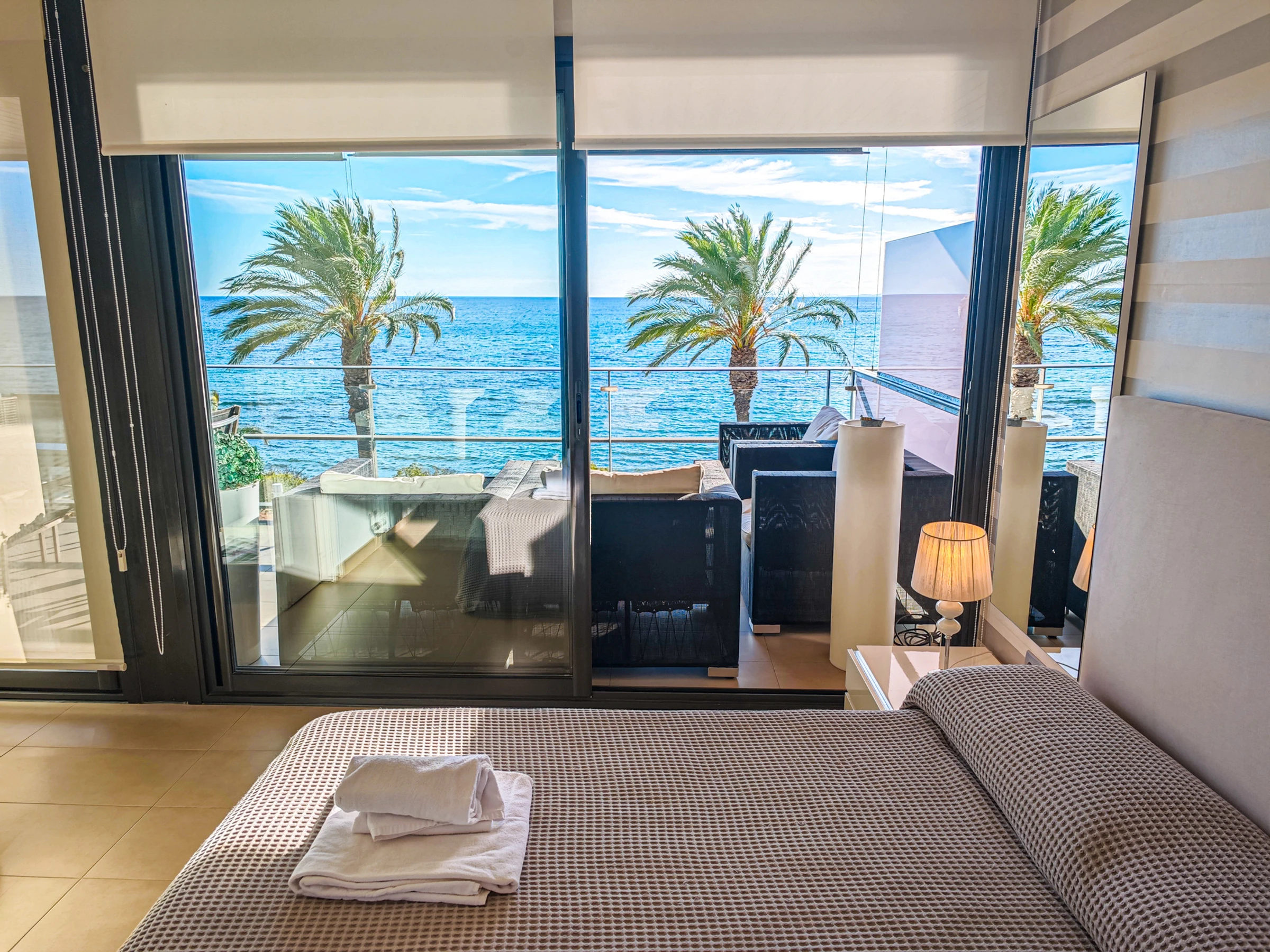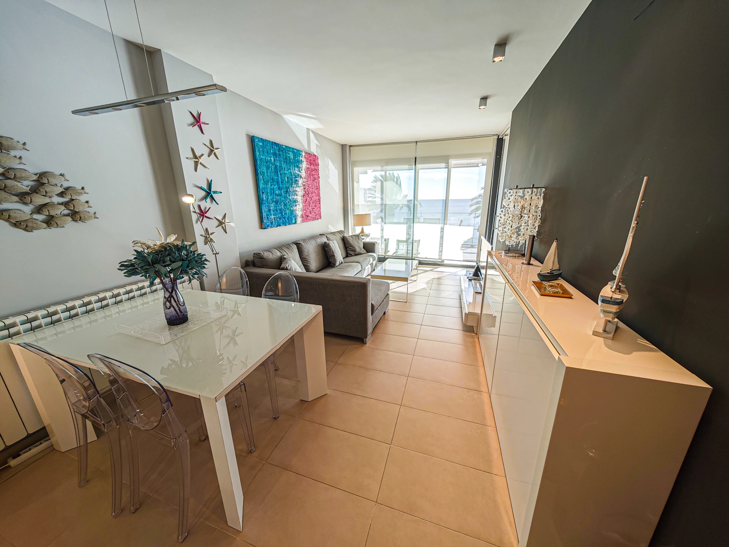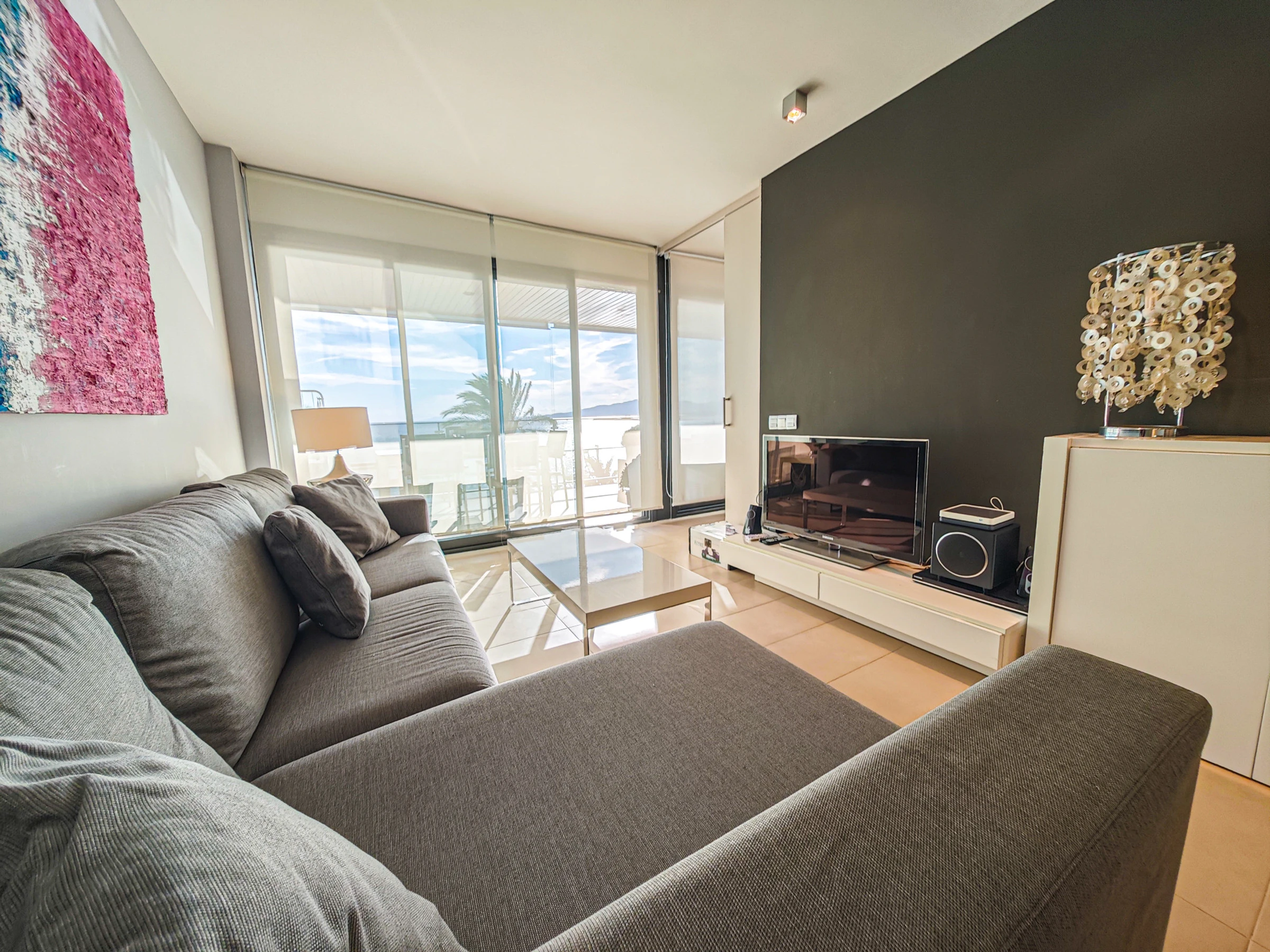 Spectacular apartment in first line of beach in Cambrils. The Tropicana Mar accommodation is a new accommodation, furnished with great taste and high stanting, located on the beachfront with spectacular views of the beach.