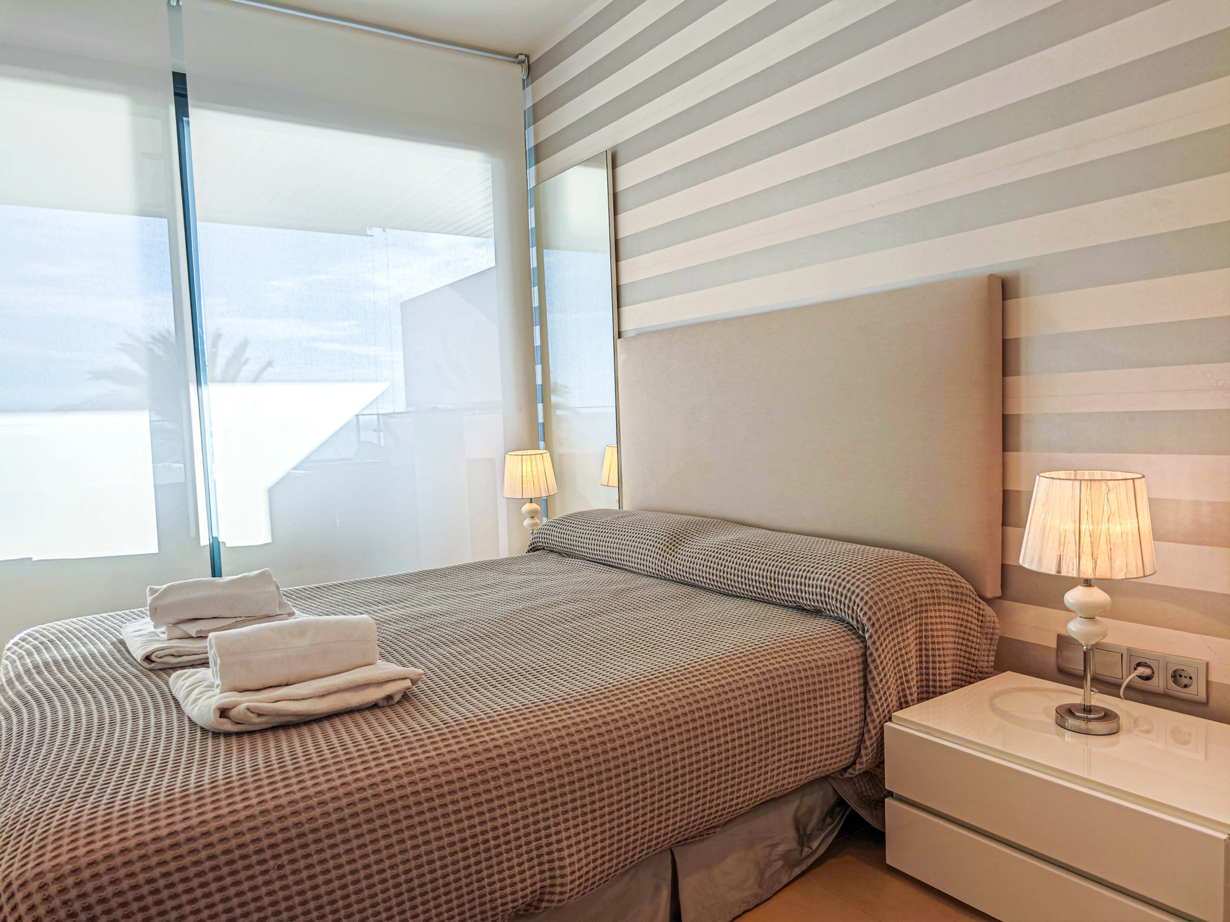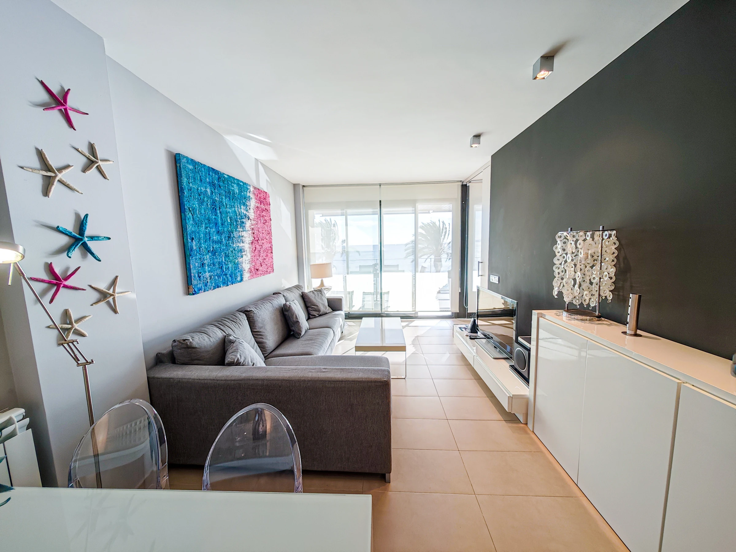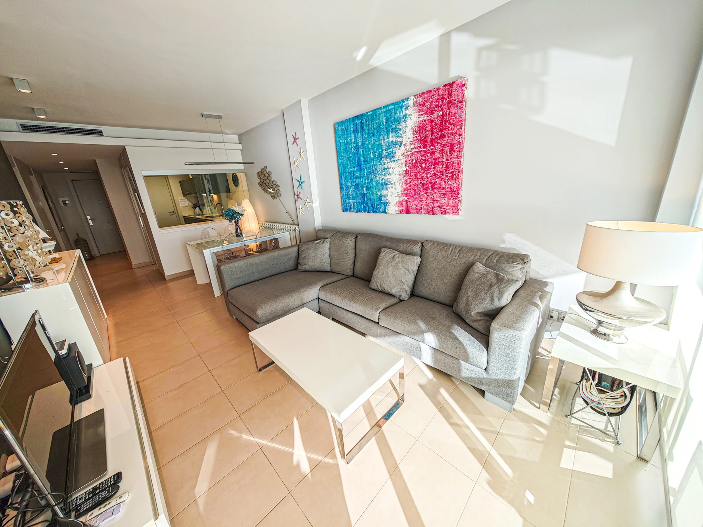 Spectacular apartment in first line of beach in Cambrils. The Tropicana Mar accommodation is a new accommodation, furnished with great taste and high stanting, located on the beachfront with spectacular views of the beach.
