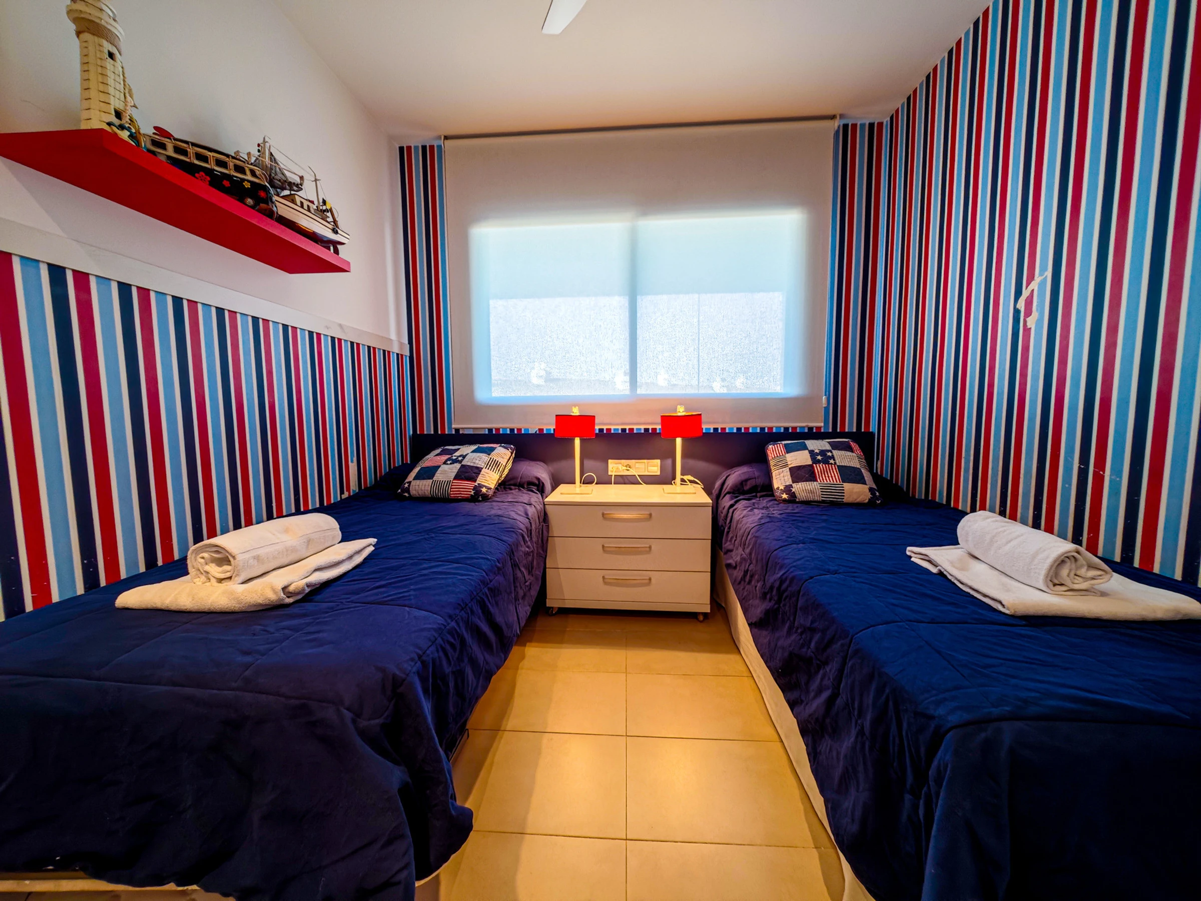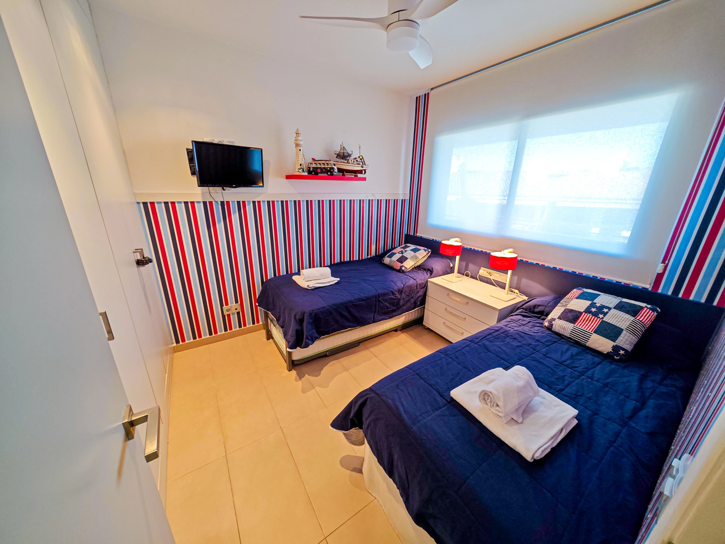 It has 2 double bedrooms, well equipped kitchen and 2 bathrooms with shower. It has a nice communal pool and garden. The accommodation is located in the center of Cambrils a few meters from the port.