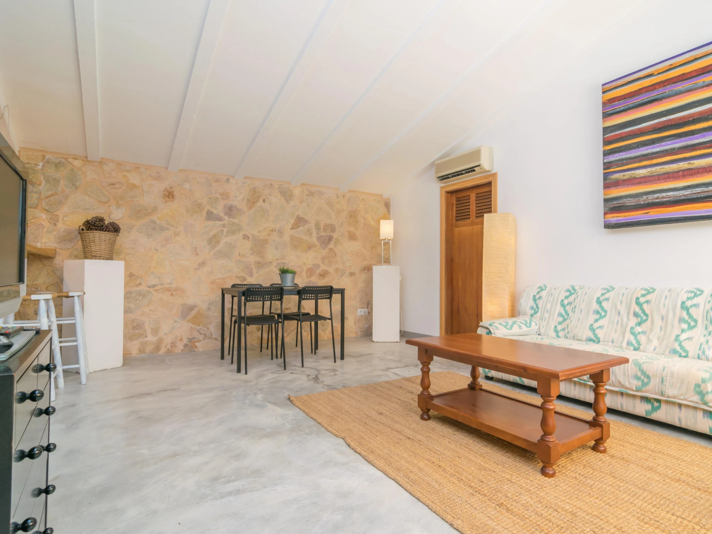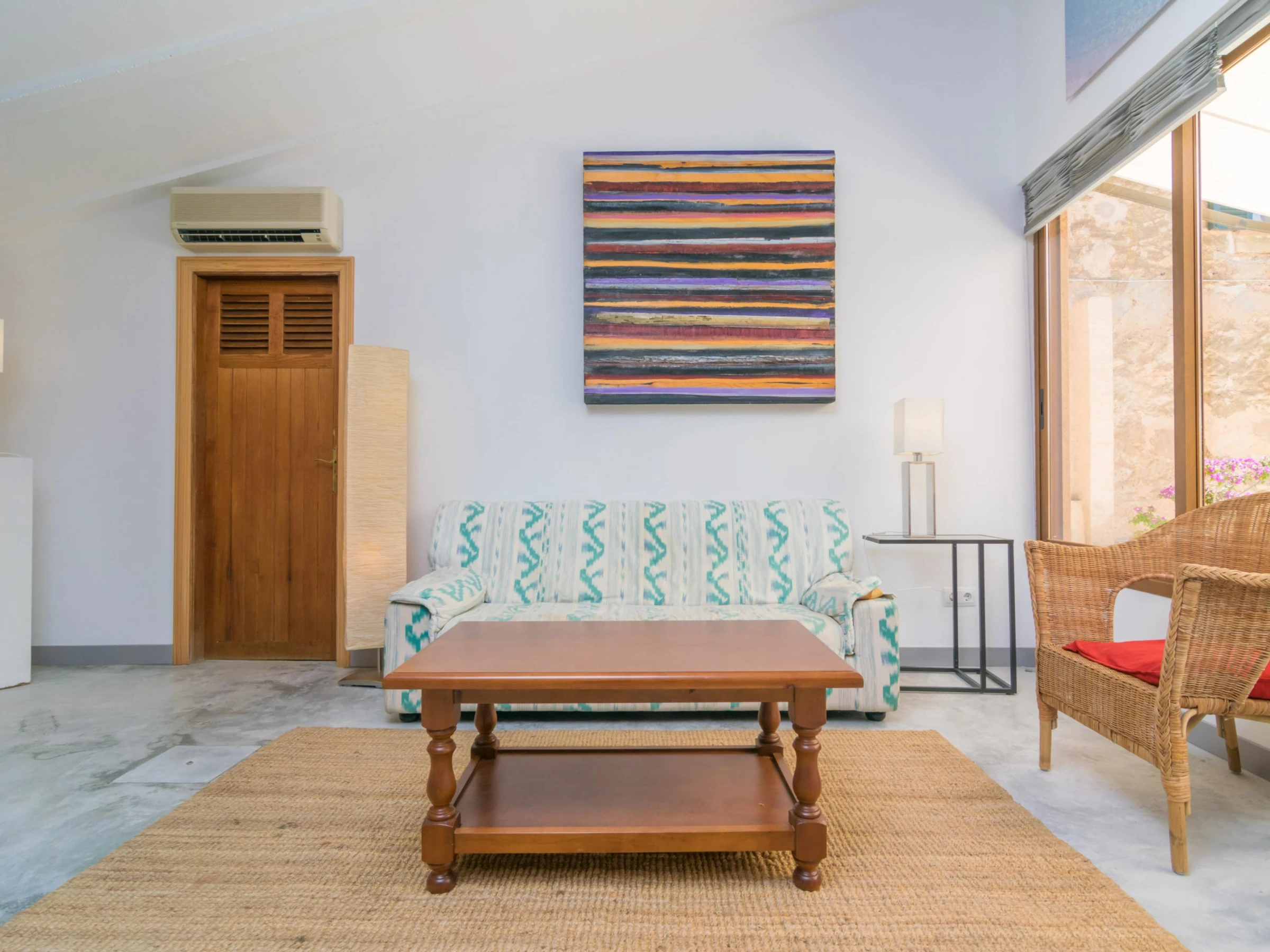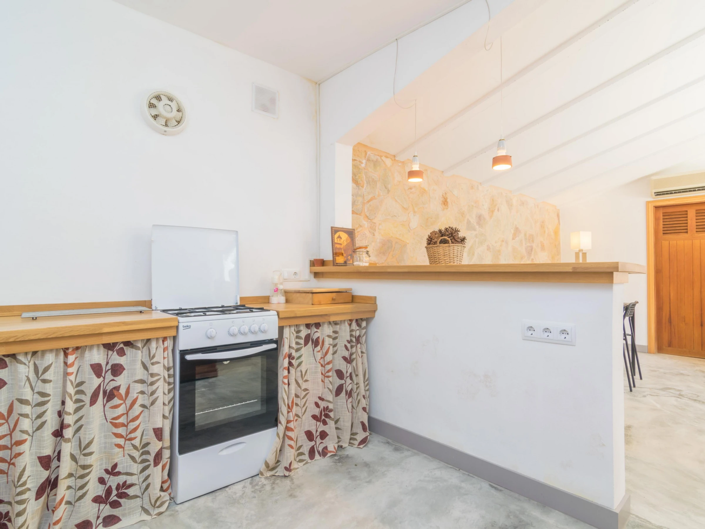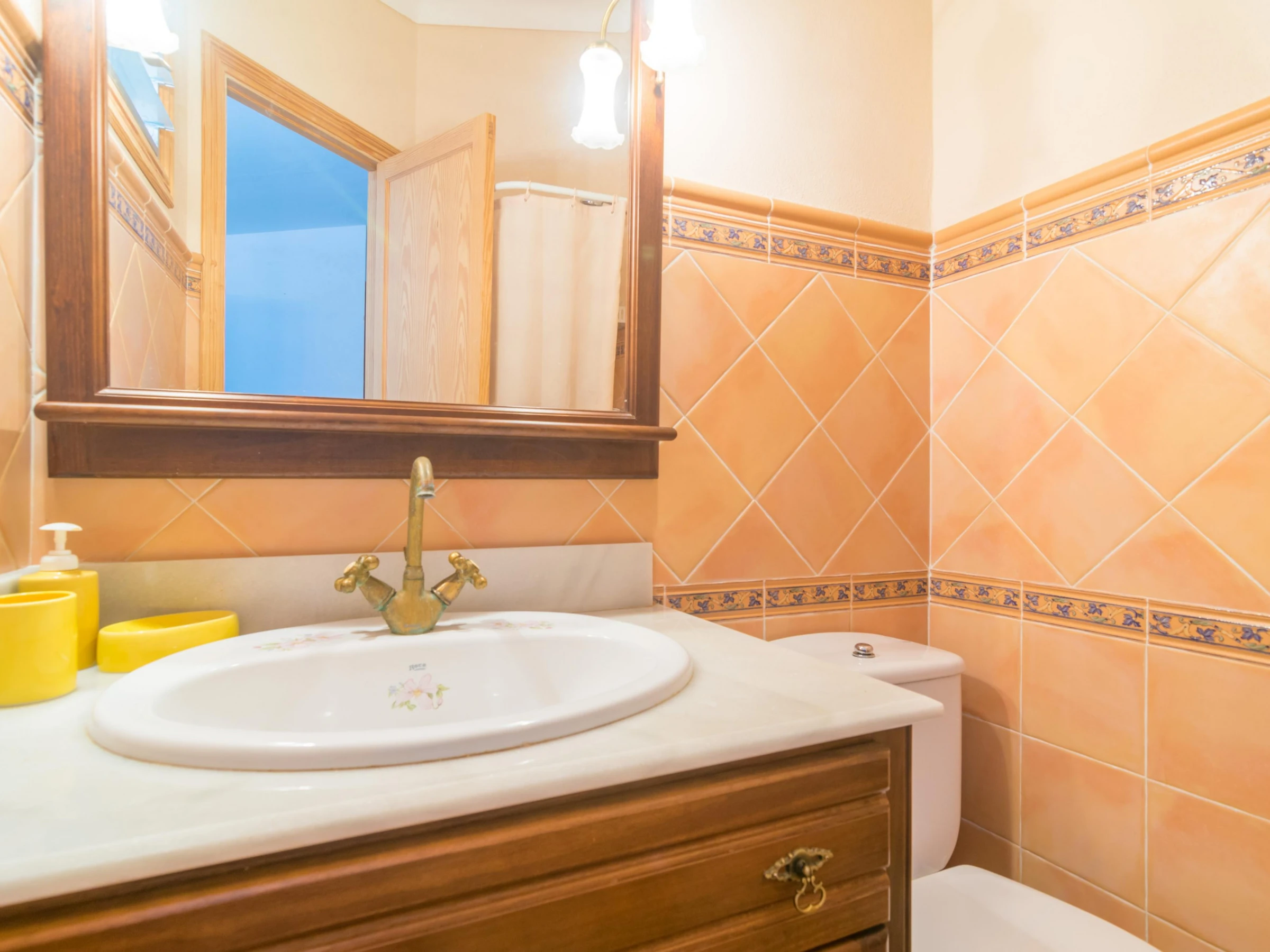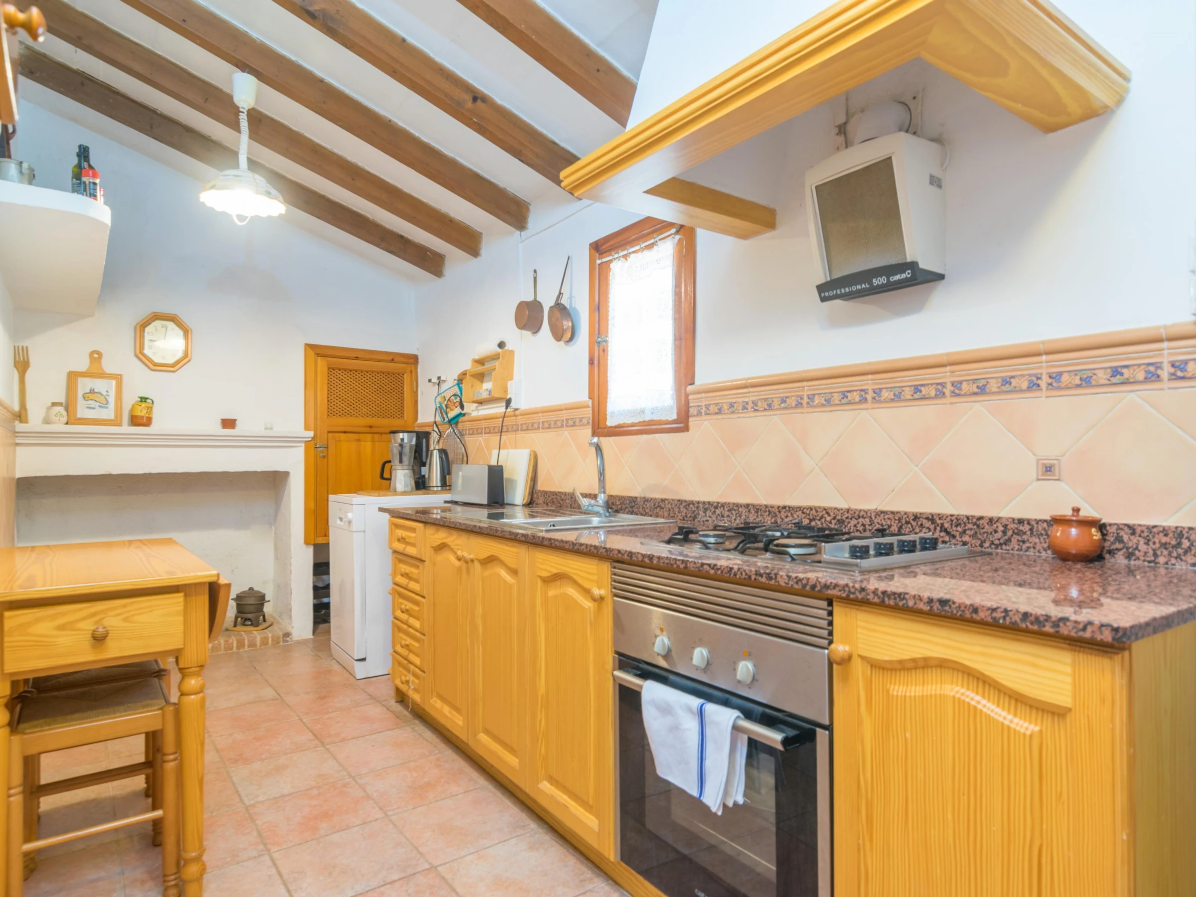 When you enter the main house, you find a spacious and cool living room where you can chat or rest on the sofas while watching the satellite TV channels and enjoying the air-conditioning when it is hot outside. You find the dining table with elegant chairs next to it. The well cared kitchen offers a gas top and all the needed equipment to cook comfortably but still preserving the traditional and beautiful Mallorcan style. The laundry room is independent and it has a washing machine, an iron and an ironing board. After a long day full of activities find your place to rest in one of the three bedrooms. One of them has a double bed and a fan and it is located on the ground floor. On the first floor you find another bedroom with a double bed and the last bedroom with two twin beds, air-conditioning and an en-suite shower bathroom. There is another shower bathroom downstairs for the whole house. And if you are travelling with your baby we can prepare a cot and a high chair.