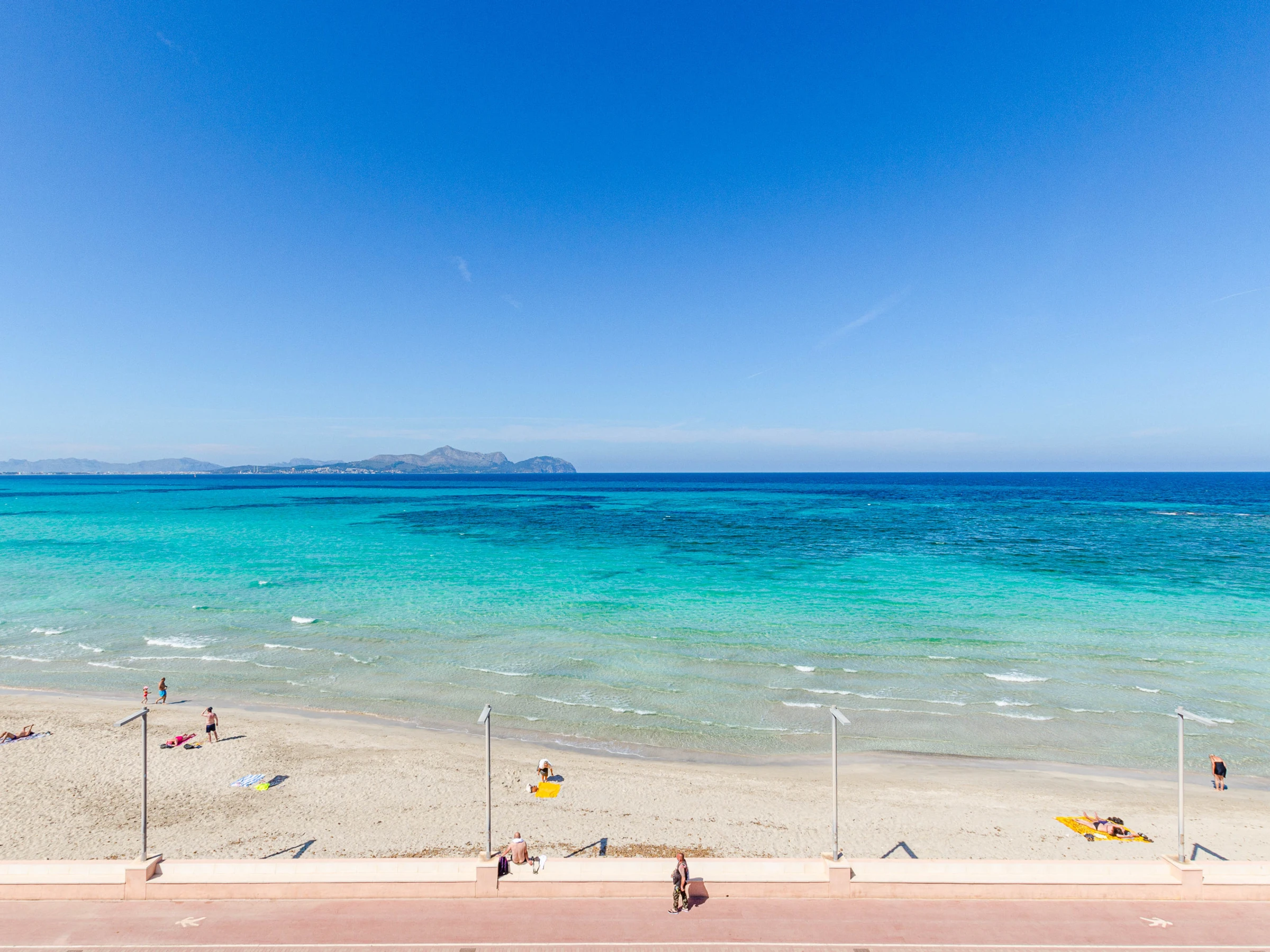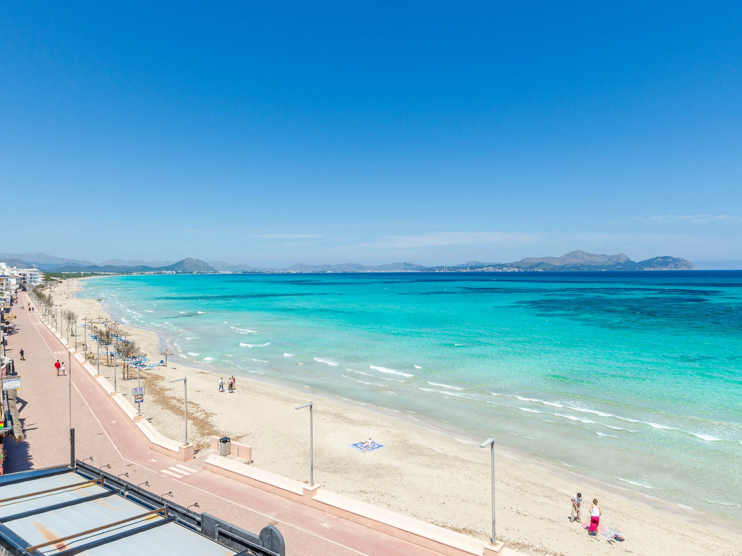 The village of Can Picafort is in the north of Majorca and it is famous for the nice beach, the good restaurants and lots of leisure activities. During summer, you can enjoy a beach holiday and many beach cafés invite you to enjoy a drink with sea views. During the low season, you can enjoy hiking, cycling, playing golf or make different excursions. The beach of Playa de Muro is fine grained and golden and family friendly. A car isn’t necessary as all important services are nearby and can be reached by foot.