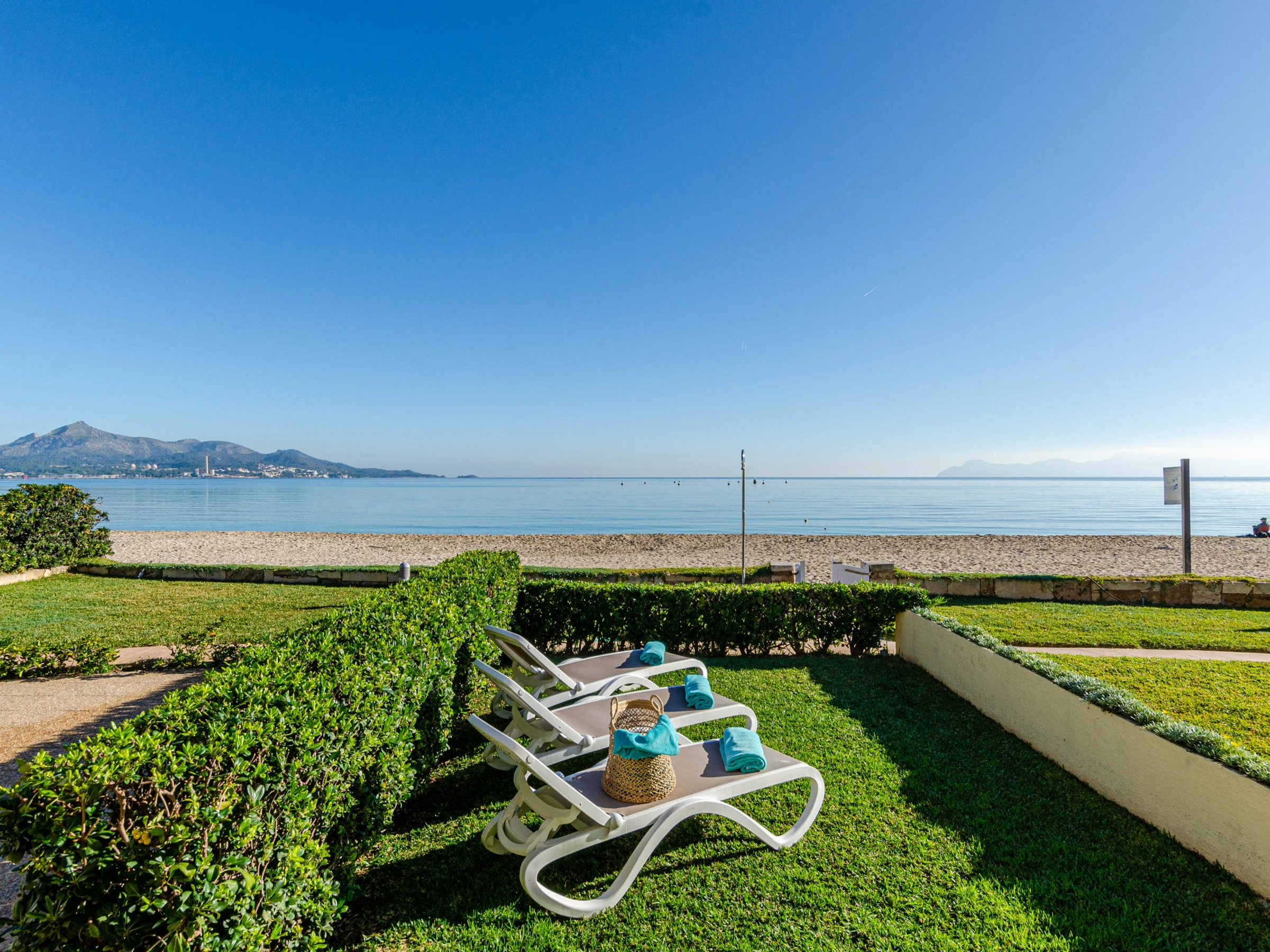 The area of Playa de Muro is perfect for a beach holiday. Nearby, there are supermarkets, restaurants and a bus station. We recommend you to visit the old town of Alcúdia, the lighthouse of Formentor and the market in Sineu, which takes place every Wednesday. A car isn’t necessary, as long as you don’t want to move around the island.