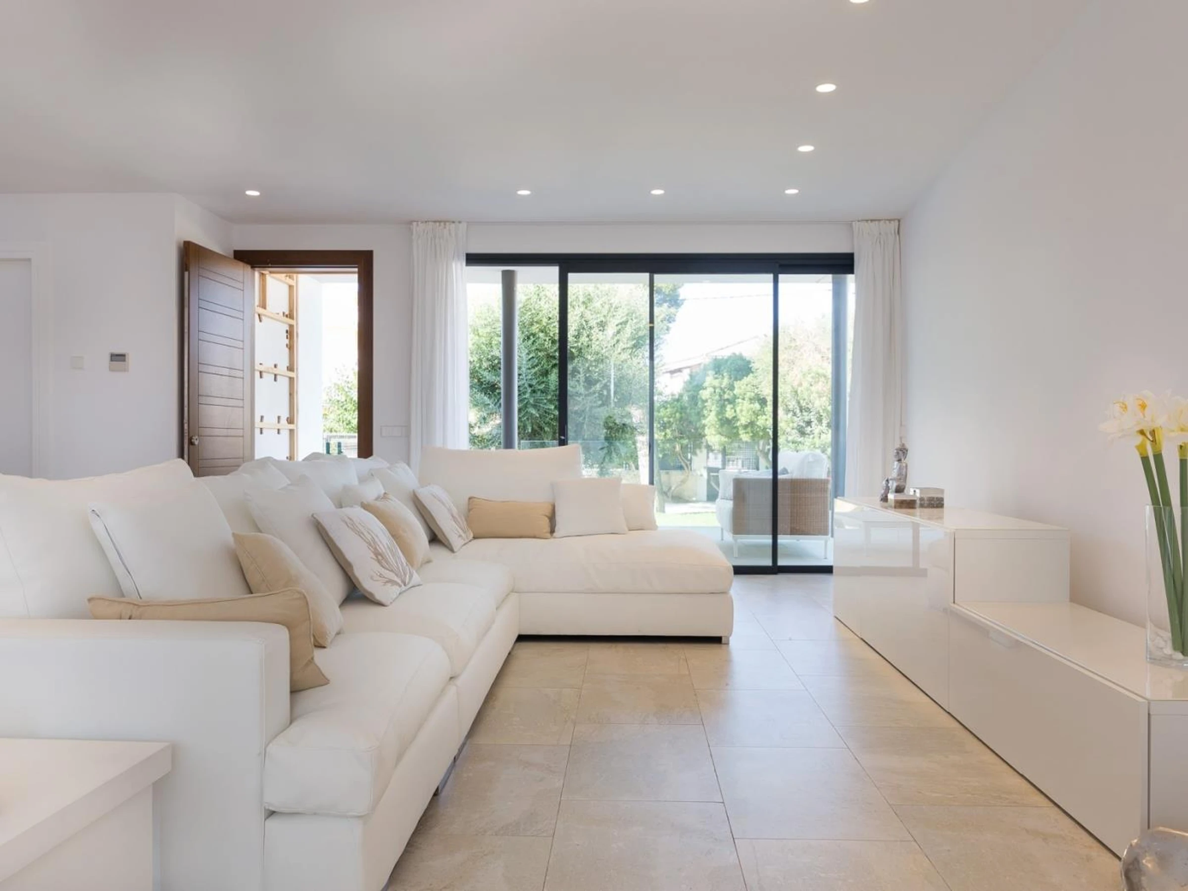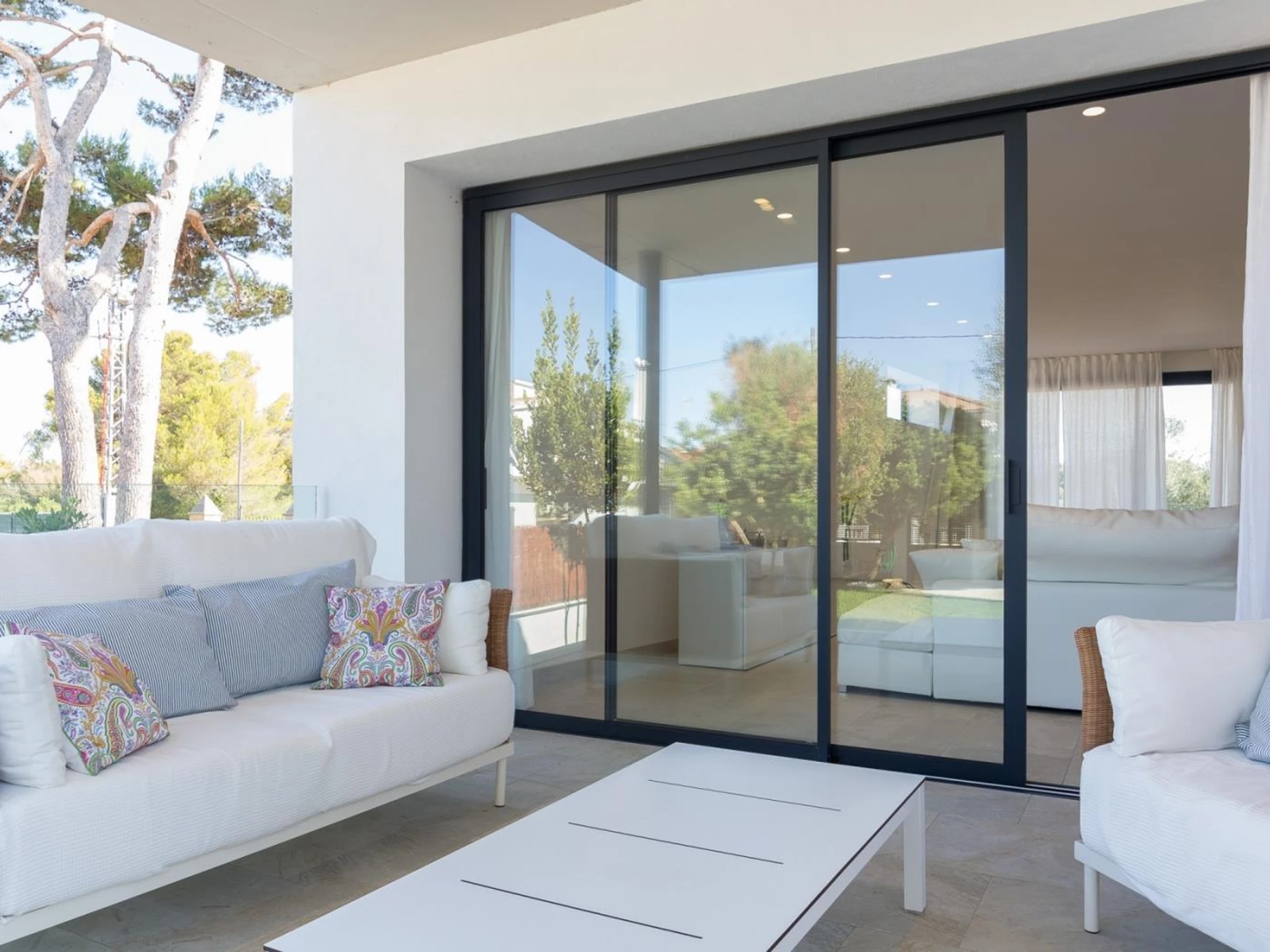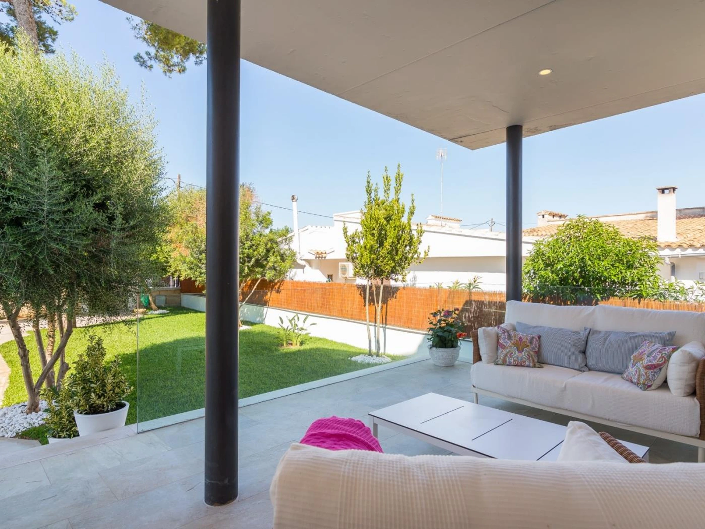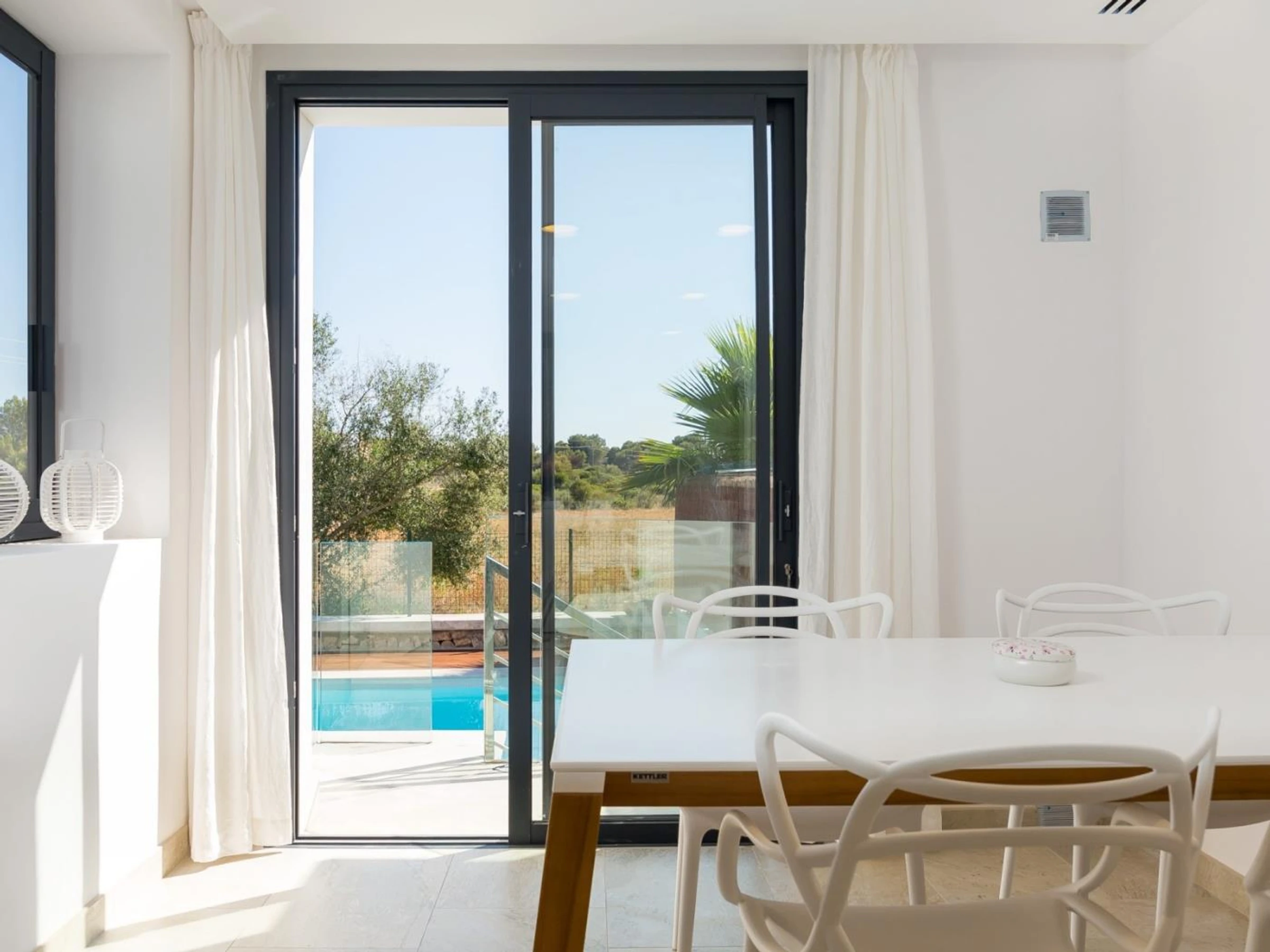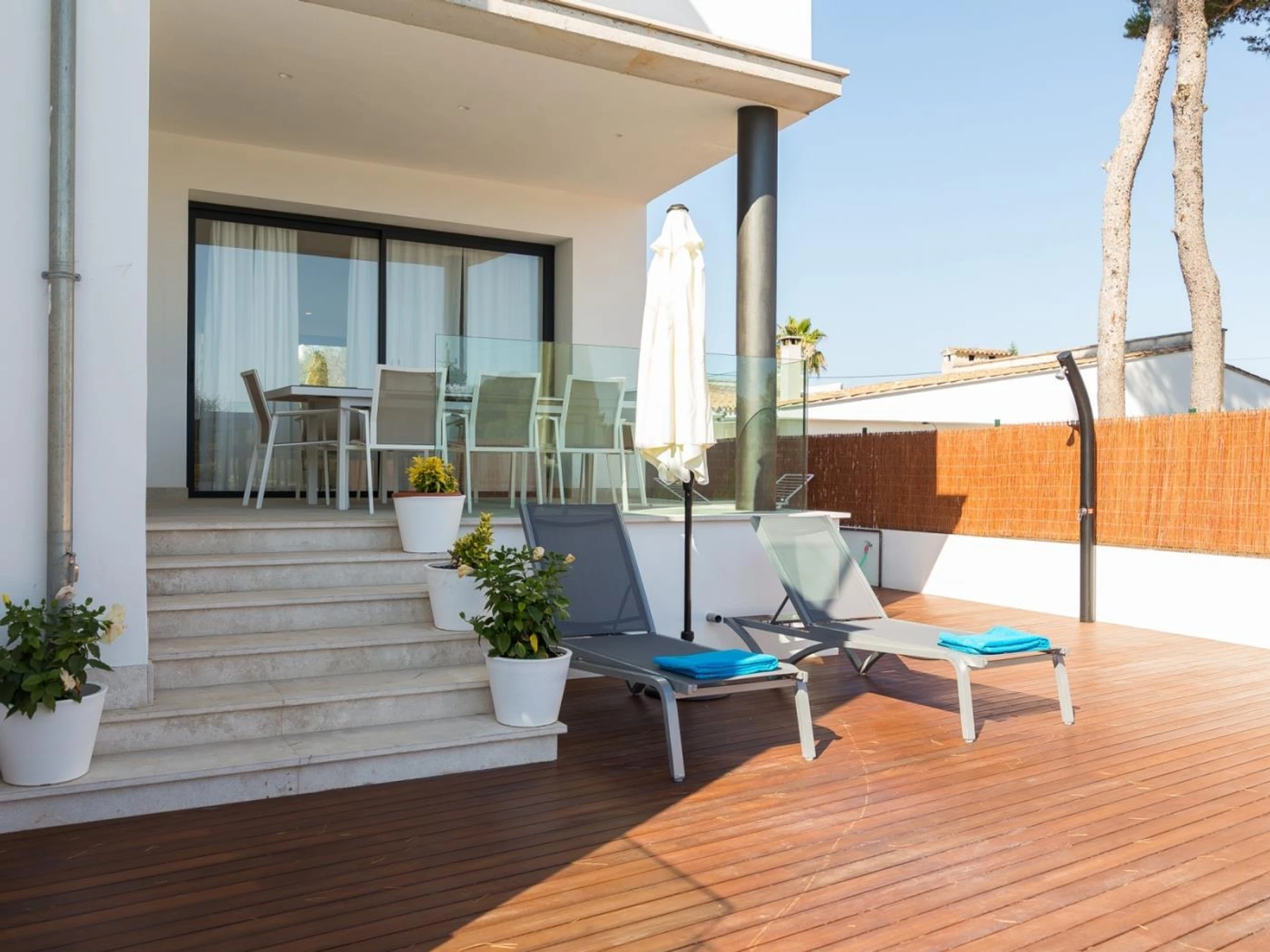 This modern newly built villa is located in a quiet residential area of Can Picafort, 500 meters from the beach. The house, tastefully decorated with high quality furniture, has all the amenities you may need: air conditioning throughout the house, heating and wifi. In addition, has swimming pool, garden of natural grass and several furnished terraces where to enjoy the Mediterranean climate.