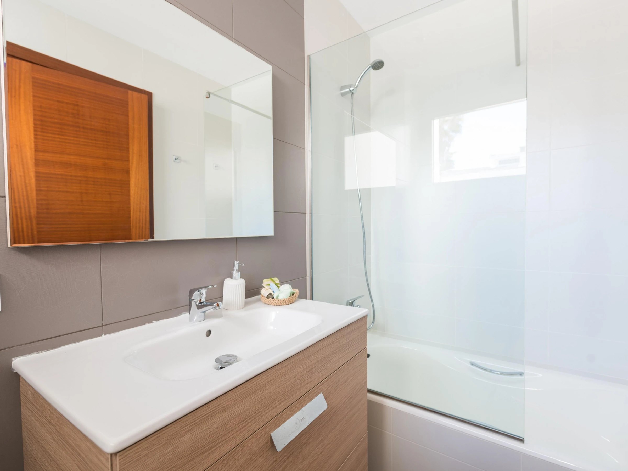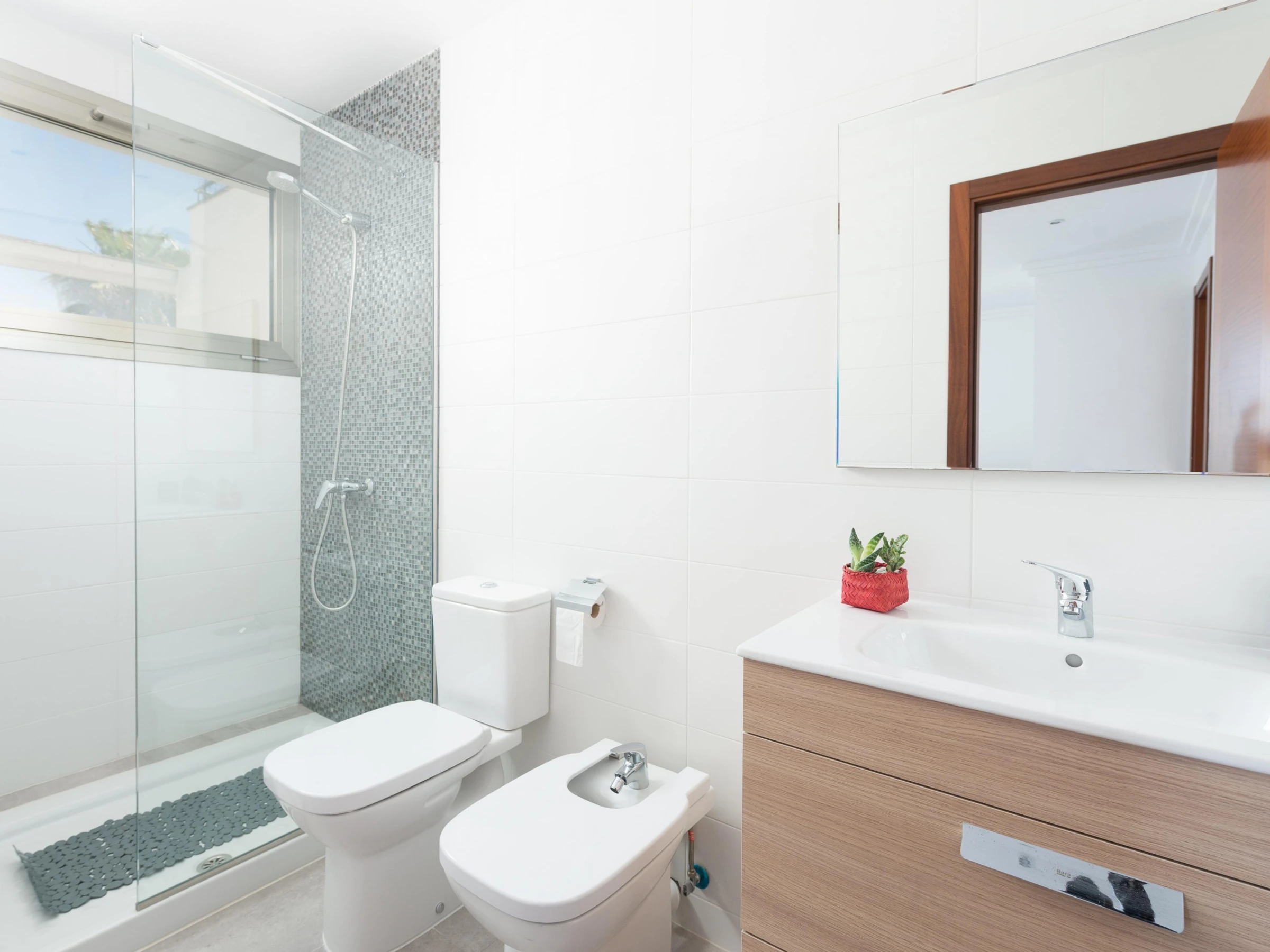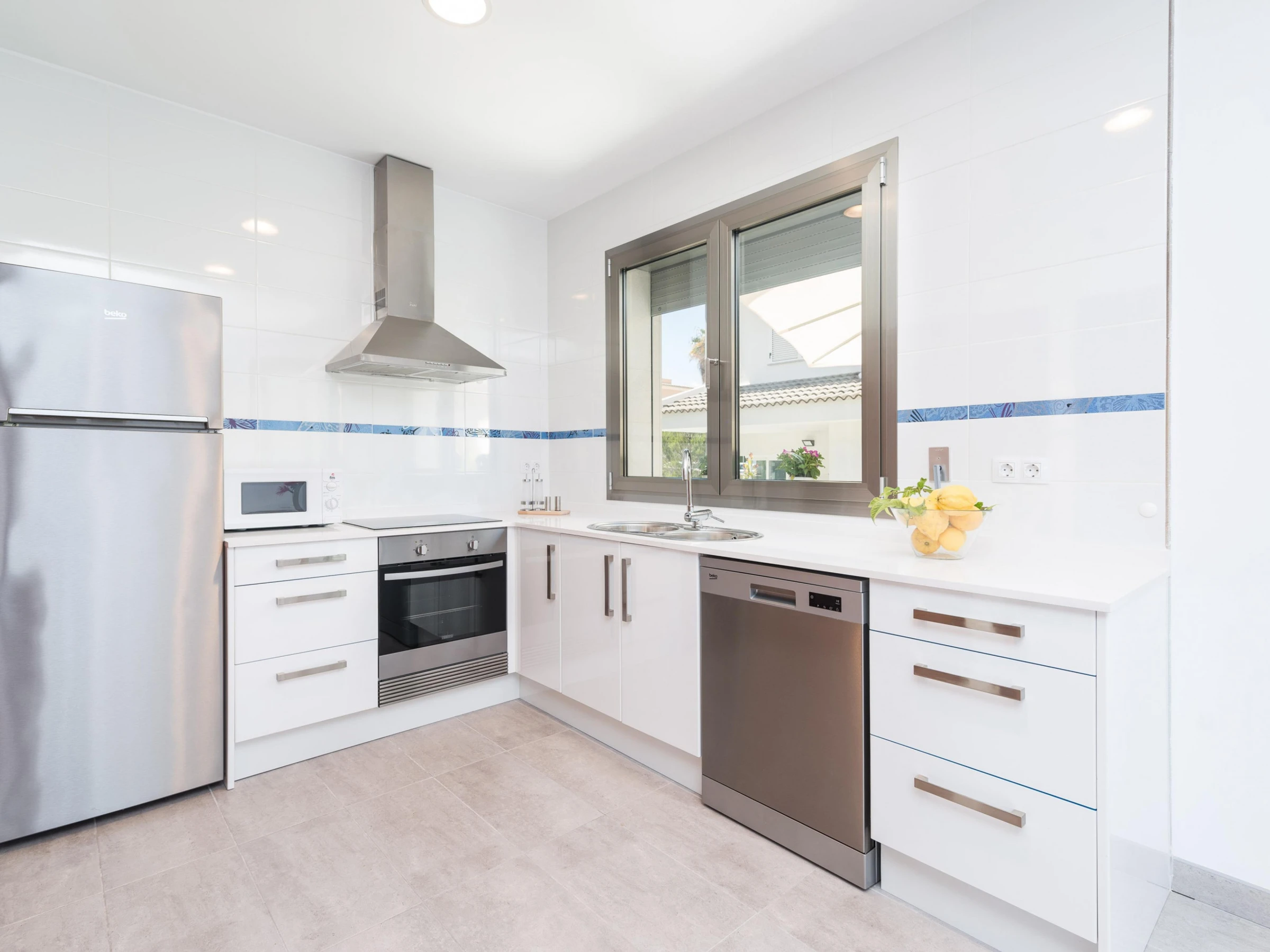 The rooms have a fresh design, with soft colour furniture and large windows for a great luminosity. The living-dining room is perfect to spend time with your loved ones, watching satellite TV or enjoying dinners all together. The open kitchen has all you need to prepare simple dishes and it features a ceramic hob, a microwave and an oven among others. You will prepare the best breakfast with the coffee maker, the toaster and the juicer. The ground floor is completed with a bathtub bathroom. The house offers 3 comfortable bedrooms, all of them on the first floor and all of them with a closet. You can choose between 2 bedrooms with two twin beds each and one with a double bed. One of the two twin beds bedrooms has an en-suite shower bathroom. There is another shower bathroom upstairs. We can prepare 2 cots and 2 high chairs on request. The house features ducted air-conditioning (only cold air).