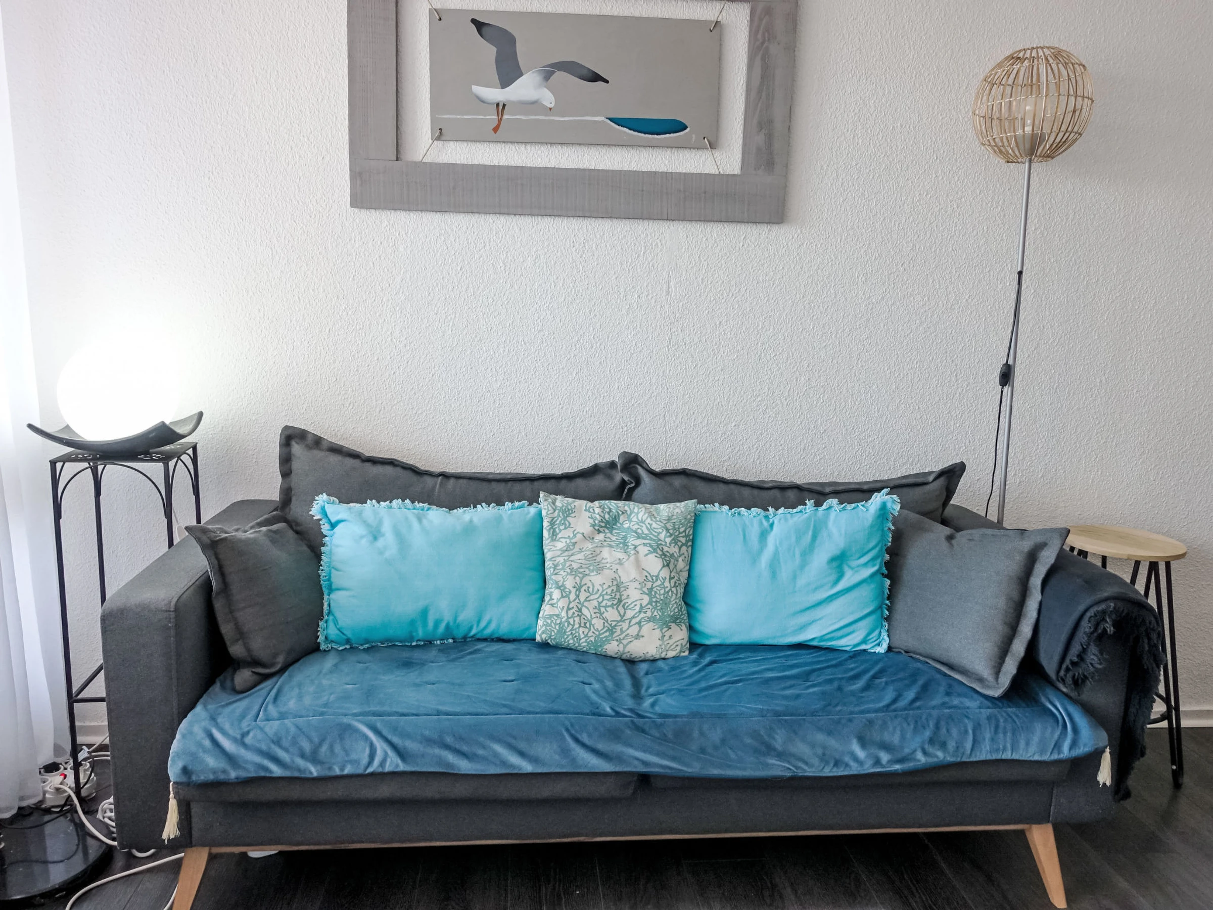 3-room apartment 70 m2 on 4th floor. Comfortable and beautiful furnishings: living/dining room with TV (flat screen). Exit to the terrace. 2 rooms, each room with 1 french bed (1 x 140 cm, length 190 cm). Exit to the balcony. Entrance hall with 1 sleeping facility (80 cm, length 190 cm). Open kitchen (oven, dishwasher, 3 ceramic glass hob hotplates, toaster, kettle, microwave, freezer, electric coffee machine). Shower, sep. WC, double hand-basin. Electric heating. Terrace 10 m2, roofed, west facing position. Terrace furniture. Very beautiful view of the port. Facilities: washing machine, iron. Internet (WiFi, free). Parking. Please note: non-smokers only. Smoke alarm. [hidden]