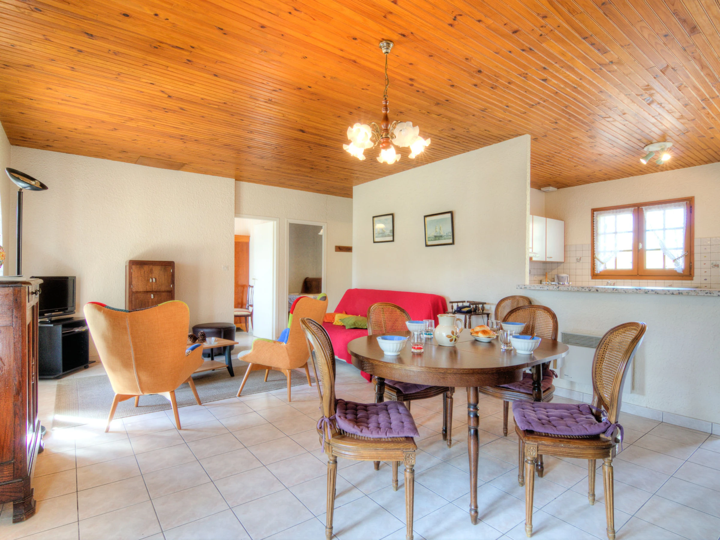3-room house 66 m2. Comfortable furnishings: living/dining room with dining table and flat screen. 1 room with 1 french bed (1 x 140 cm, length 190 cm). 1 room with 2 beds (90 cm, length 190 cm). Open kitchen (4 hot plates, oven, dishwasher, microwave, electric coffee machine). Bathroom, sep. WC. Electric heating. Terrace 12 m2, south facing position terrace 15 m2, north facing position. Terrace furniture, barbecue. Facilities: washing machine, iron. Internet (WiFi, extra). Garage. Please note: smoke alarm. [hidden]