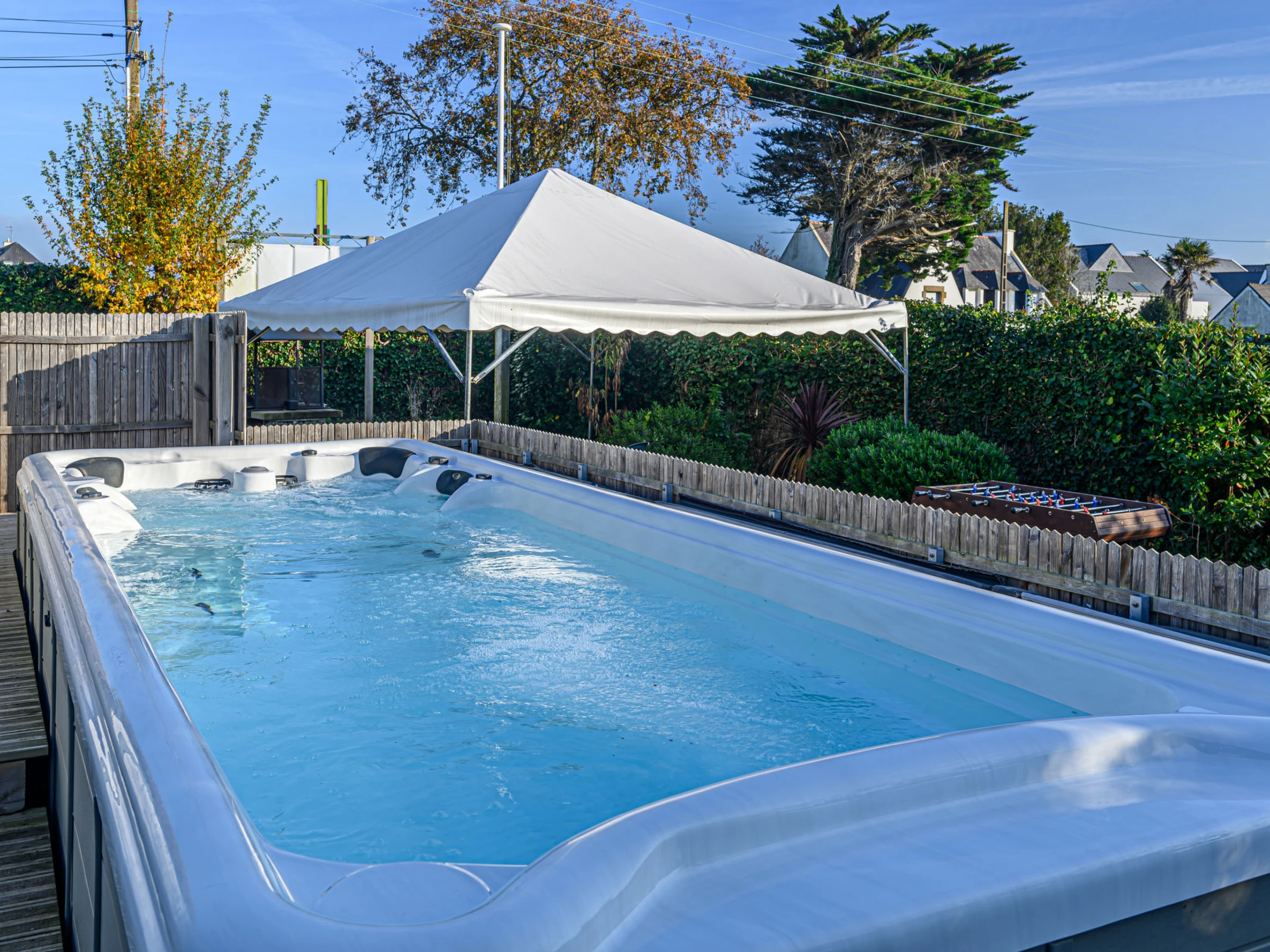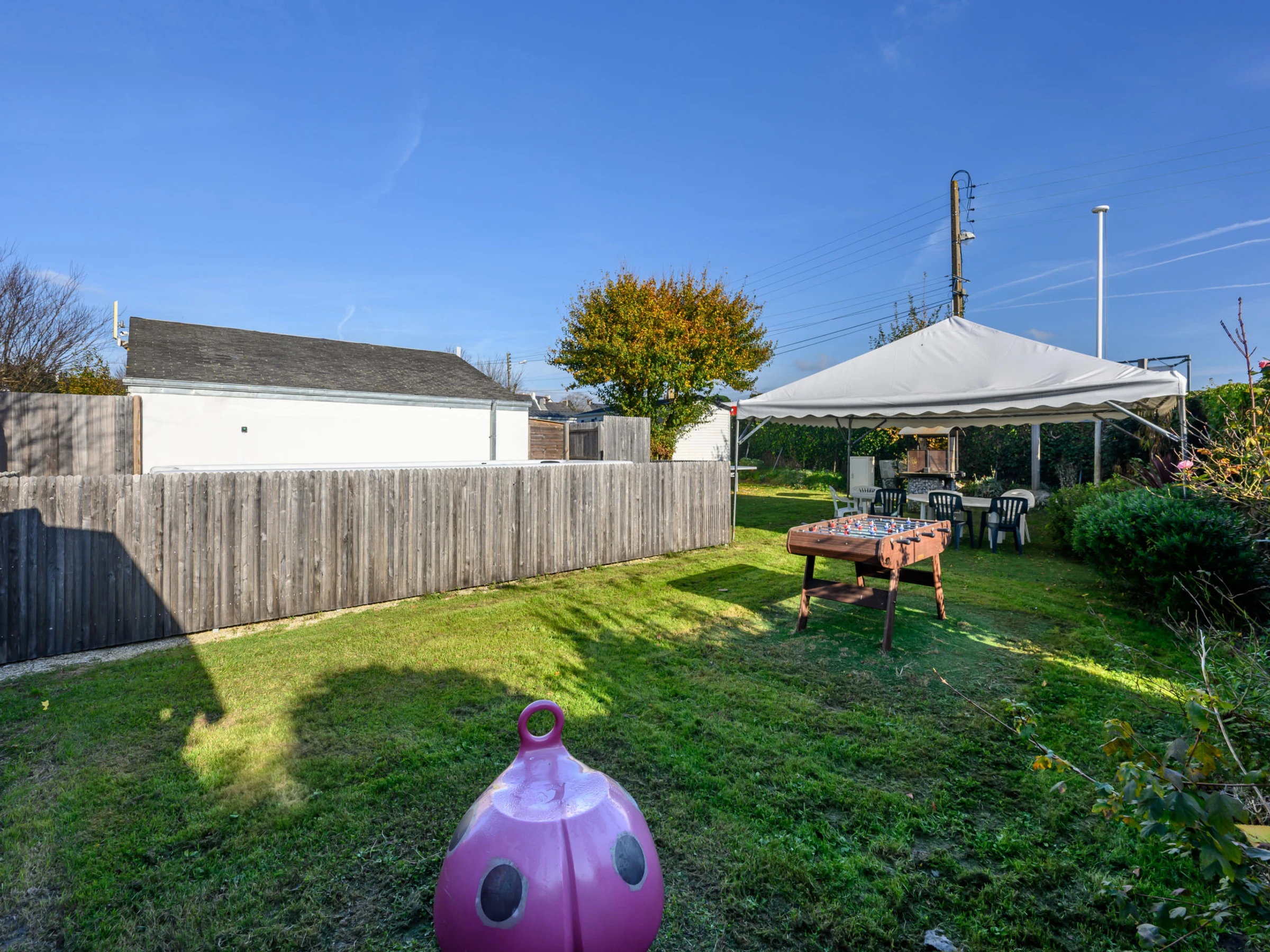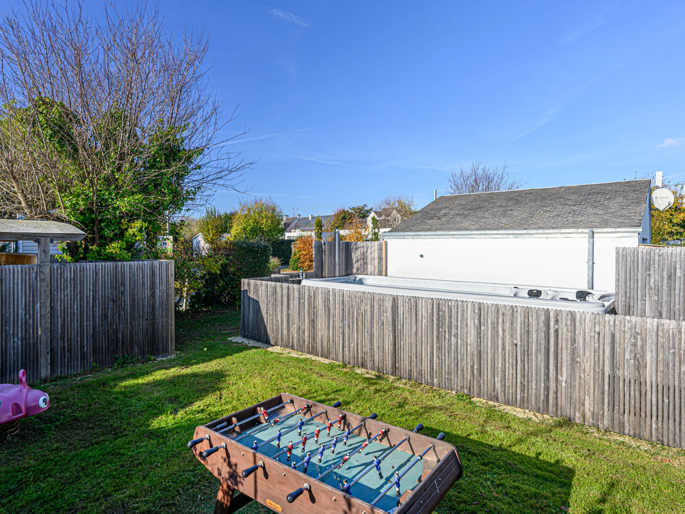 Camping Les Salines: Resort. 30 houses in the resort. In the resort 500 m from the centre of Carnac, 1.5 km from the sea, 1.5 km from the beach. For shared use: hot tub, barbecue. In the house: WiFi, washing machine (extra). Grocery, supermarket 20 m, restaurant, bar 400 m, bakery 500 m, café 100 m, bus stop 600 m, sandy beach "Grande Plage de Carnac" 1.5 km, thermal baths "Thalazur Carnac" 1.2 km. Golf course (18 hole) 15 km, surf school 3.5 km, sailing school 1.5 km, tennis 2.9 km. Nearby attractions: Les Alignements de Carnac 1 km, Le Port de la Trinité-sur-mer 5 km, Auray & Saint-Goustan 19 km, Les remparts de Vannes 33 km, La Presqu'île de Quiberon 16 km, Lorient 49 km. Hiking paths: Golfe du Morbihan 20 km.