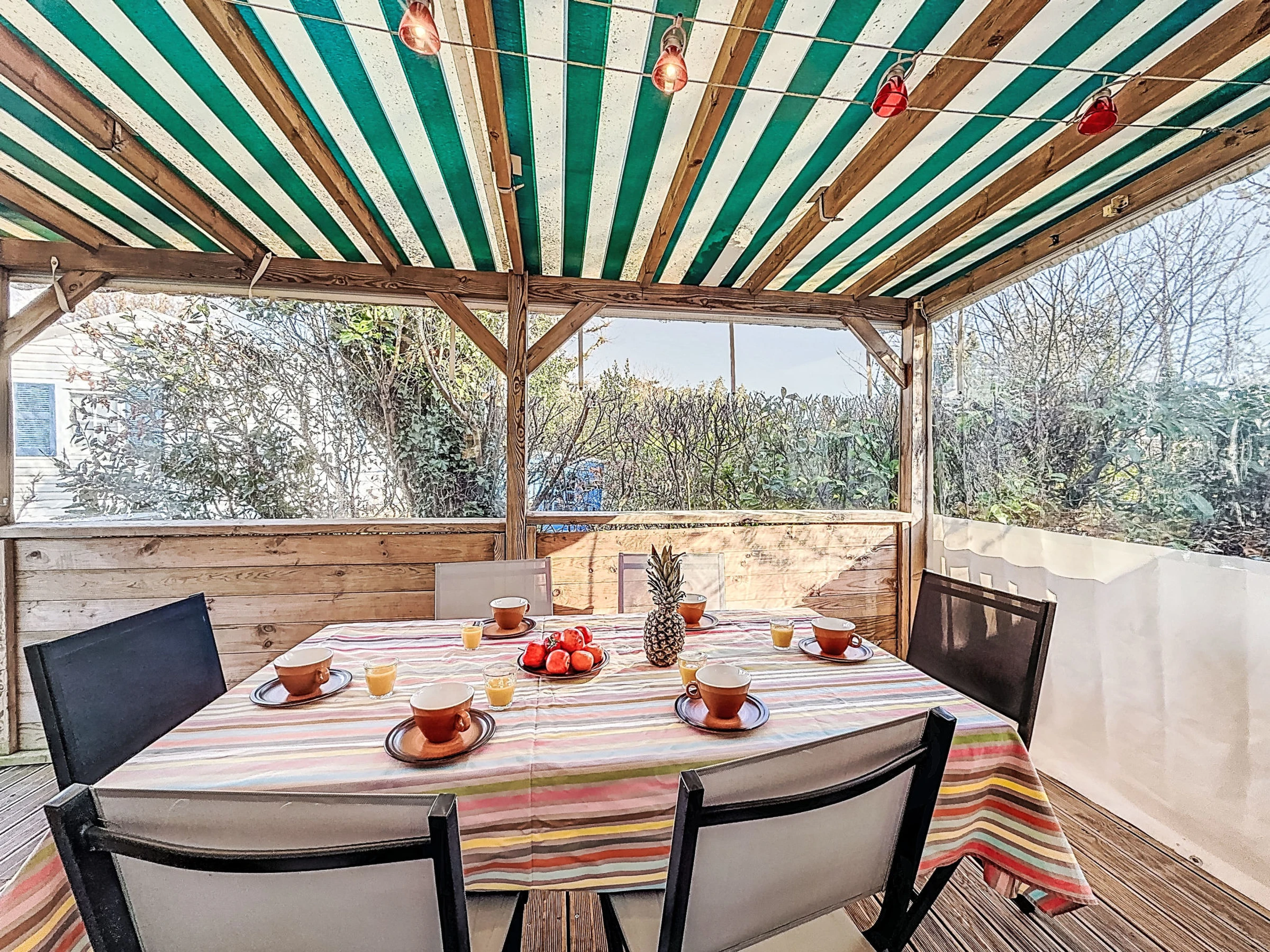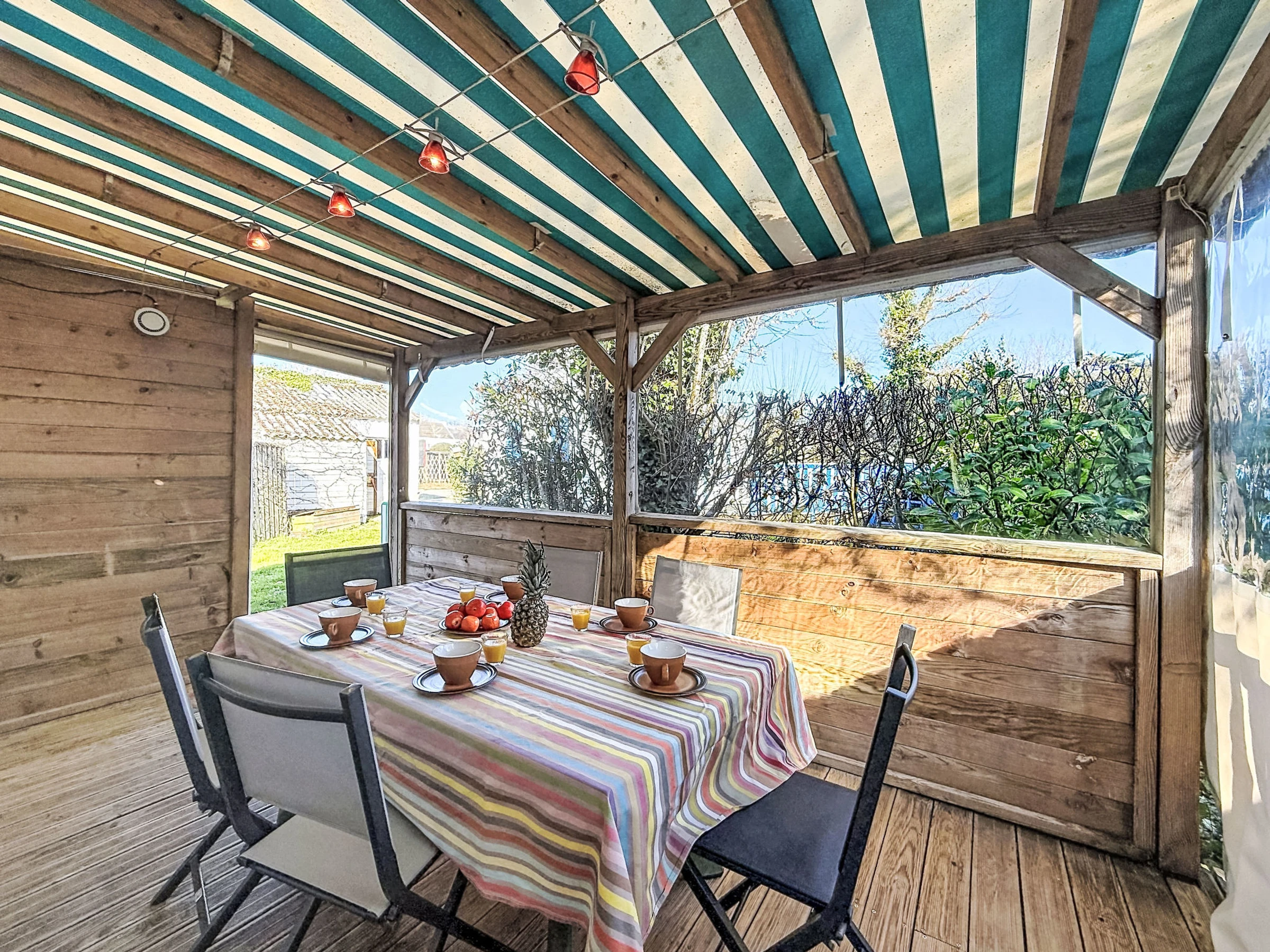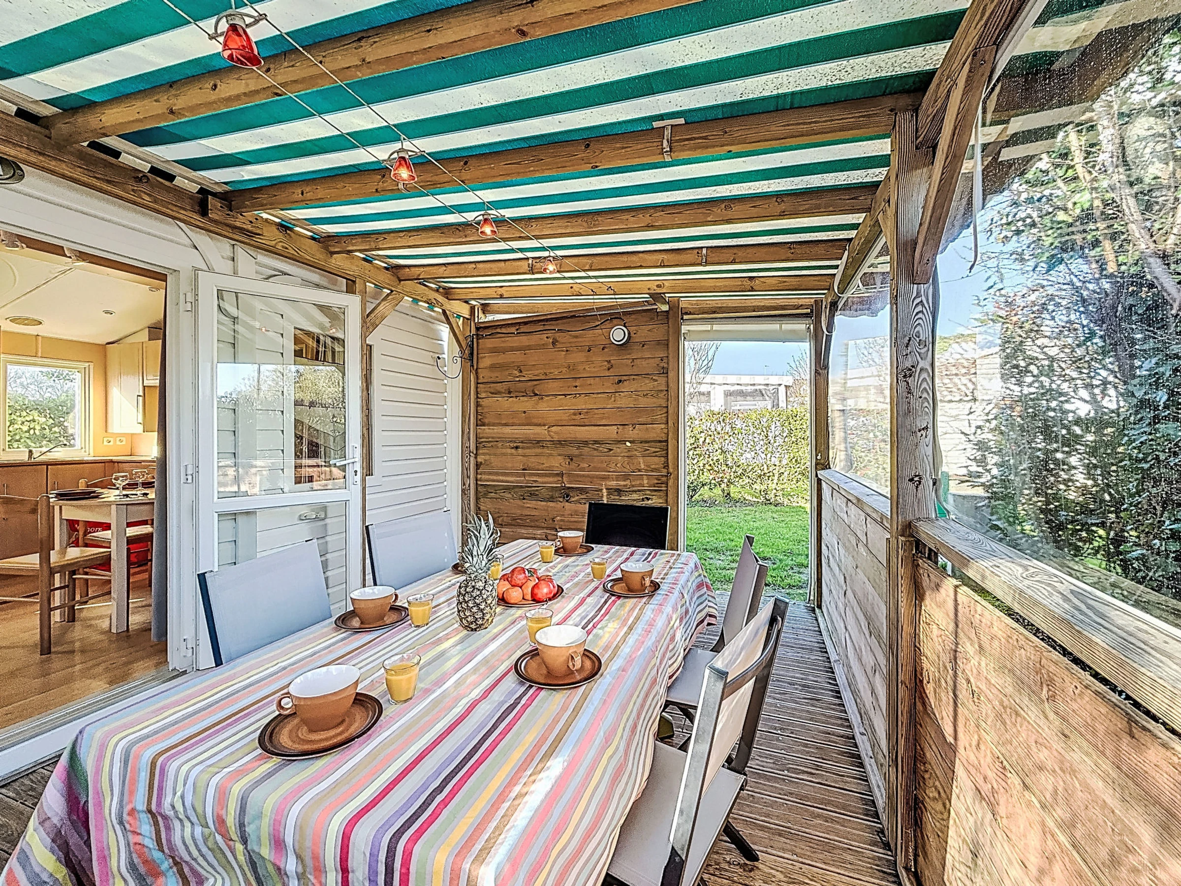 Camping Les Salines: Resort. 30 houses in the resort. In the resort 500 m from the centre of Carnac, 1.5 km from the sea, 1.5 km from the beach. For shared use: hot tub, barbecue. In the house: WiFi, washing machine (extra). Grocery, supermarket 20 m, restaurant, bar 400 m, bakery 500 m, café 100 m, bus stop 600 m, sandy beach "Grande Plage de Carnac" 1.5 km, thermal baths "Thalazur Carnac" 1.2 km. Golf course (18 hole) 15 km, surf school 3.5 km, sailing school 1.5 km, tennis 2.9 km. Nearby attractions: Les Alignements de Carnac 1 km, Le Port de la Trinité-sur-mer 5 km, Auray & Saint-Goustan 19 km, Les remparts de Vannes 33 km, La Presqu'île de Quiberon 16 km, Lorient 49 km. Hiking paths: Golfe du Morbihan 20 km.