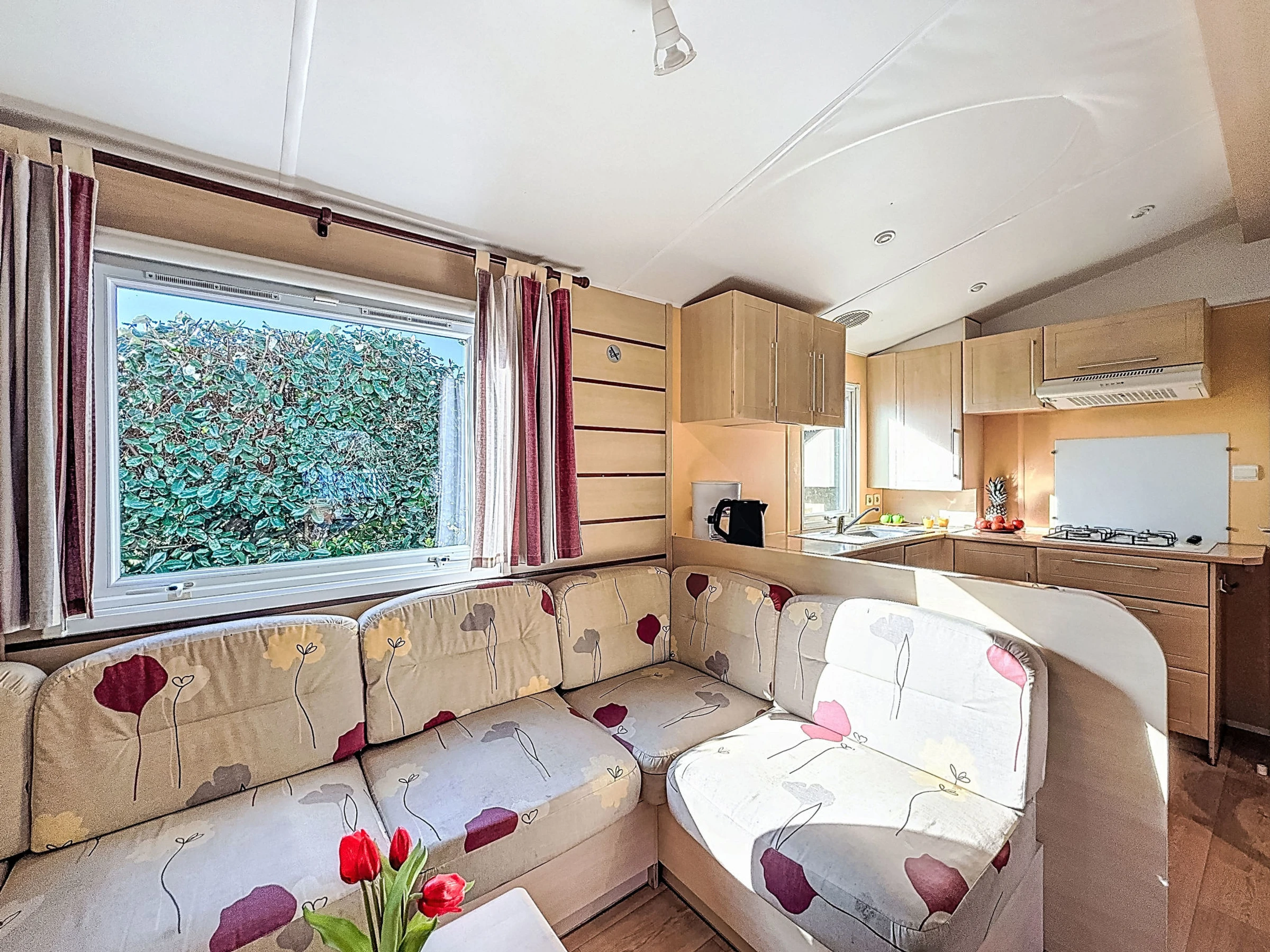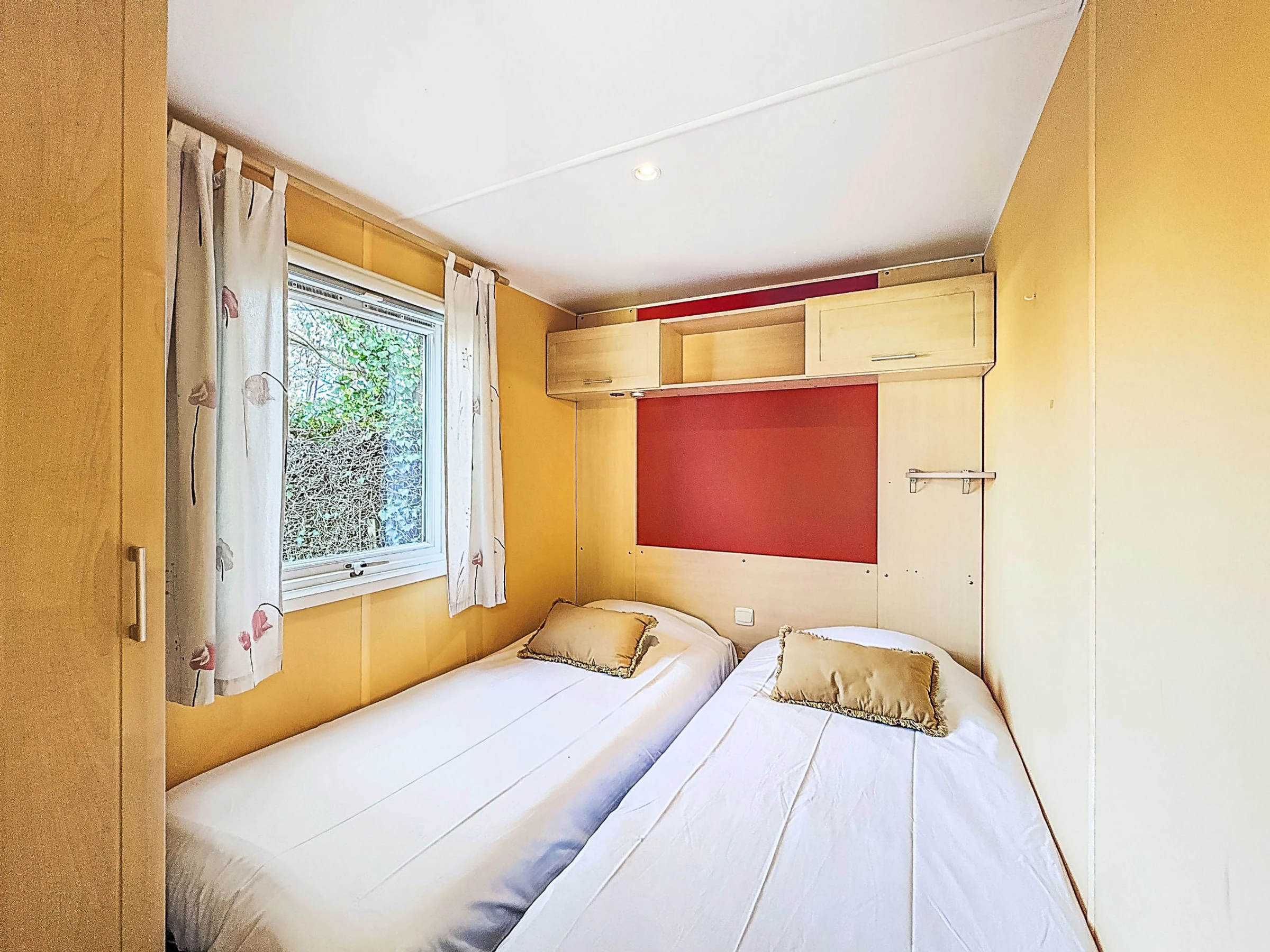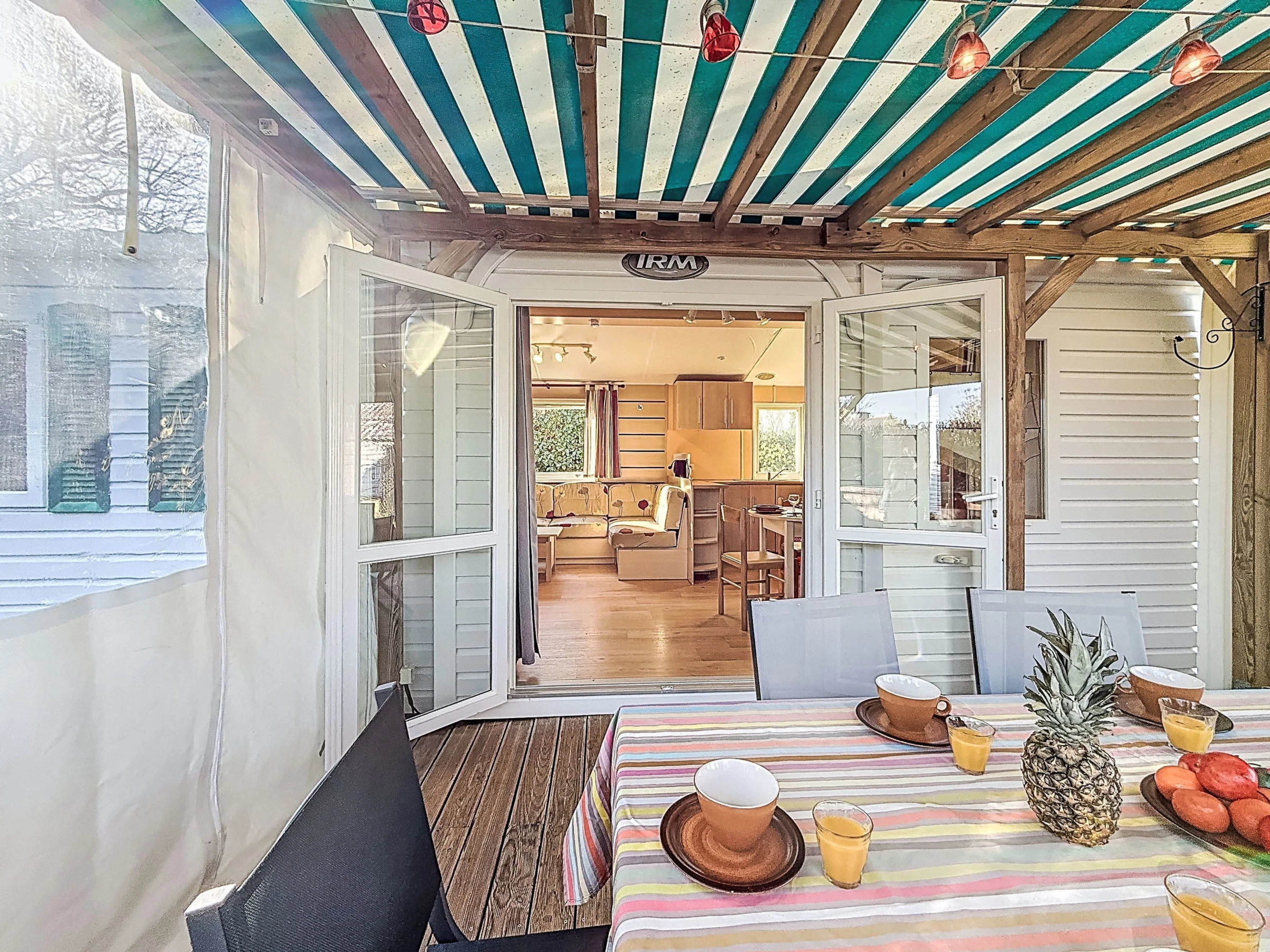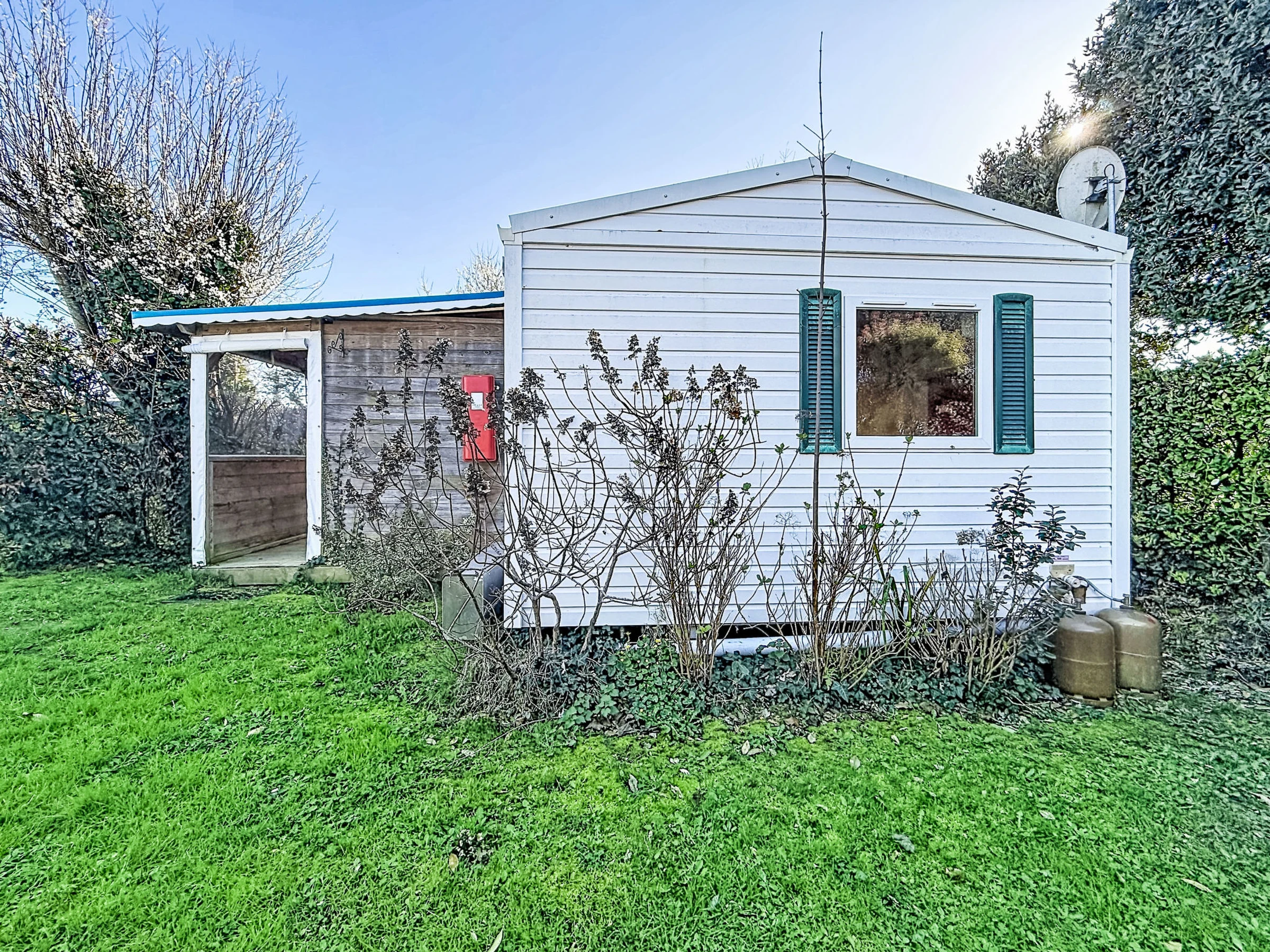 "L'échasse", 4-room mobile home 40 m2. Comfortable furnishings: living/dining room with TV (flat screen). Exit to the terrace. 1 room with 1 french bed (1 x 160 cm, length 190 cm). 1 room with 1 french bed (1 x 140 cm, length 190 cm). 1 room with 2 beds (80 cm, length 190 cm). Open kitchen (4 gas rings, toaster, kettle, microwave, electric coffee machine). Shower, sep. WC. Terrace 10 m2. Terrace furniture. Facilities: hair dryer. Internet (WiFi, free). Parking at the house. Please note: 1 pet/ dog allowed. Smoke alarm. Offer by a commercial proprietor according to Art. 155, IV, CGI