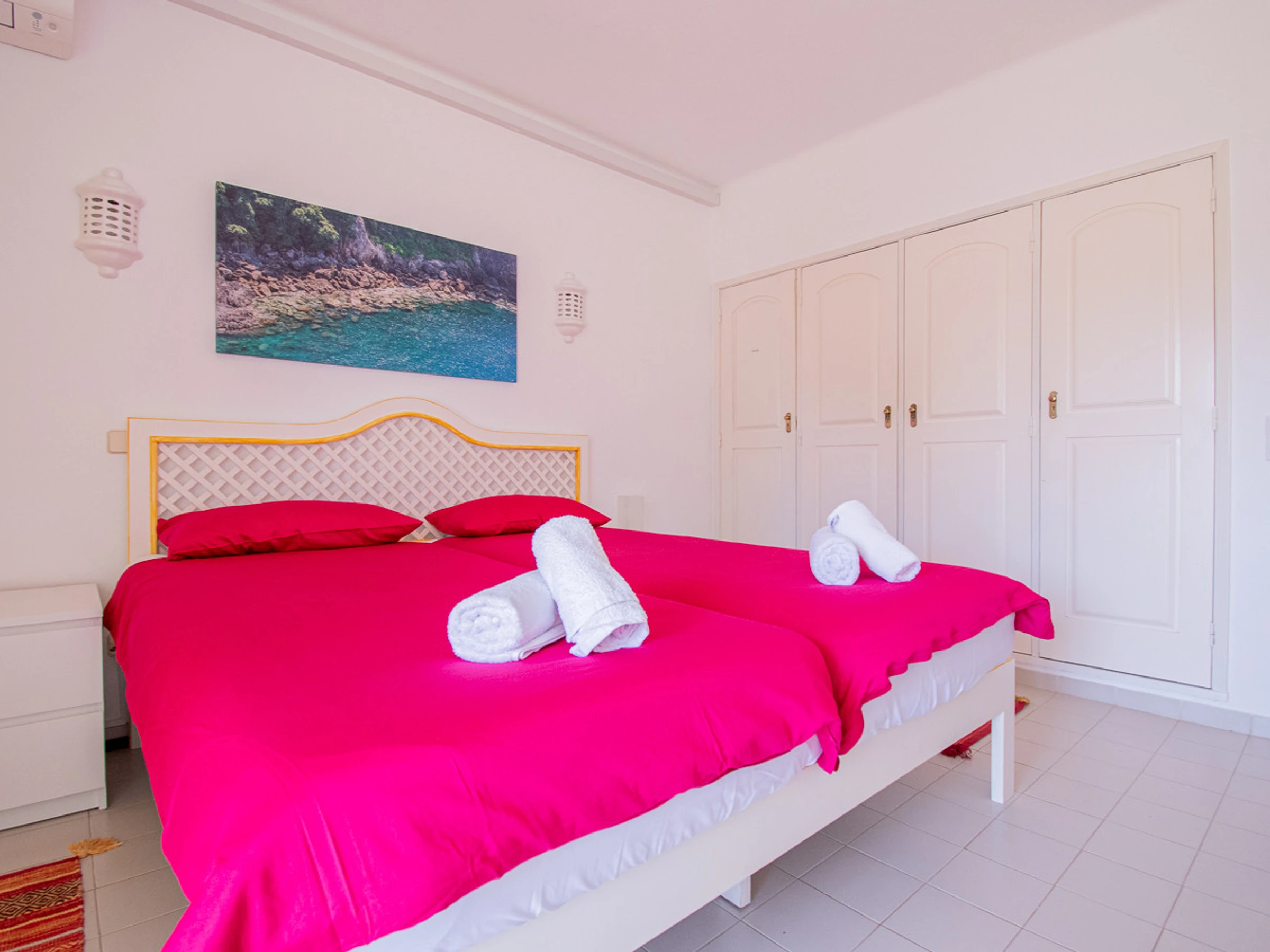 Located between Portimao (13 km) and Albufeira (19 km). Famous for its beaches, cliffs and beautiful caverns. Well-known, busy, picturesque summer holiday resort with 2'721 inhabitants, on top of a hill. In the resort: supermarket, shops, restaurant, bar, evening entertainment. Hiking. Sights Algar Seco 2.4 km, Shrine of Nossa Senhora da Encarnação 2.1 km, Benagil Caves 6.5 km. Ferragudo 6 km. Armação de Pera 14 km.