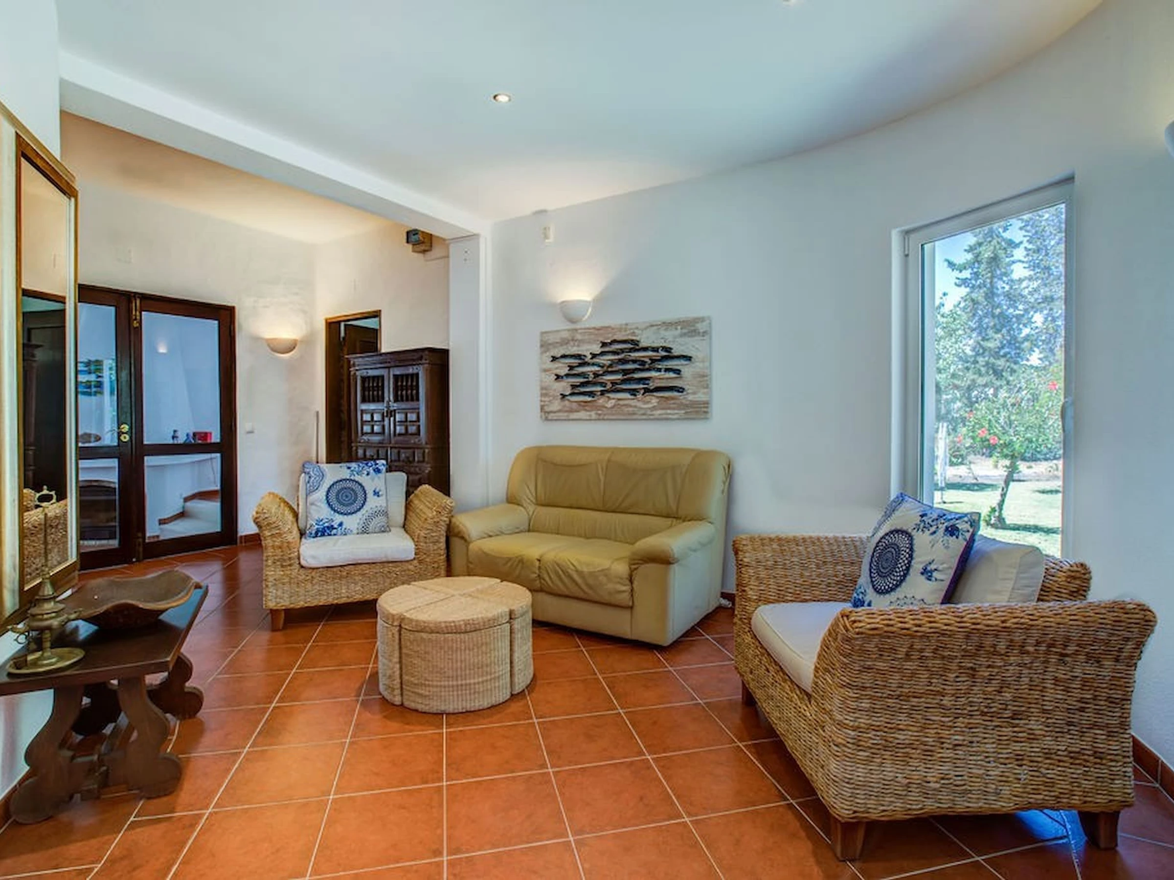 Externally the villa is surrounded by mature gardens with large palm trees offering natural shade, fruit trees including figs, orange and lemons and pomegranite. There is a grass area for children to play and the terrace surrounding the pool has plenty of space for sunloungers and umbrellas offering more shade. There is a BBQ and external dining area to enjoy the summer evenings.