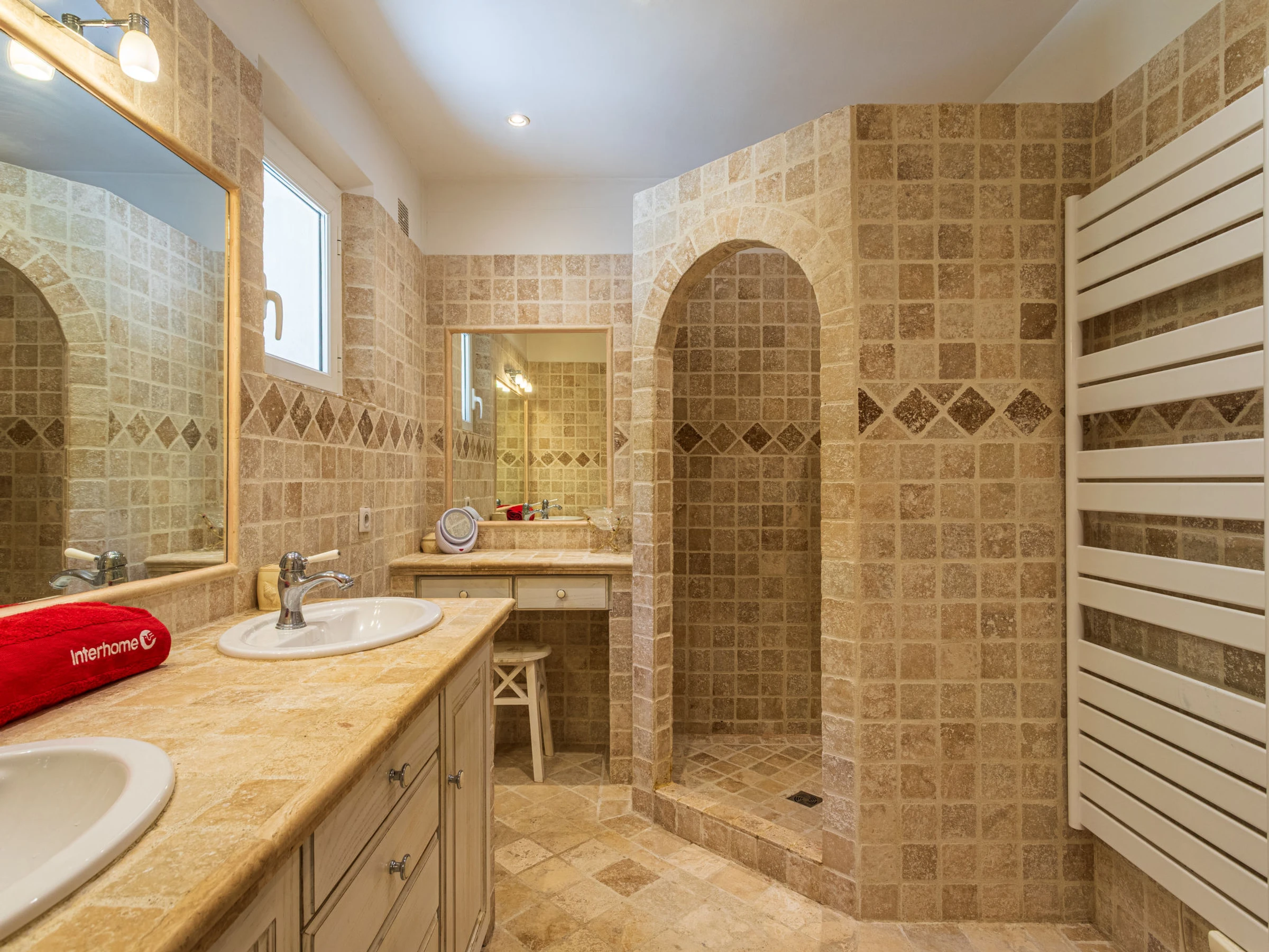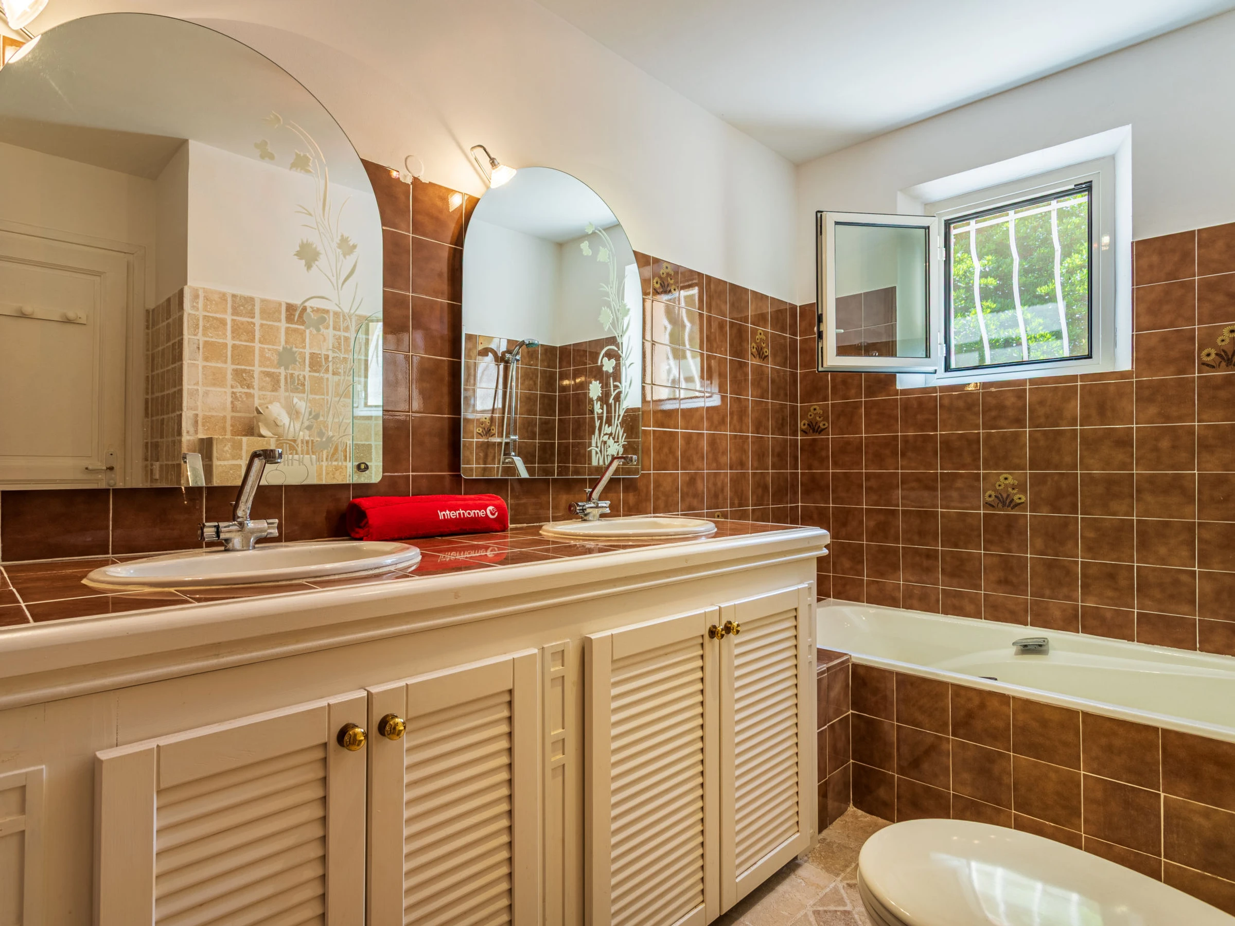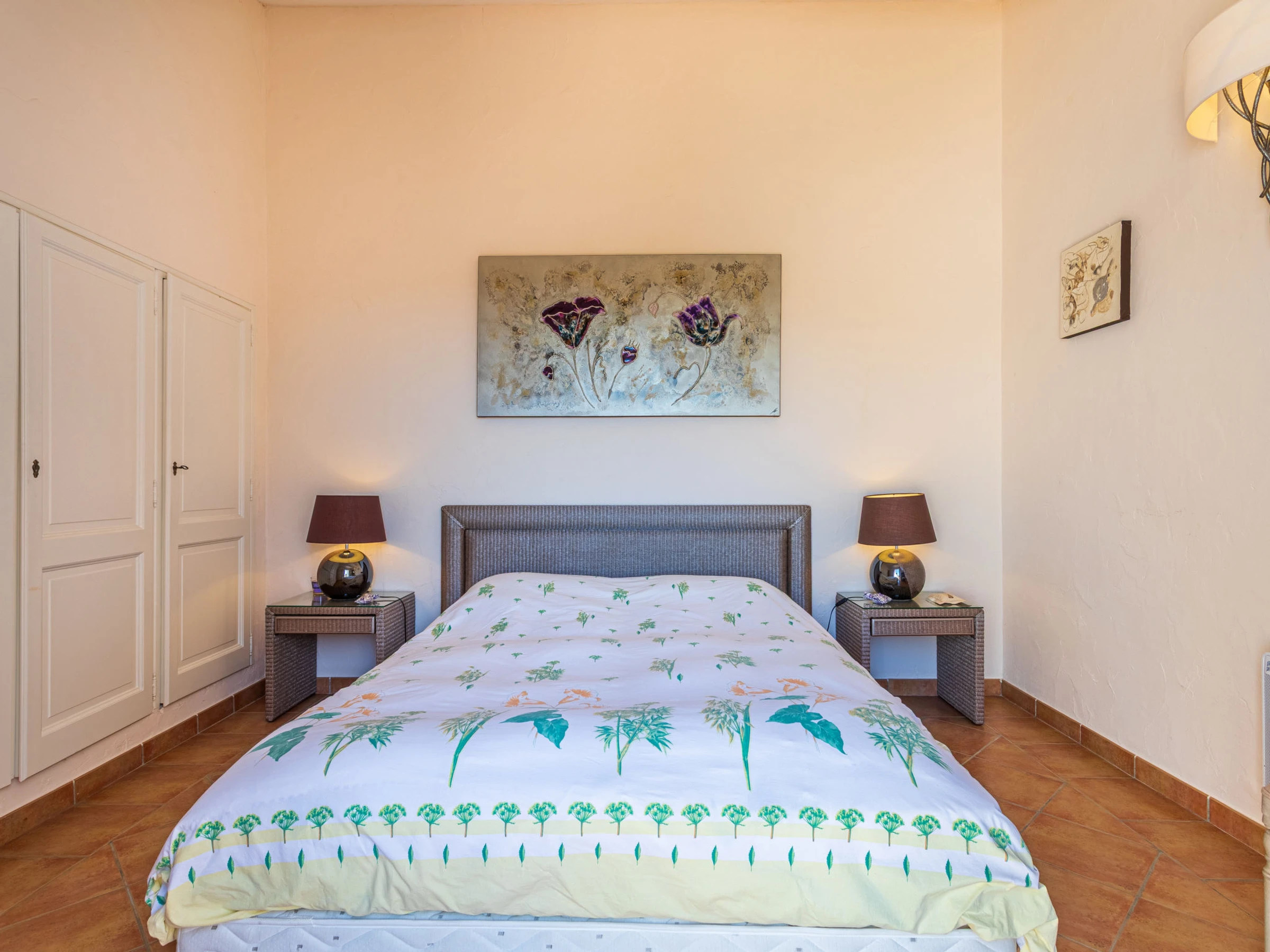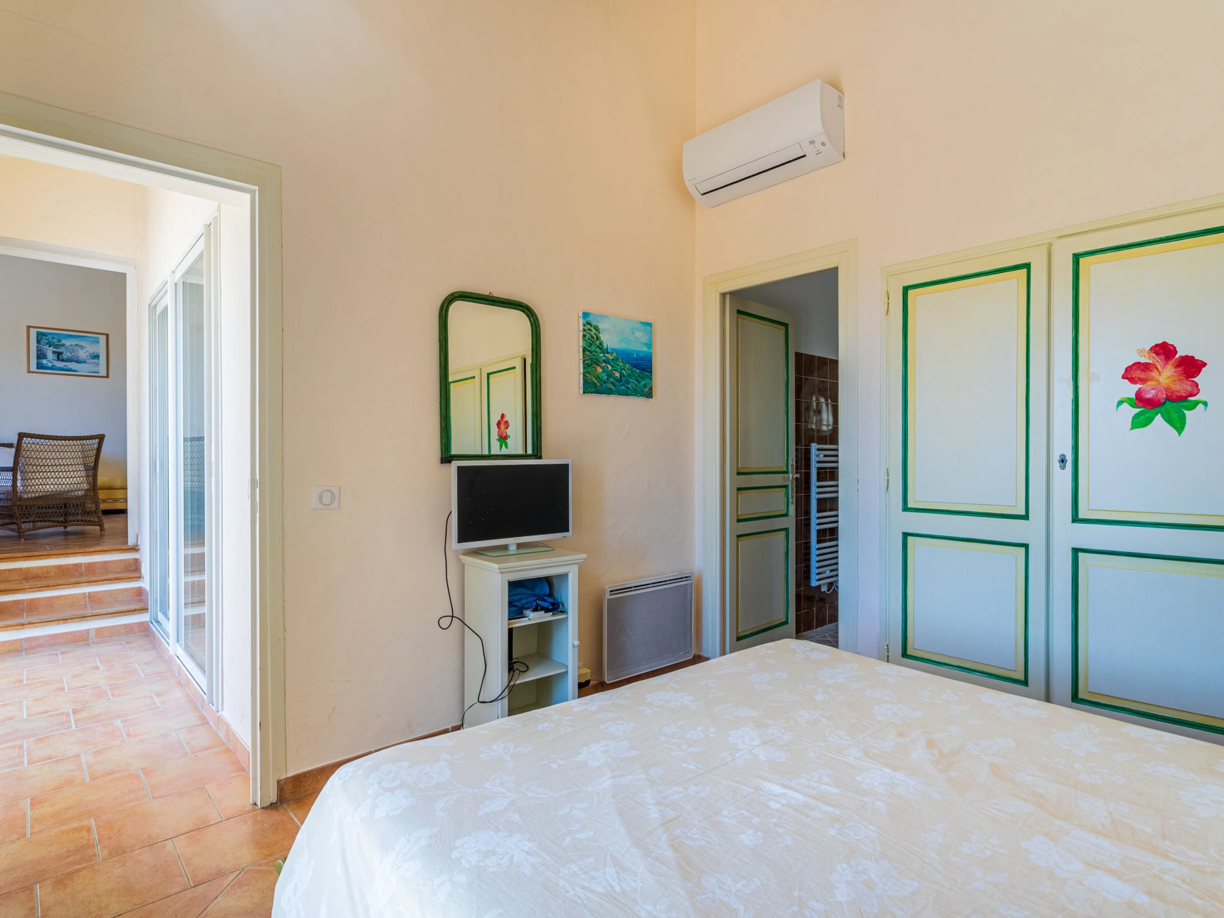 6-room villa 155 m2 on 2 levels. Beautiful furnishings: living room with open-hearth fireplace (only for decoration), TV (flat screen). Exit to the terrace, to the swimming pool. Dining room. 1 room with 1 french bed (160 cm, length 190 cm), bath/WC and double hand-basin. Exit to the terrace. 1 room with 1 french bed (140 cm, length 190 cm), shower/WC. Exit to the terrace. Kitchen (oven, dishwasher, 4 induction hot plates, toaster, kettle, microwave, freezer, electric coffee machine). Exit to the terrace. Sep. WC. Upper floor: 1 room, 4 bunk beds (90 cm, length 190 cm). Exit to the terrace. 1 room with 1 french bed (160 cm, length 190 cm). Exit to the terrace. Shower/WC, double hand-basin. Electric heating, air-conditioning. Large terrace 100 m2, roofed, south-west facing position. Terrace furniture, deck chairs (6). Beautiful view of the sea and the valley. Facilities: washing machine, iron, hair dryer. Internet (WiFi, free). Parking (2 cars). Please note: one double bedroom is outside the apartment. Non-smokers only. Smoke alarm. Offer by a private individual according to Art. 155, IV of CGI.