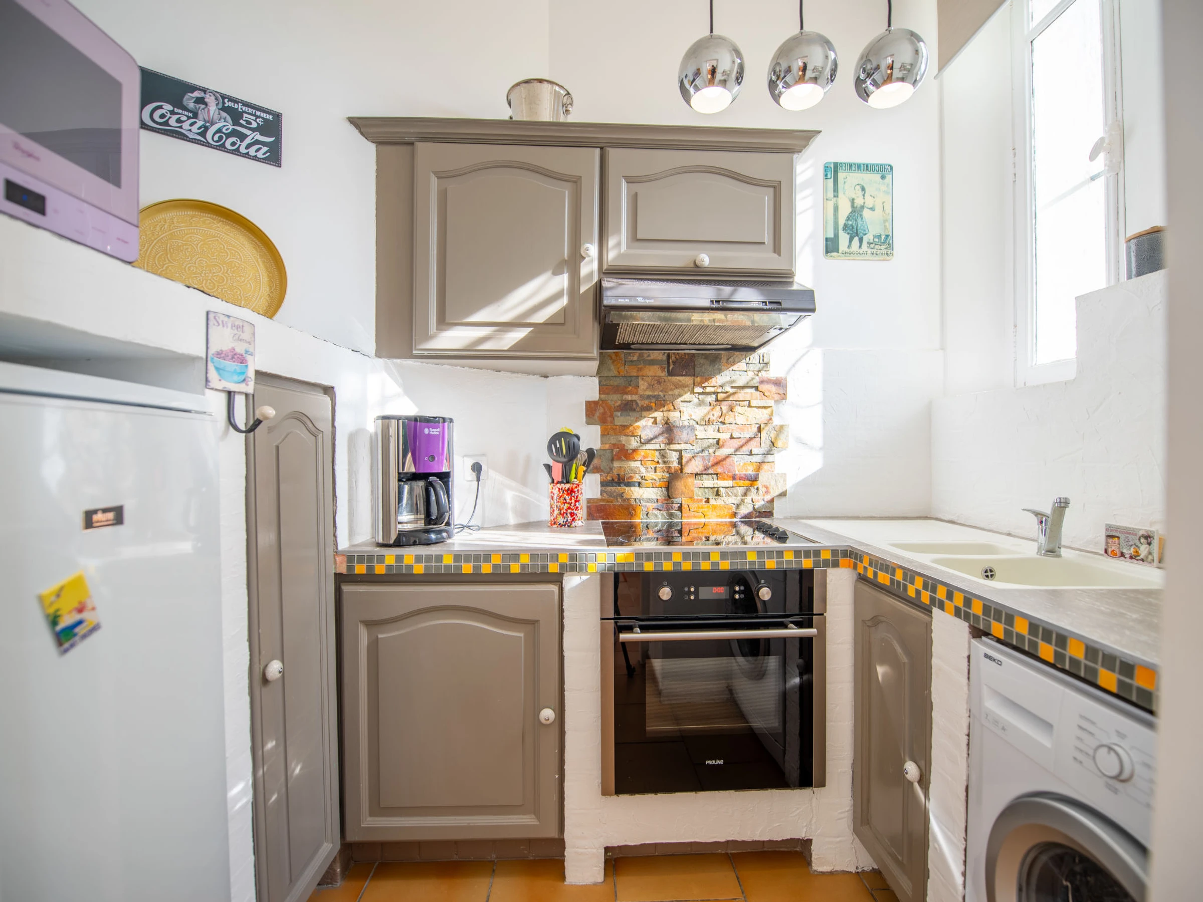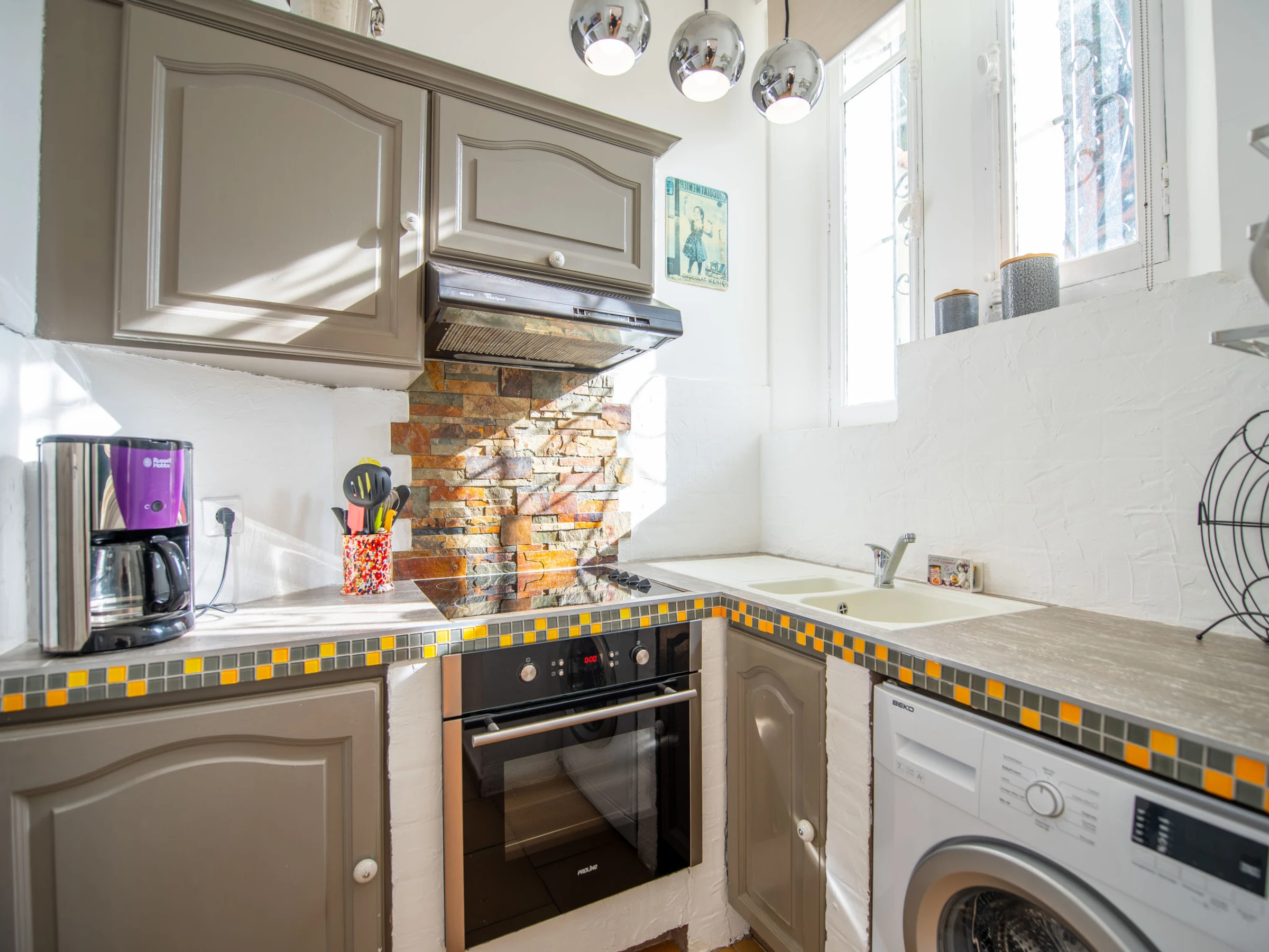 "Résidence Castel Haussmann", 2-room apartment 33 m2, on the ground floor. Beautiful furnishings: living/dining room with 1 sofabed (130 cm, length 190 cm), TV (flat screen). Exit to the garden, to the terrace. 1 room with 1 french bed (140 cm, length 190 cm), shower/WC. Small kitchen (4 hot plates, oven, toaster, kettle, microwave). Electric heating. Terrace 36 m2, south facing position and west facing position. View of the countryside. Facilities: washing machine. Internet (WiFi, extra). Parking. Please note: maximum 1 small pet/ dog allowed. Smoke alarm. Offer by a private individual according to Art. 155, IV of CGI.