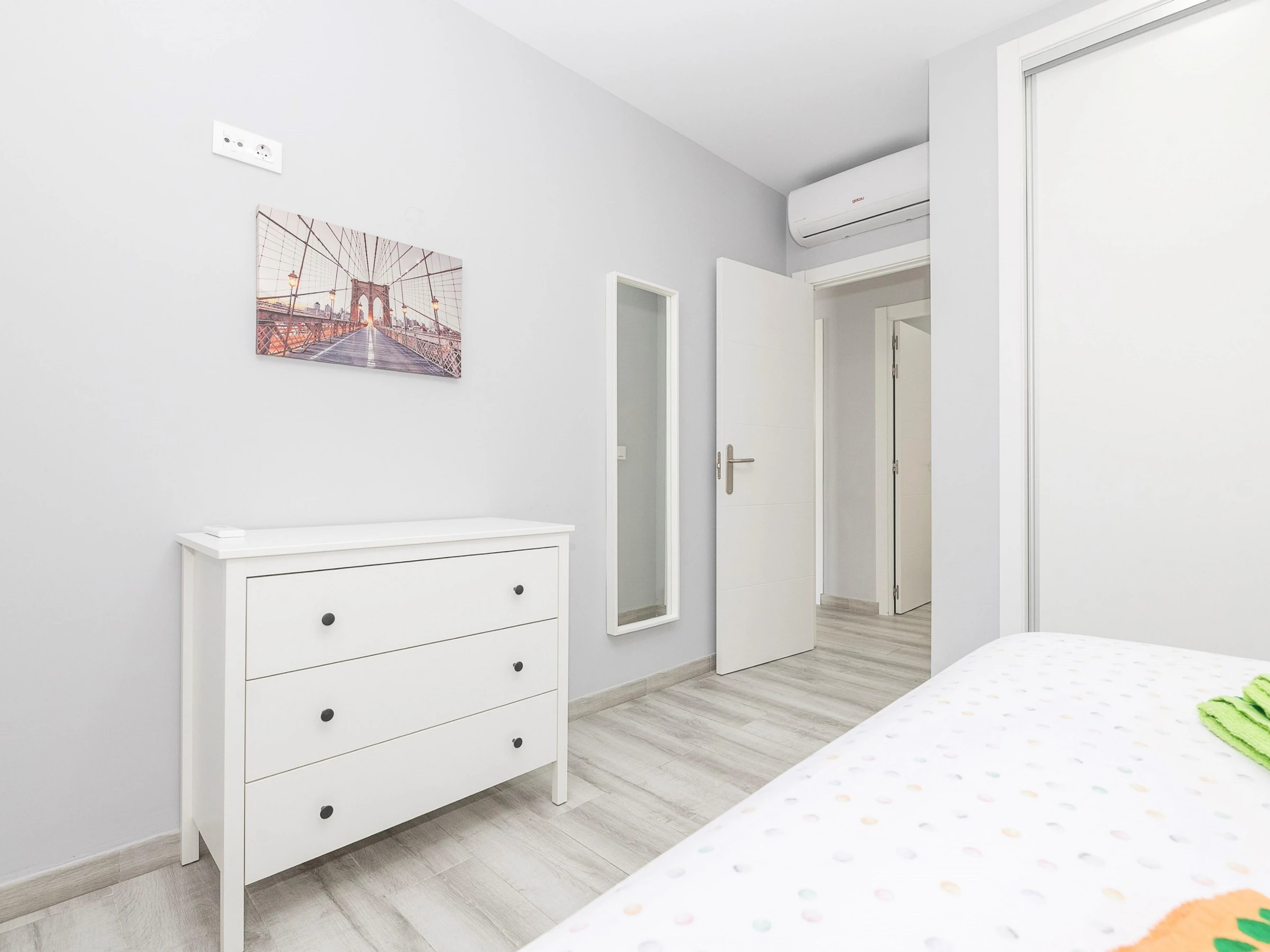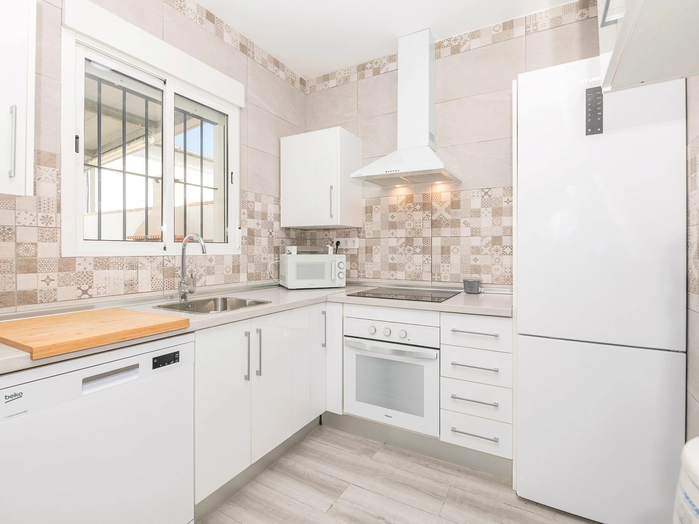 The interior is distributed on a single floor, offering a main space where the kitchen, dining room and living room are combined in an open and functional environment. The ceramic hob kitchen has all the necessary utensils for you to cook like at home. The living room has air conditioning and Smart TV. There is also a washing machine, iron and ironing board. The bedrooms are designed to provide a restful night's sleep. The master bedroom has a double bed, AC and a spacious wardrobe. The second bedroom has a single bed and a bunk bed for two, ideal for children or friends. If you are travelling with your baby we can also provide a cot and highchair. The bathroom with shower completes your stay.