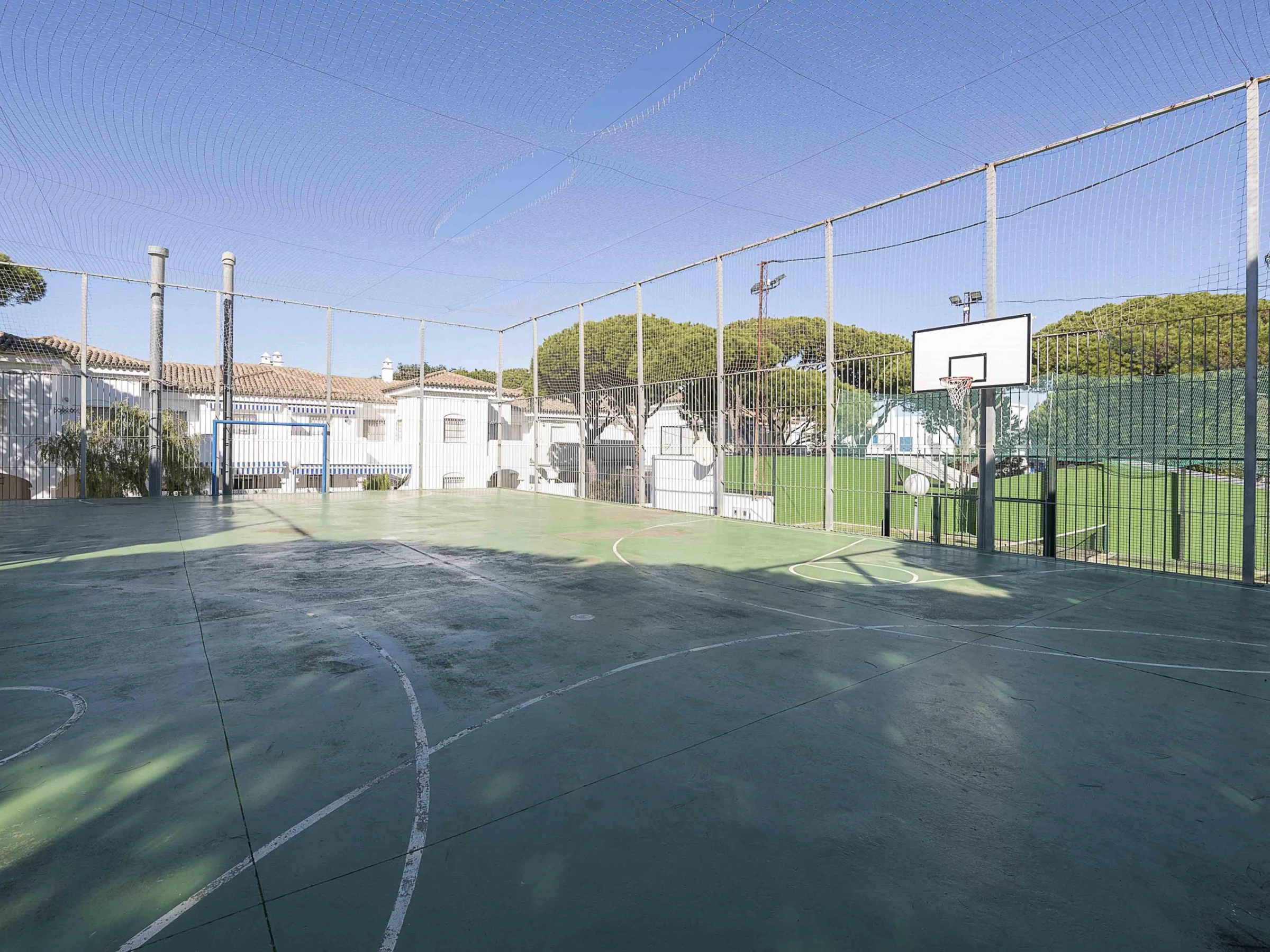 The residential complex offers a large communal pool measuring 40 x 20 meters with a uniform depth of 1.80 m. There is also a children’s pool and outdoor showers supervised by lifeguards in summer. It also features tennis, paddle, basketball and five-a-side football courts, which can be booked through the complex’s sports office. The property has a private ground-floor terrace with direct access to the communal areas, ideal for relaxing outdoors or enjoying time with family and friends.