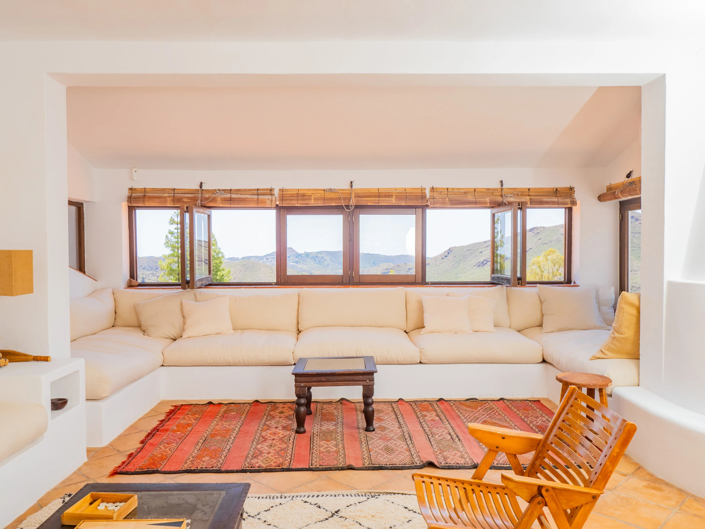 Hello! We are CUBO'S HOLIDAY HOMES, specialised in holiday accommodations since [hidden]Immerse yourself in the tranquillity of this rural house in Barranco Blanco (Alhaurín el Grande), a refuge surrounded by forest and mountain where silence and nature are the protagonists. This Andalusian house, with traditional white style and high ceilings, offers open spaces equipped with exceptional quality to guarantee an unforgettable stay. The private pool, surrounded by treated wood and with mountain views, is a perfect place to relax under the sun on its comfortable sunbeds or cool off while enjoying the landscape and privacy offered by the bougainvillea covering the railing. Additionally, the porch with sofas and a table with chairs next to an outdoor toilet make the space comfortable and functional for the whole family, especially taking care of children.