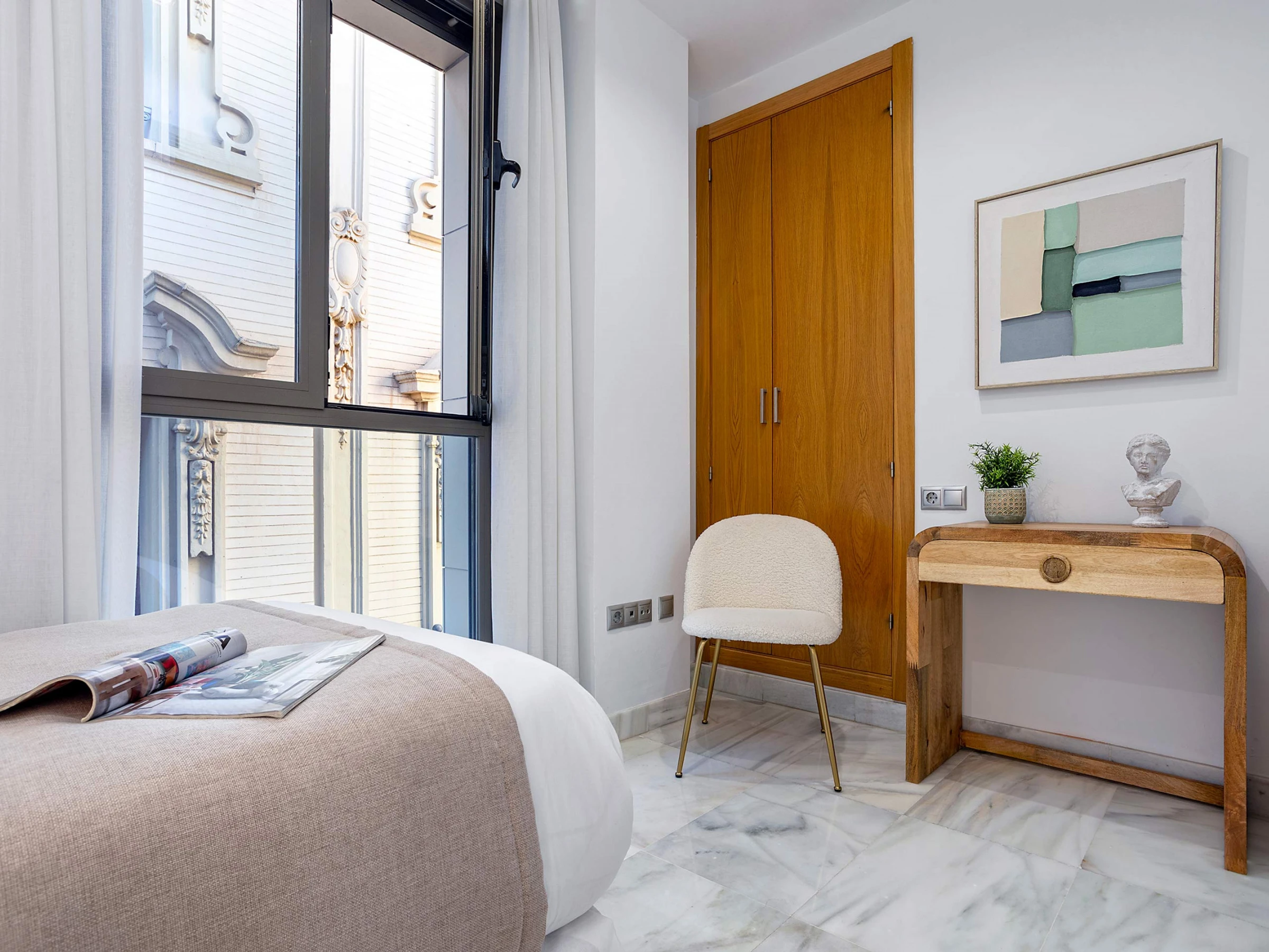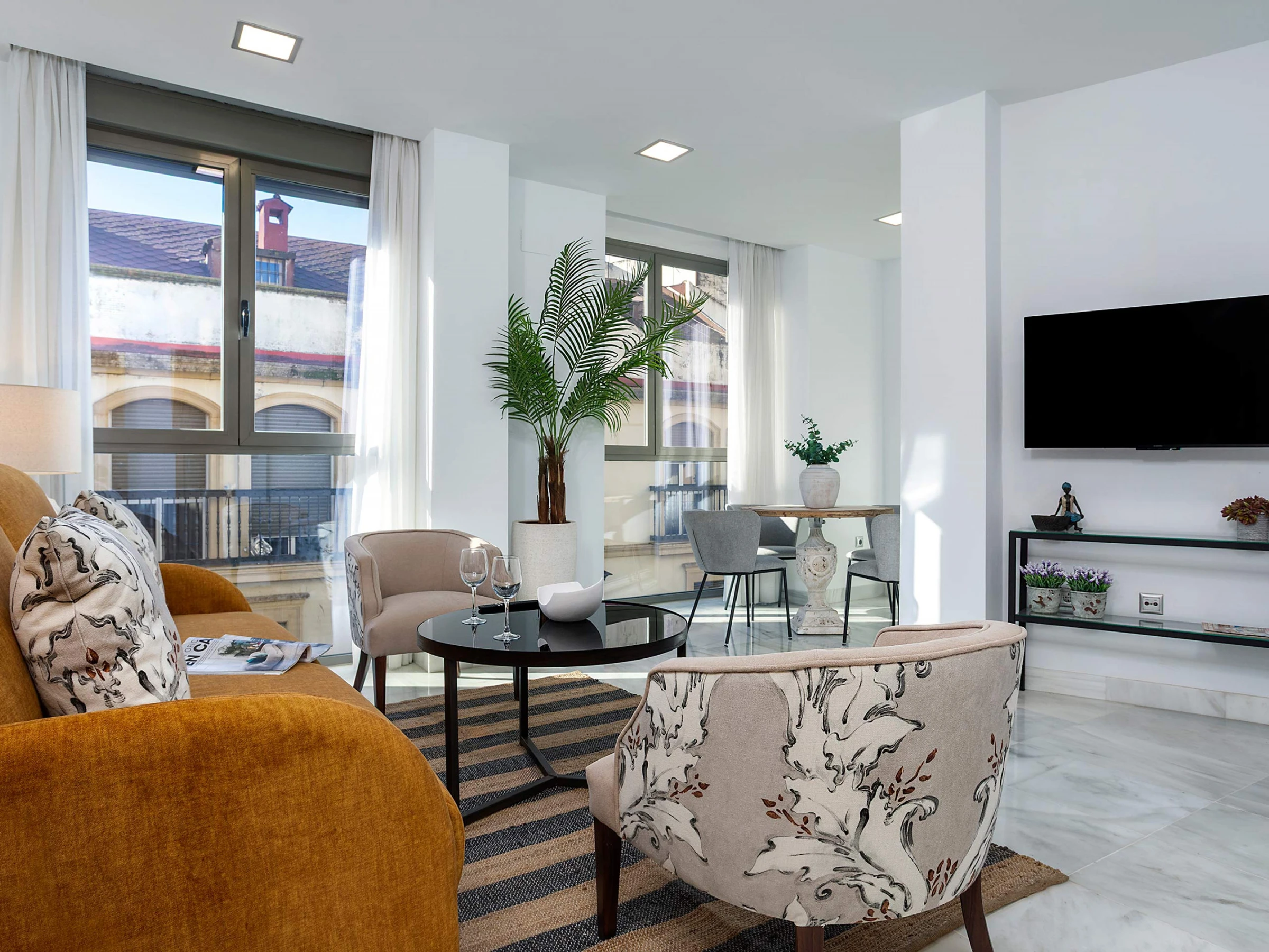 Located in the very center of Cordoba, this luxury apartment allows you to explore on foot the citys main monuments and charming corners. Within walking distance you will find the impressive Mosque-Cathedral, the Roman Bridge, the Alcazar de los Reyes Cristianos, and the iconic Plaza de la Corredera, as well as the Jardines de la Victoria and a wide range of dining and shopping options.
