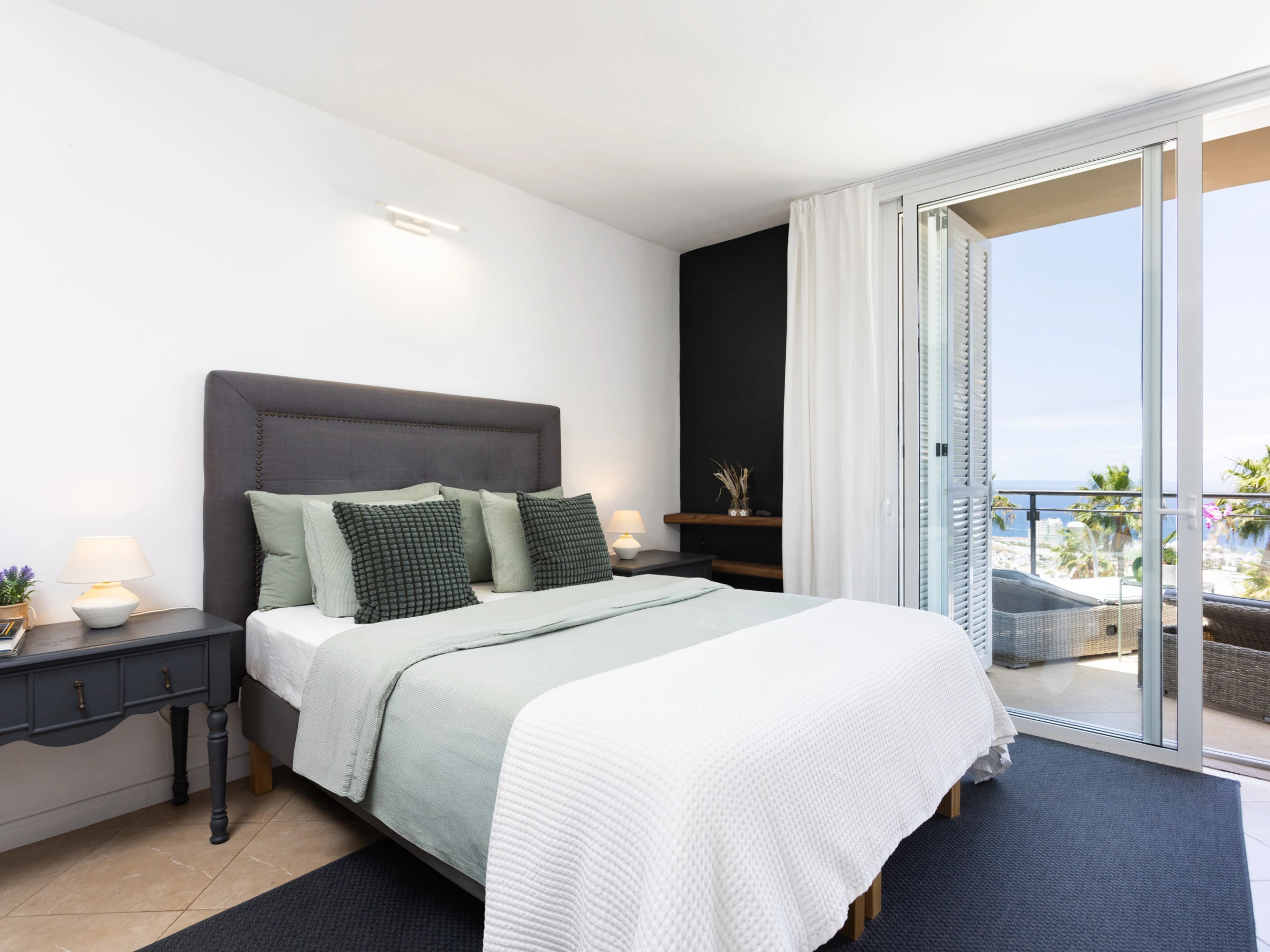 Tastefully furnished and with attention to detail, enjoy an unforgettable stay both inside and outside. The three bedrooms, two double rooms and one bedroom with two single beds, all with their own bathroom and shower. The main bedroom has a private terrace equipped with garden furniture. The two other bedrooms share a terrace with sun loungers, which are individually accessible. On the ground floor is the independent, fully equipped kitchen with separate utility room and courtyard. On the same floor is the living-dining room with fantastic view over the Atlantic and the Costa Adeje district. A glass door leads to the terrace, which invites to dining, sunbathing and many relaxed and enjoyable hours.
