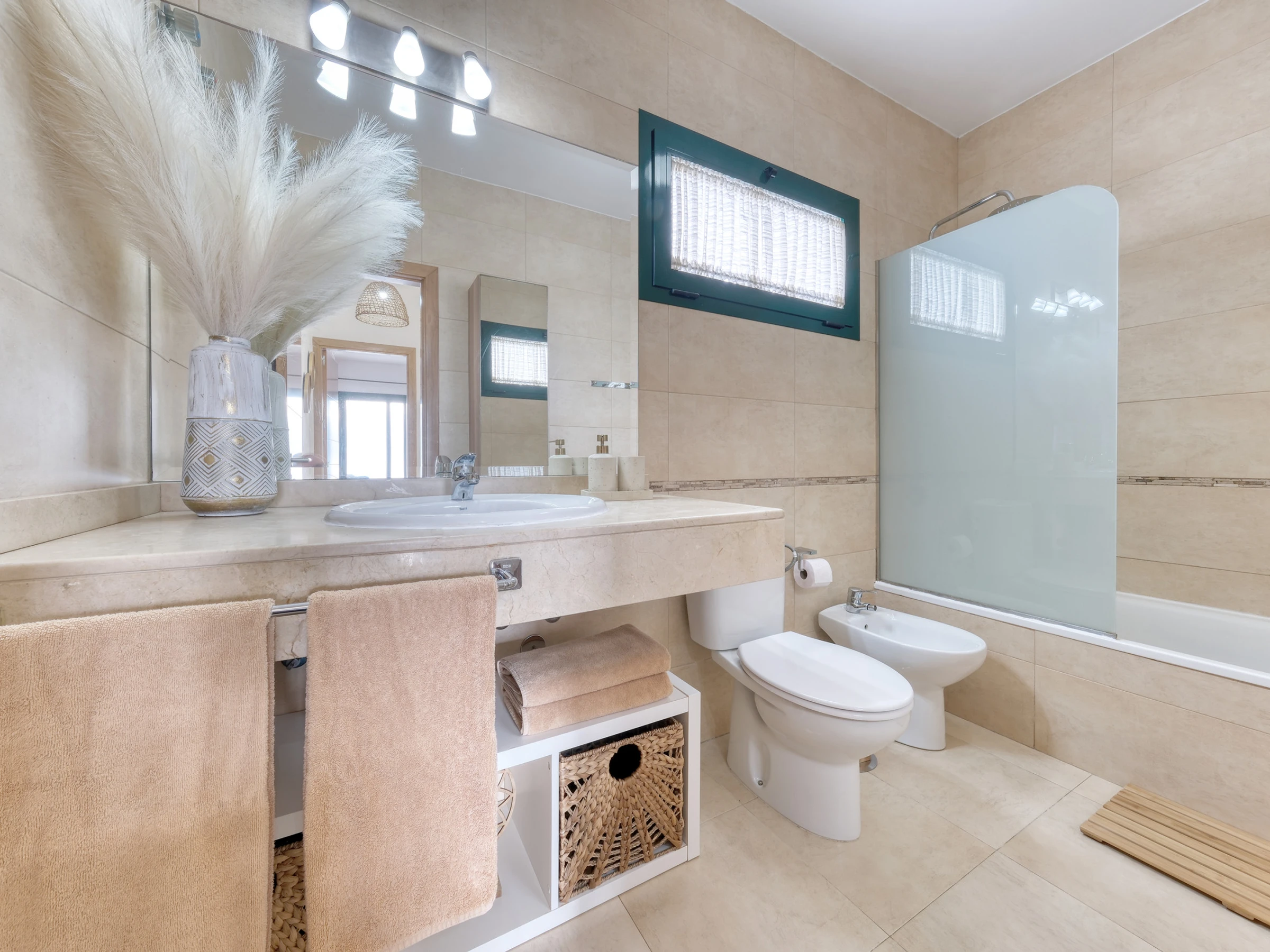 The master bedroom features a comfortable double bed, spacious wardrobes, television and sea views that will make you wake up every morning with energy and serenity.