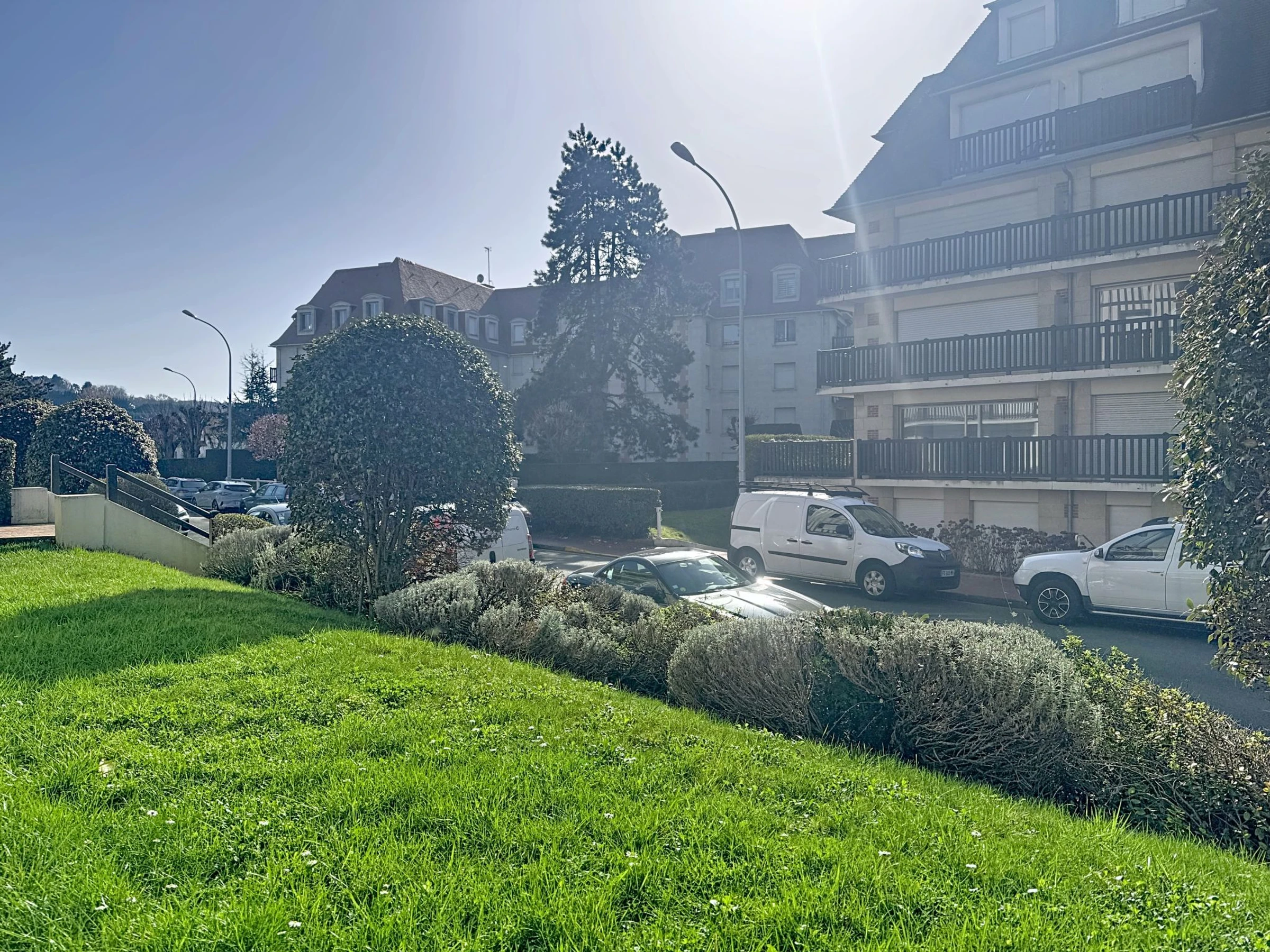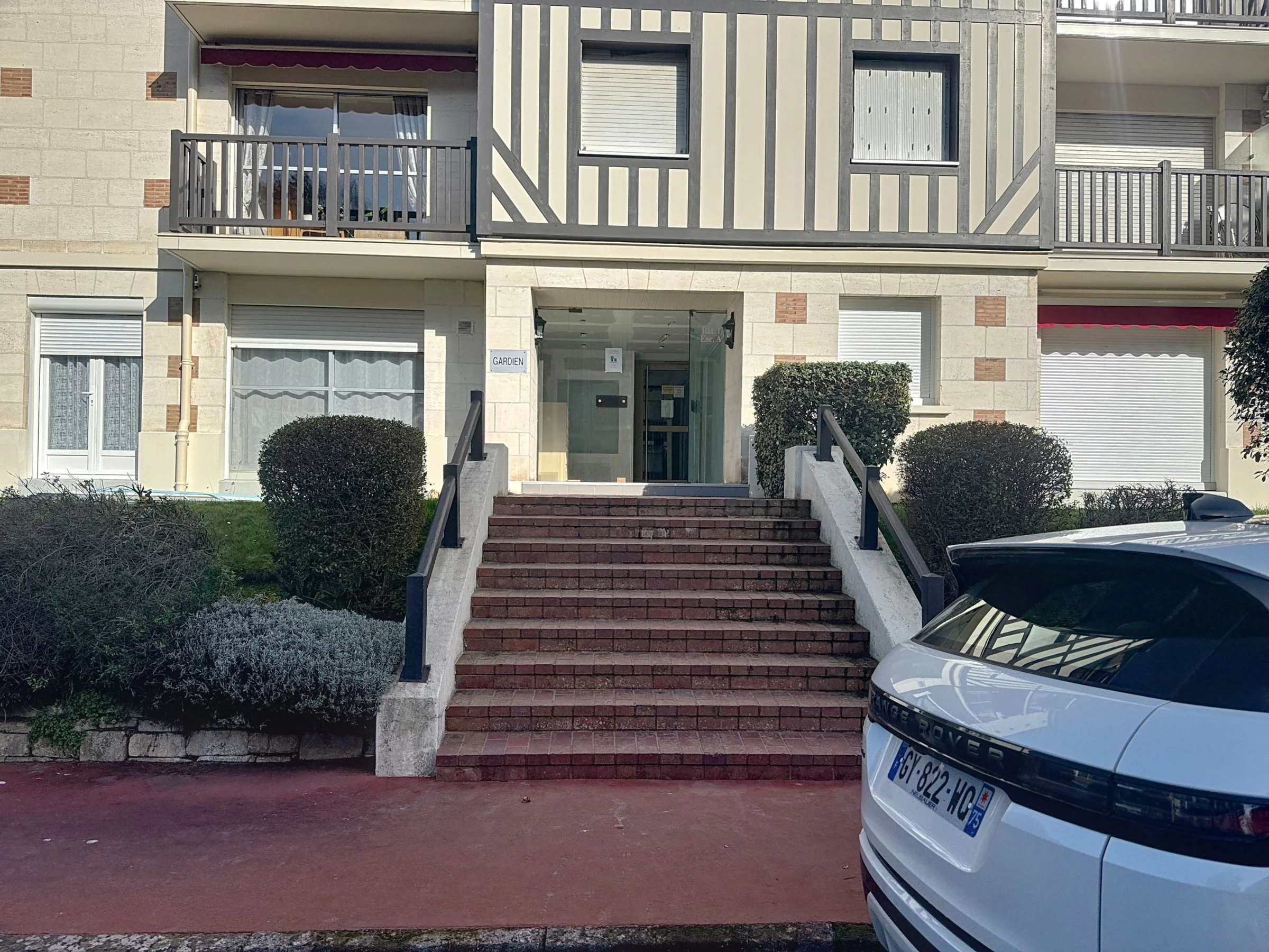 Deauville: Residence "Sand". 450 m from the sea, 450 m from the beach. In the complex: lift. (4 steps). Shop 600 m, grocery, supermarket 350 m, restaurant 600 m, bus stop "Carrefour Tourgéville" 450 m, railway station "Deauville-Trouville" 1.7 km, indoor swimming pool 1 km, thermal baths "Deauville" 1 km. Golf course (18 hole) 3.2 km, tennis 1.3 km, riding stable 1.3 km. Nearby attractions: Centre International Deauville - CID 1.2 km, Hippodrome de Clairefontaine 1.5 km, Mémorial de Caen 51 km, Plage du débarquement d'Arromanches 77 km. The keys‘ handover takes place by the agency in Deauville.