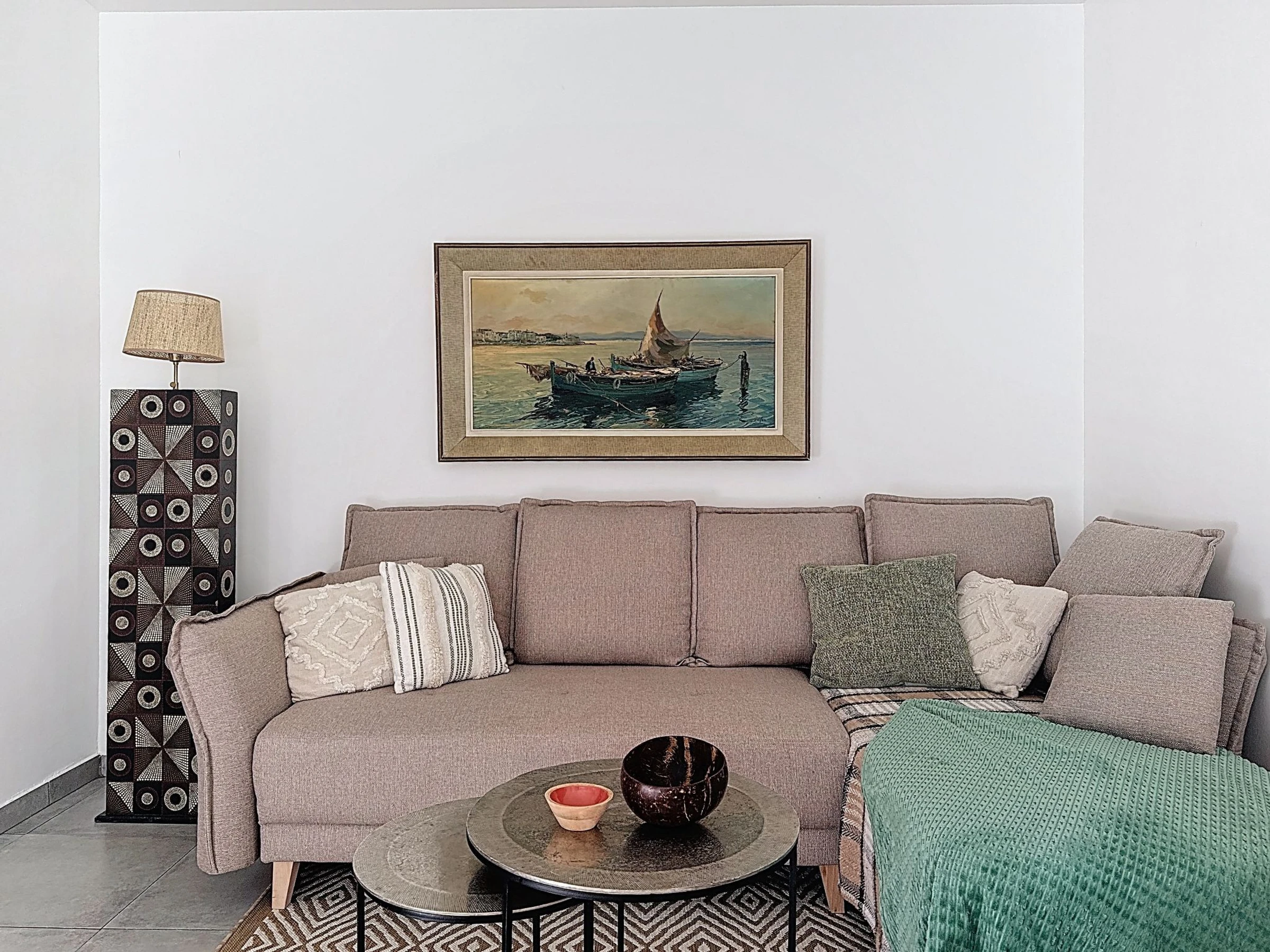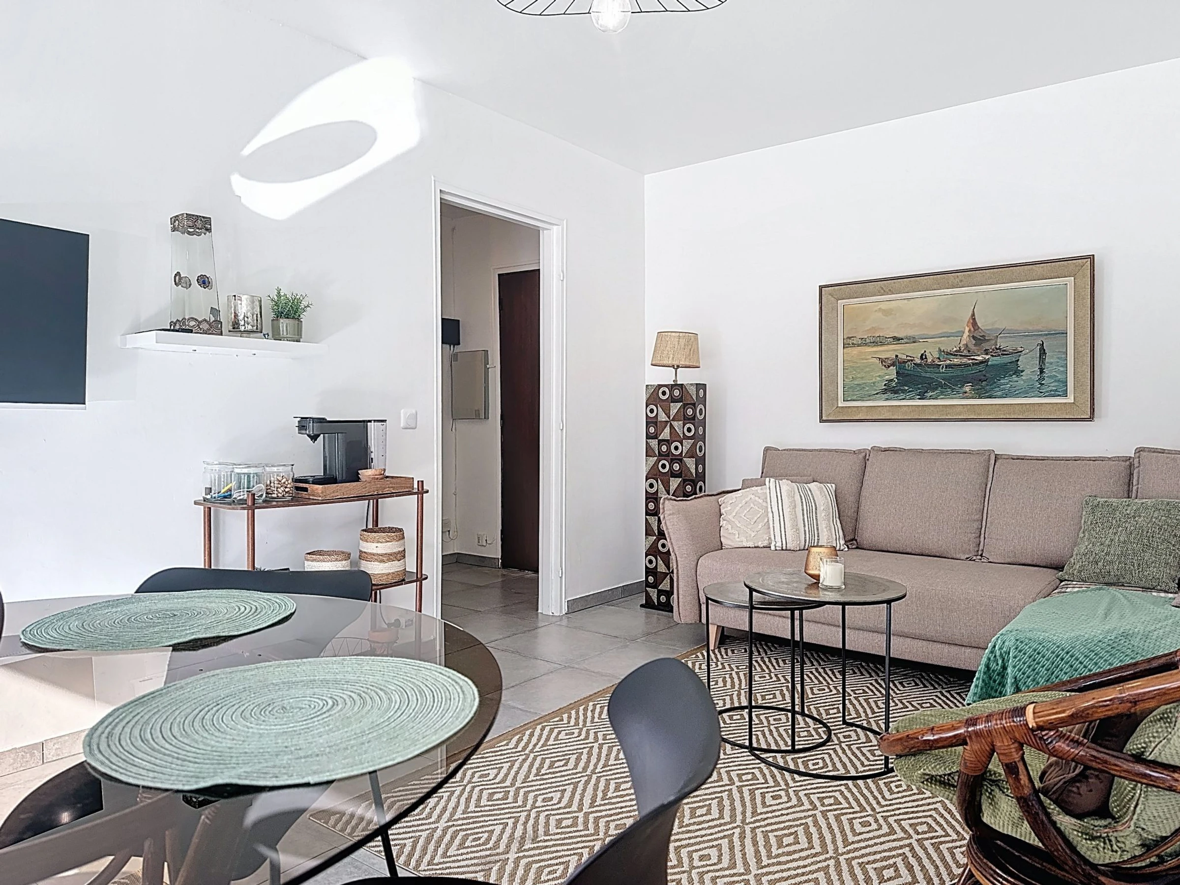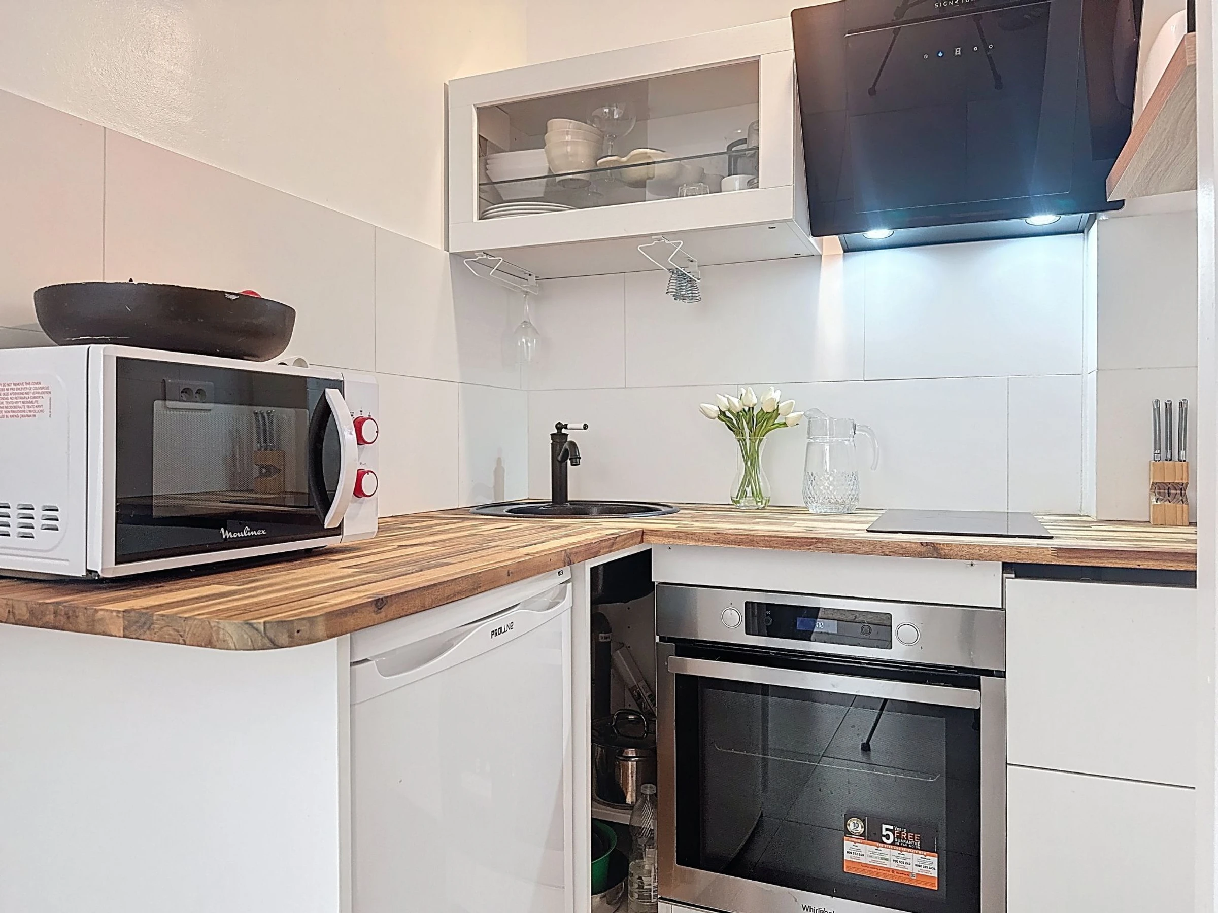 2-room apartment 35 m2, on the upper ground floor. Comfortable and modern furnishings: small entrance hall. Living/dining room with 1 double sofabed (1 x 140 cm, length 190 cm), TV. Exit to the patio, south facing position and west facing position. Kitchenette (2 ceramic glass hob hotplates, toaster, kettle, microwave, electric coffee machine). Shower/WC. Electric heating. Facilities: Internet (WiFi, free). Please note: non-smokers only, no parking. Smoke alarm. [hidden]