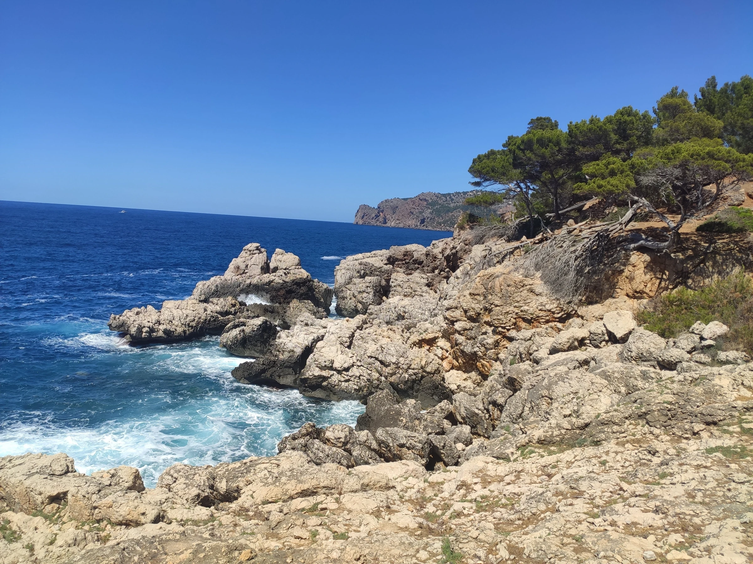 Cala Deià is a small rocky cove located on the north-west coast of Mallorca, within the municipality of Deià and in the heart of the Serra de Tramuntana. It is surrounded by cliffs, low-lying vegetation and pine forests, with very clear waters. It does not have fine sand, but rather gravel and stones, which gives it character and a very authentic natural style.