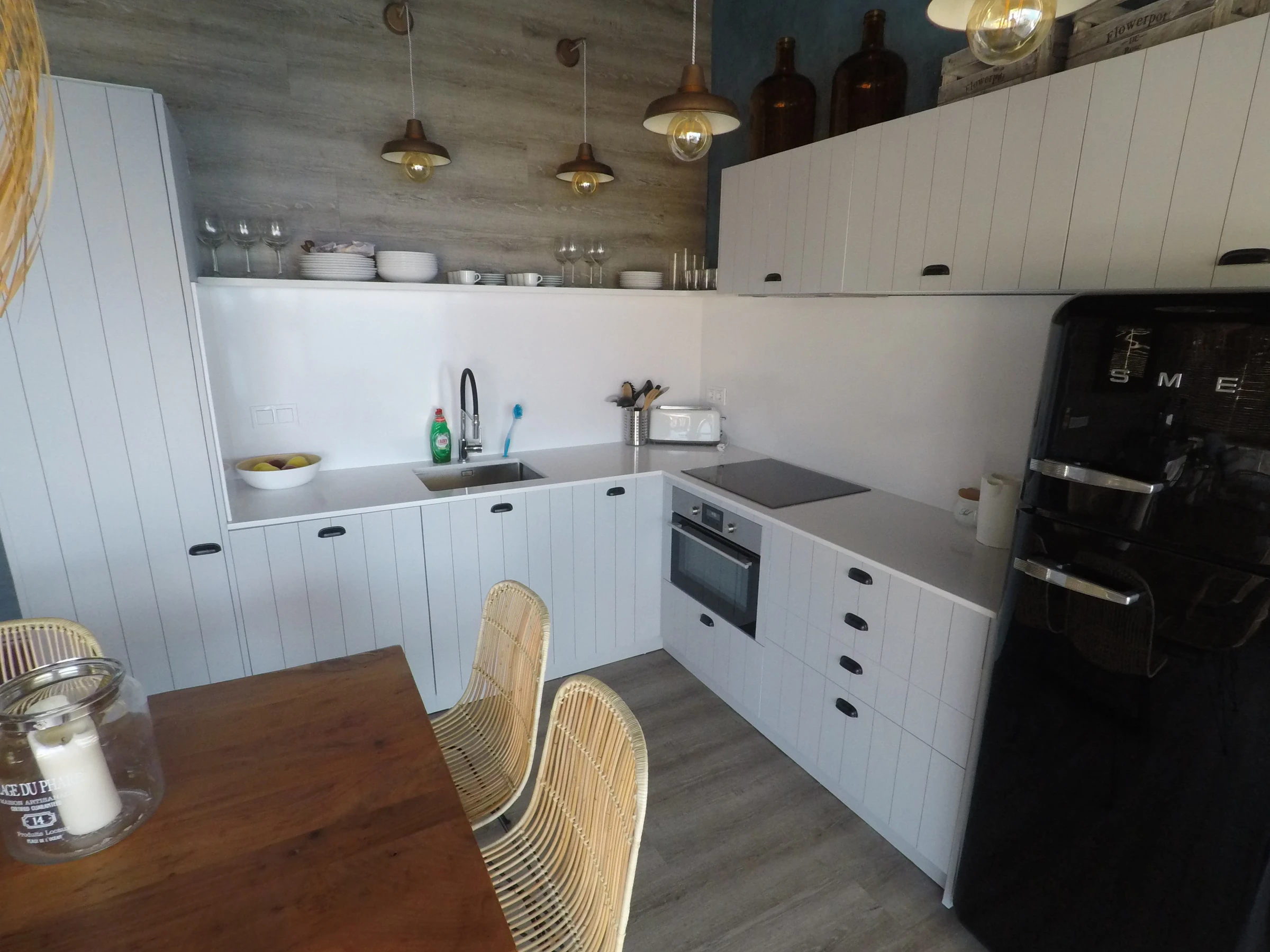 Equipped kitchen: fridge, freezer, dishwasher, microwave, oven, Nespresso, kettle, toaster, basic utensils and complete kitchenware.