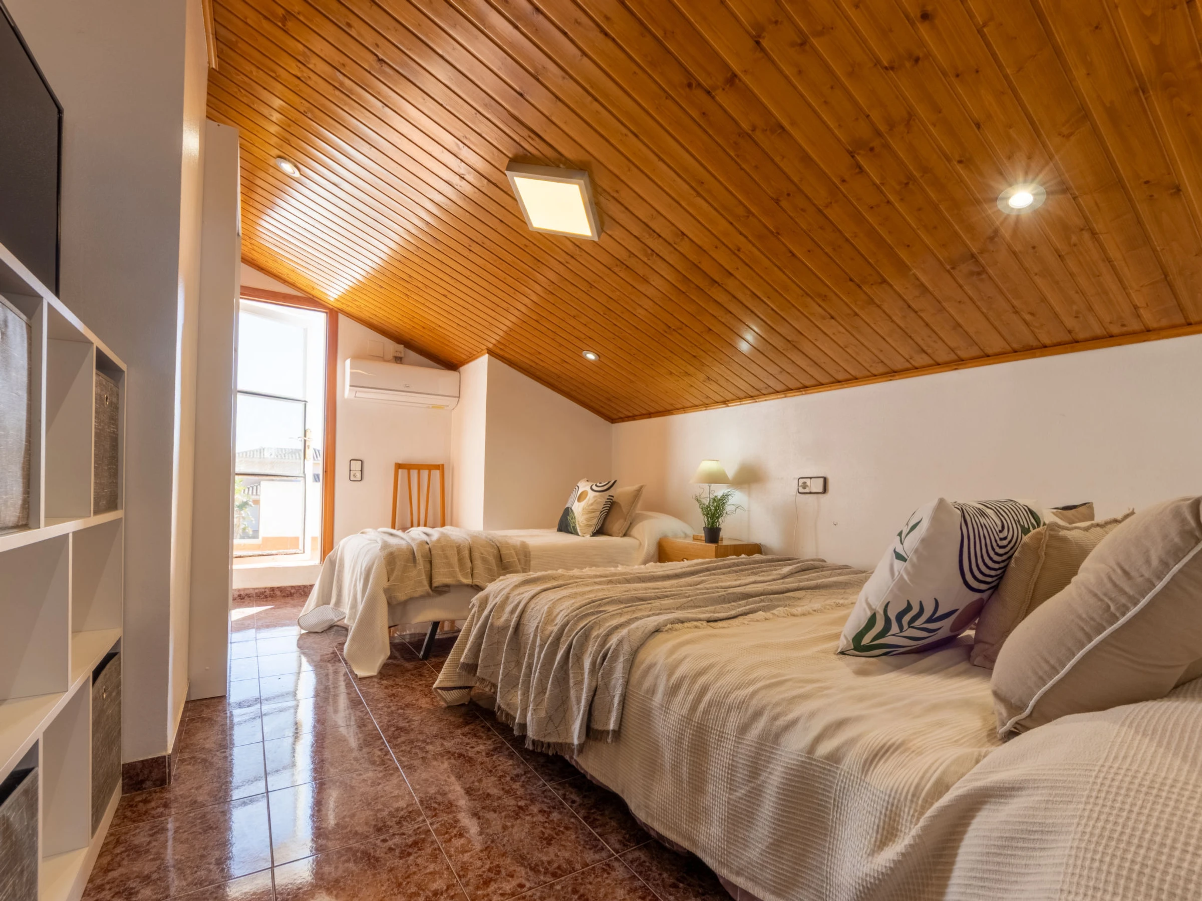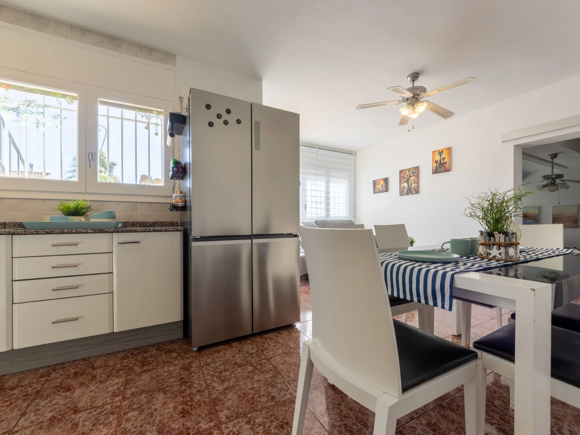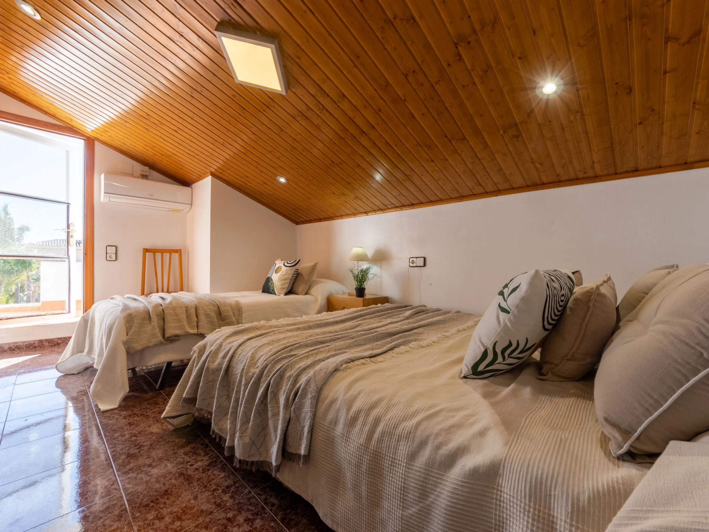 "Estrella", 6-room house 130 m2 on 2 levels. Renovated in 2020, comfortable and cosy furnishings: living/dining room with dining table, digital TV, international TV channels, air conditioning and forced-air heating. Exit pergola, to the patio, to the swimming pool. Living room with digital TV and international TV channels. Exit to the terrace, pergola, to the swimming pool. 3 double bedrooms, each room with 1 french bed (135 cm, length 190 cm). Open kitchen (4 hot plates, oven, dishwasher, toaster, kettle, microwave, freezer, electric coffee machine). Shower/WC, hip bath/bidet/WC. Air-conditioning, forced-air heating. Heating not available in all rooms. Upper floor: (exterior staircase), 1 double bedroom with sloping ceilings with 1 bed (90 cm, length 190 cm), 1 french bed (135 cm, length 190 cm), shower/WC, digital TV, air conditioning and forced-air heating. Exit to the terrace. Patio. Terrace furniture, barbecue, deck chairs. Side panoramic view of lagoon. Facilities: washing machine, iron, mosquito net, hair dryer. Internet (WiFi, free). Parking (2 cars) at the house. Please note: suitable for families one double bedroom is outside the apartment. Maximum 2 pets/ dogs allowed. [hidden] // Reg. Nr.: ESFCTU0000430190002671100000000000000000[hidden]8