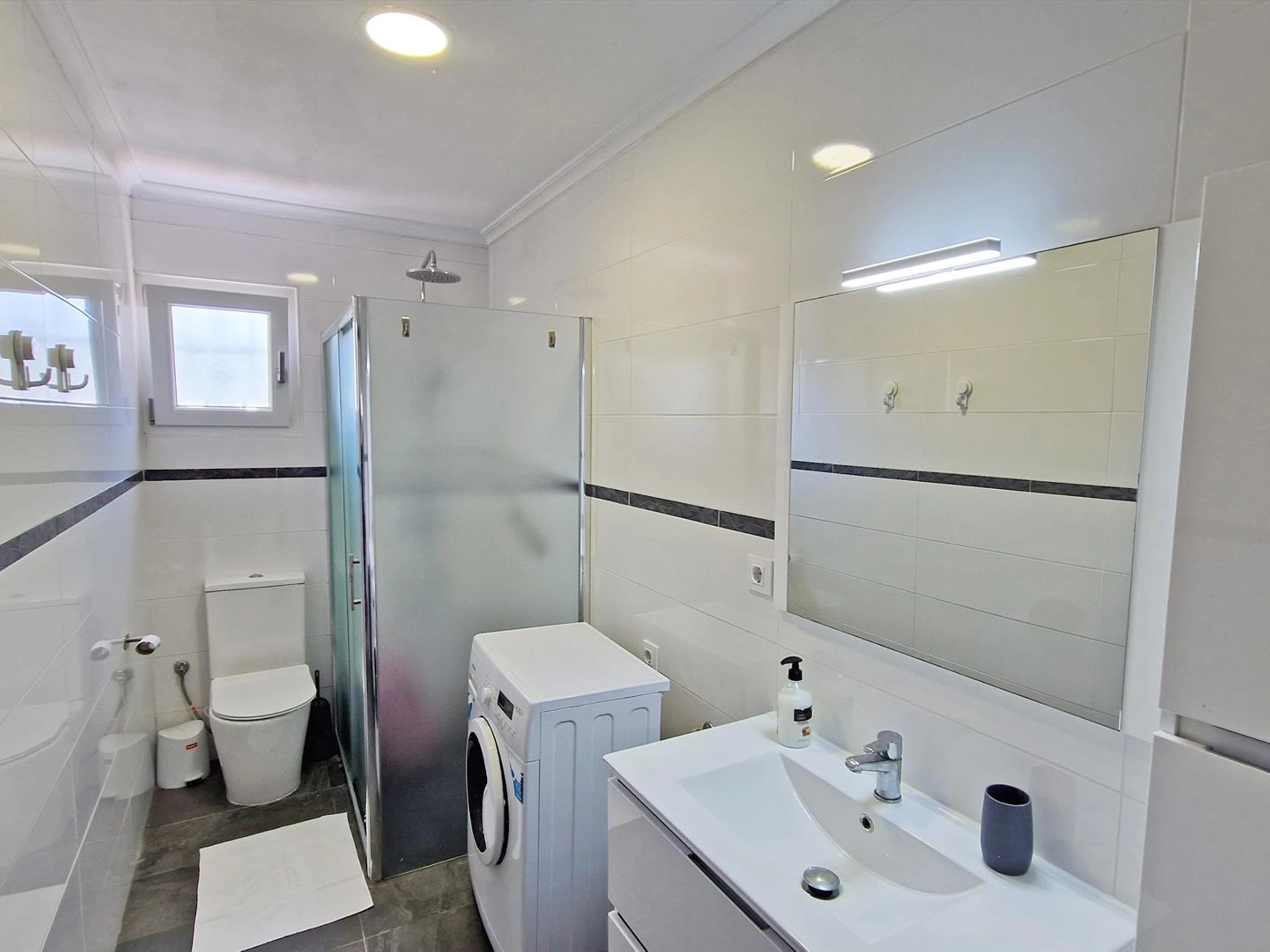 * Bathroom with shower, toilet and washing machine