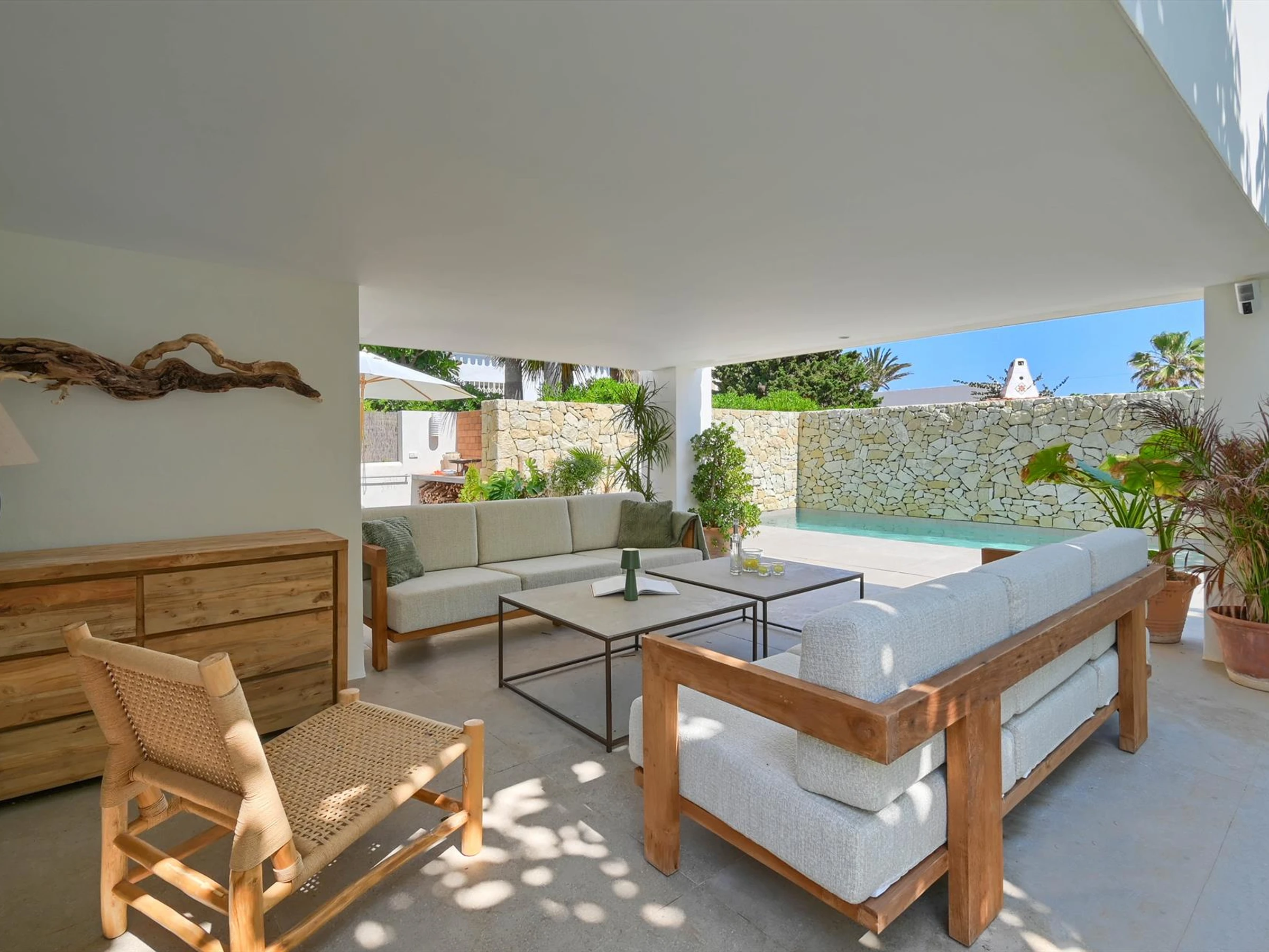 Modern and luxurious villa in Denia, Costa Blanca, Spain, with a private pool for 6 adults + 4 children. The villa is located in a privileged setting, with private and direct access to Les Marines beach, just 25 m from the Mediterranean Sea.