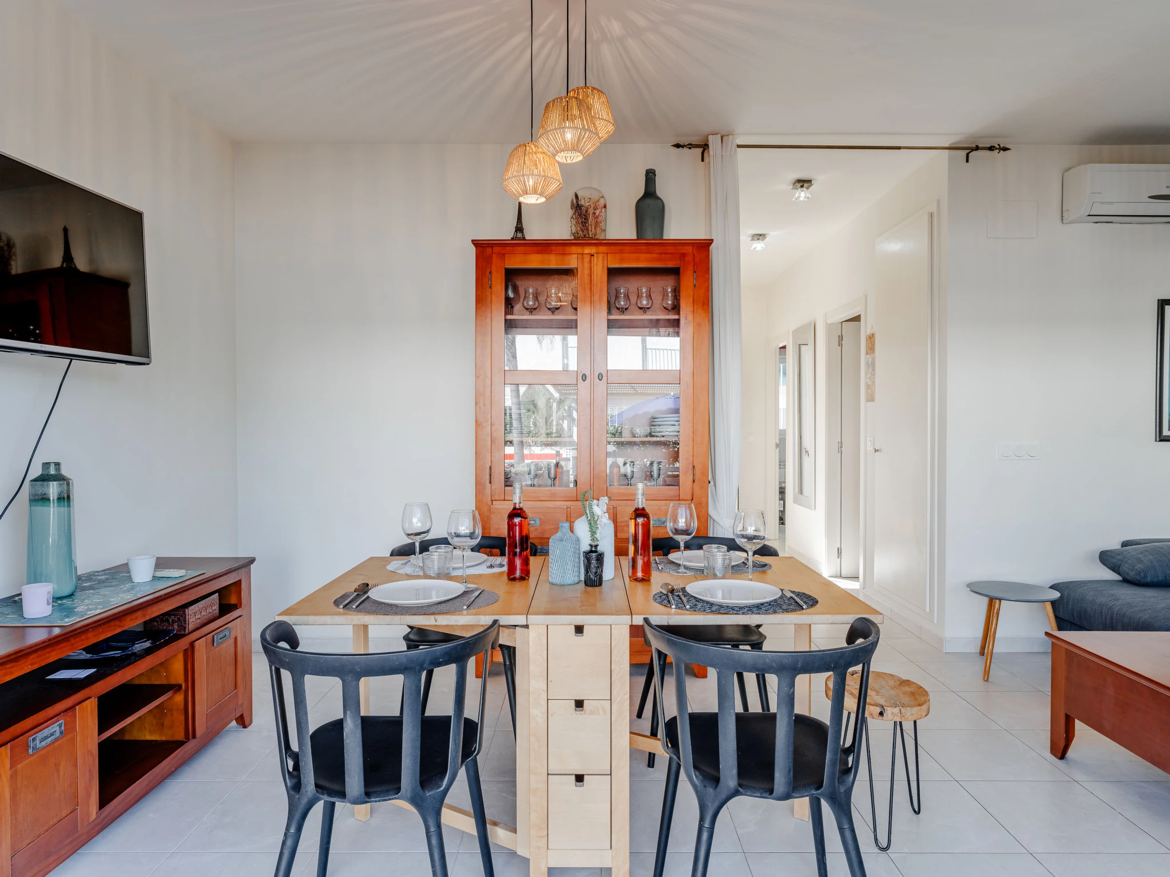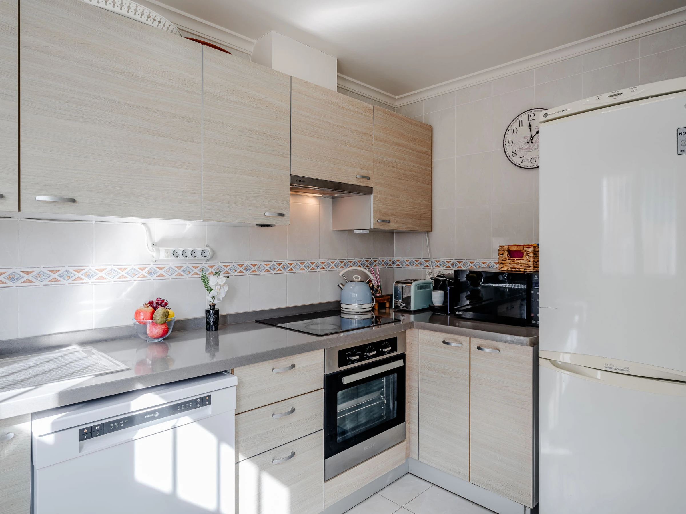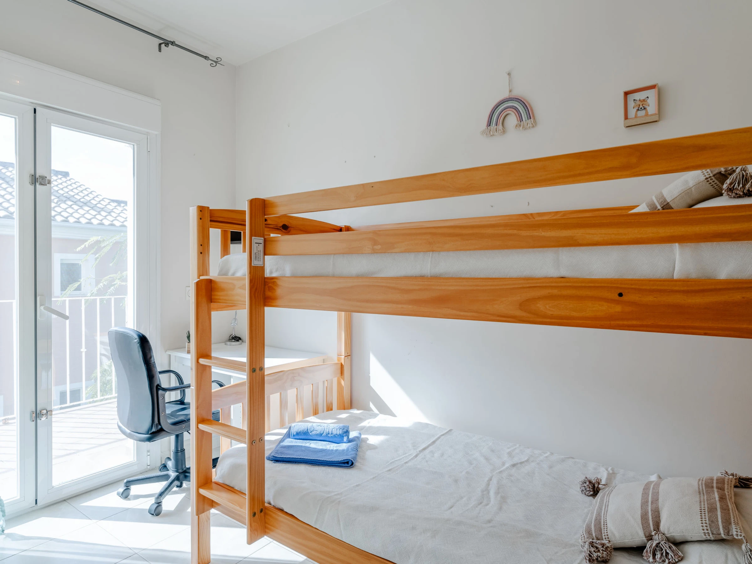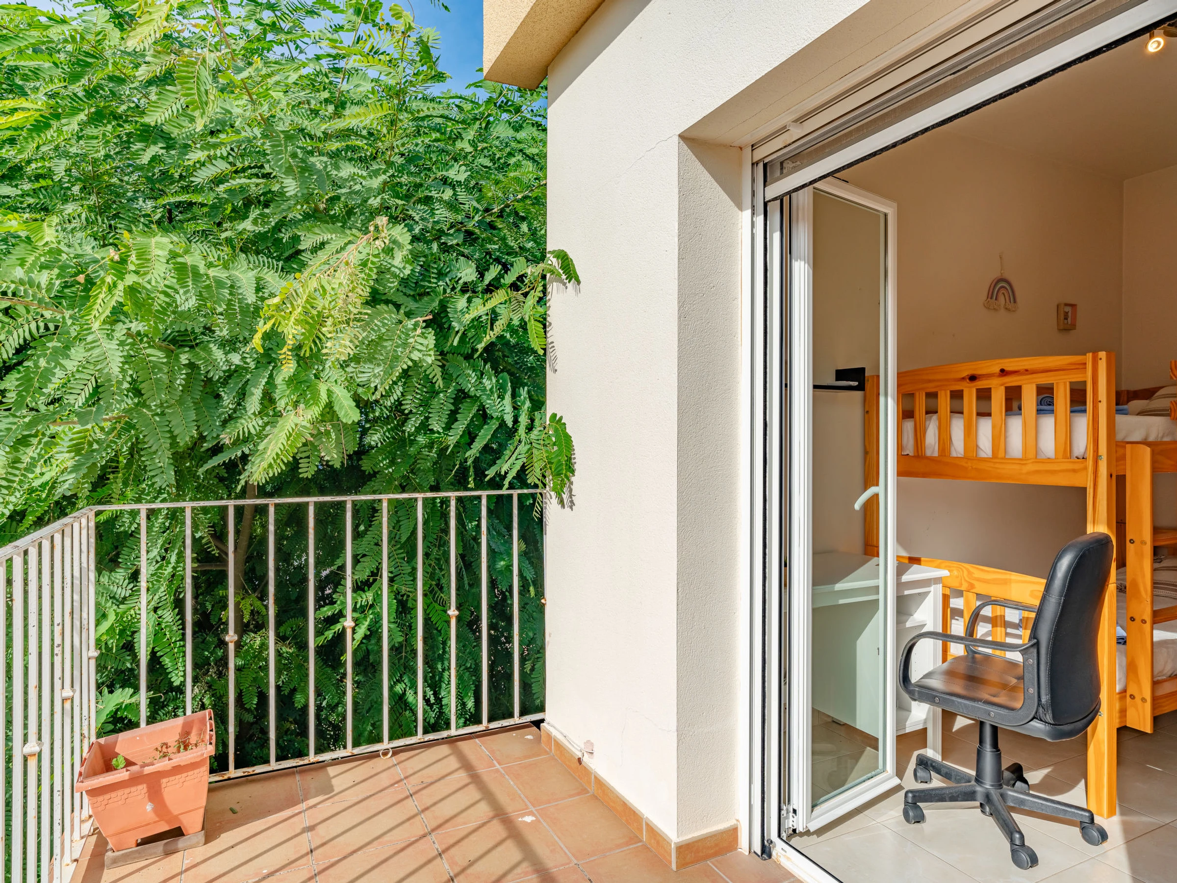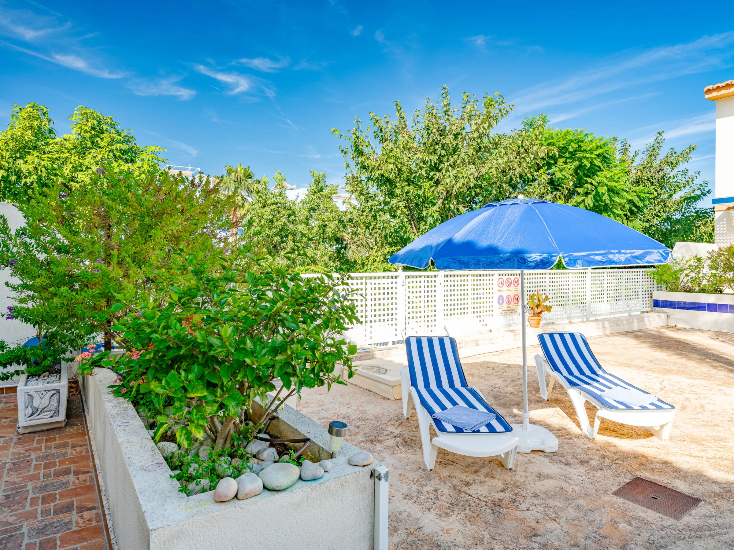 "El Vergel Chil", 4-room maisonette 90 m2 on 2 levels. Spacious, simple and comfortable furnishings: living/dining room with digital TV, air conditioning and forced-air heating. Exit to the terrace, to the swimming pool. Kitchen (oven, dishwasher, 4 ceramic glass hob hotplates, toaster, kettle, microwave, freezer, electric coffee machine, Capsules for coffee machine (Nespresso) extra). Shower/WC. Upper floor: 1 room with 1 french bed (150 cm, length 190 cm), air conditioning and forced-air heating. 1 room, without wardrobe with 1 french bed (135 cm, length 190 cm), air conditioning and forced-air heating. 1 room with 1 x 2 bunk beds (90 cm, length 200 cm), air conditioning and forced-air heating. Exit to the terrace. Bath/bidet/WC. 2 large terraces. Terrace furniture, sitting area. Facilities: washing machine, iron, hair dryer. Internet (WiFi, free). Parking. [hidden] // Reg. Nr.: ESFCTU0000030450008977760000000000000000VUT0517559-A9