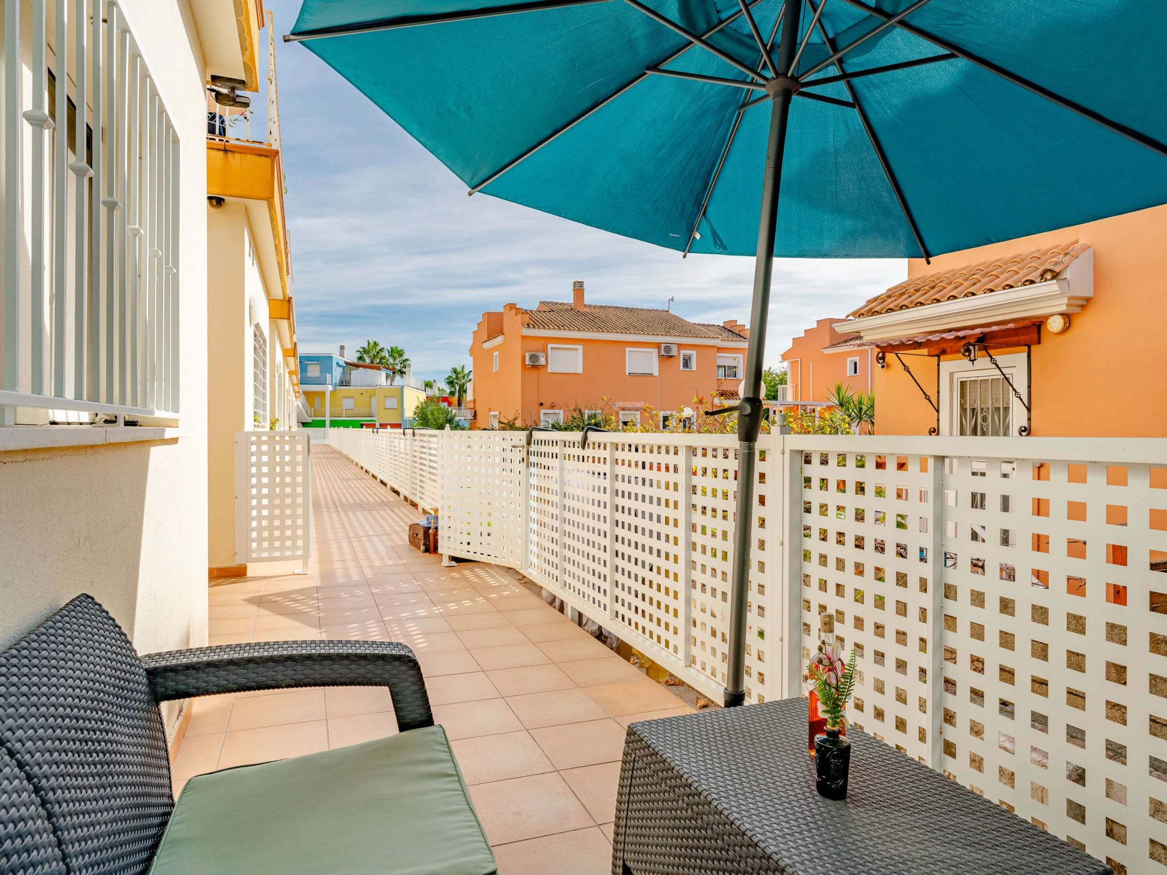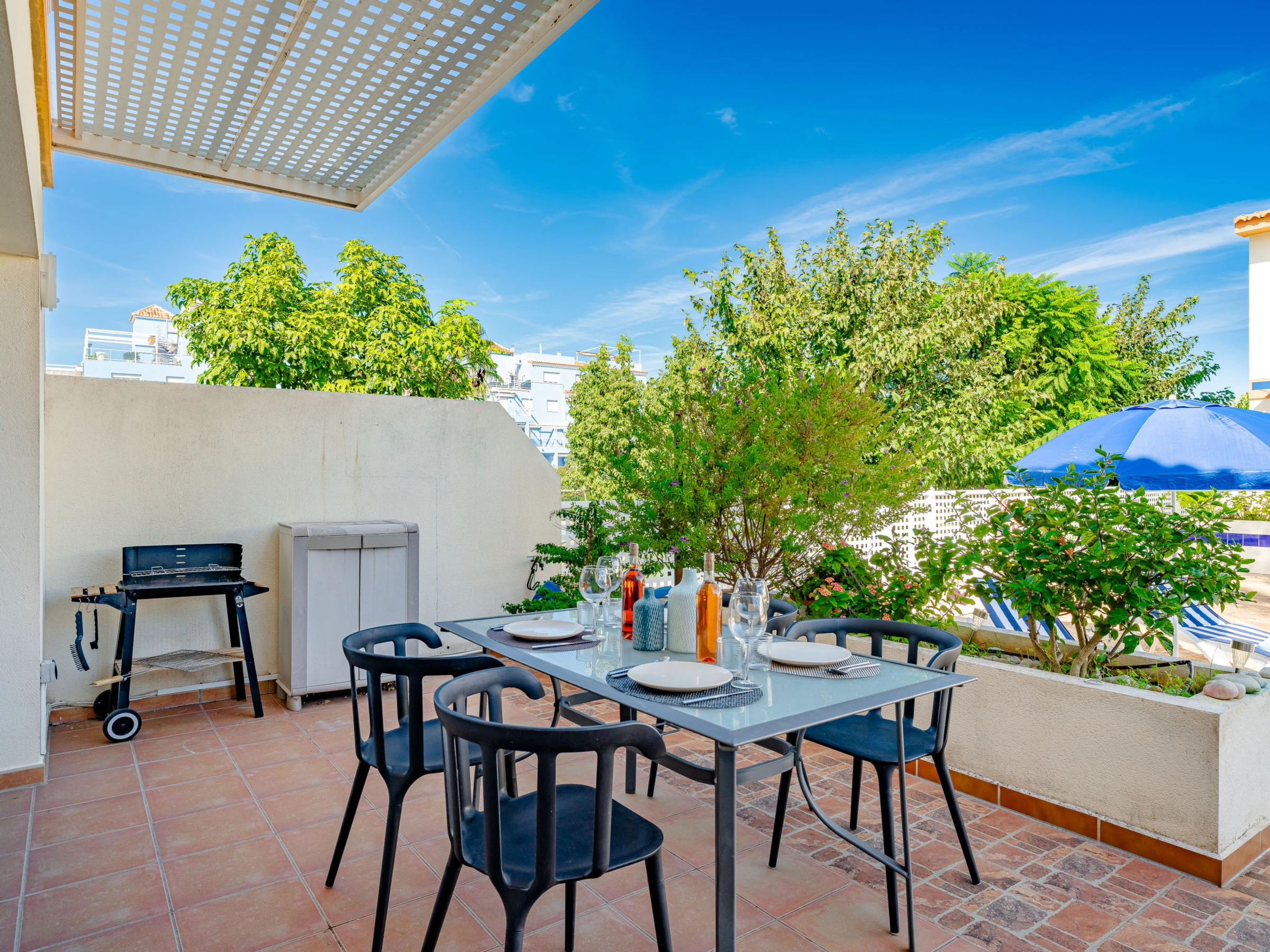 Large, beautiful apartment block, 2 storeys. In the district of El Vergel, in a quiet, sunny position, 1 km from the sea, 1 km from the beach. For shared use: swimming pool angular (13 x 7 m, depth 40 - 210 cm, seasonal availability: [hidden] - [hidden] Children's pool, outdoor shower, parking on the premises. Supermarket 300 m, restaurant 110 m, café 400 m, bus stop 1.2 km, sandy beach 1 km. The owner does not accept any youth groups.