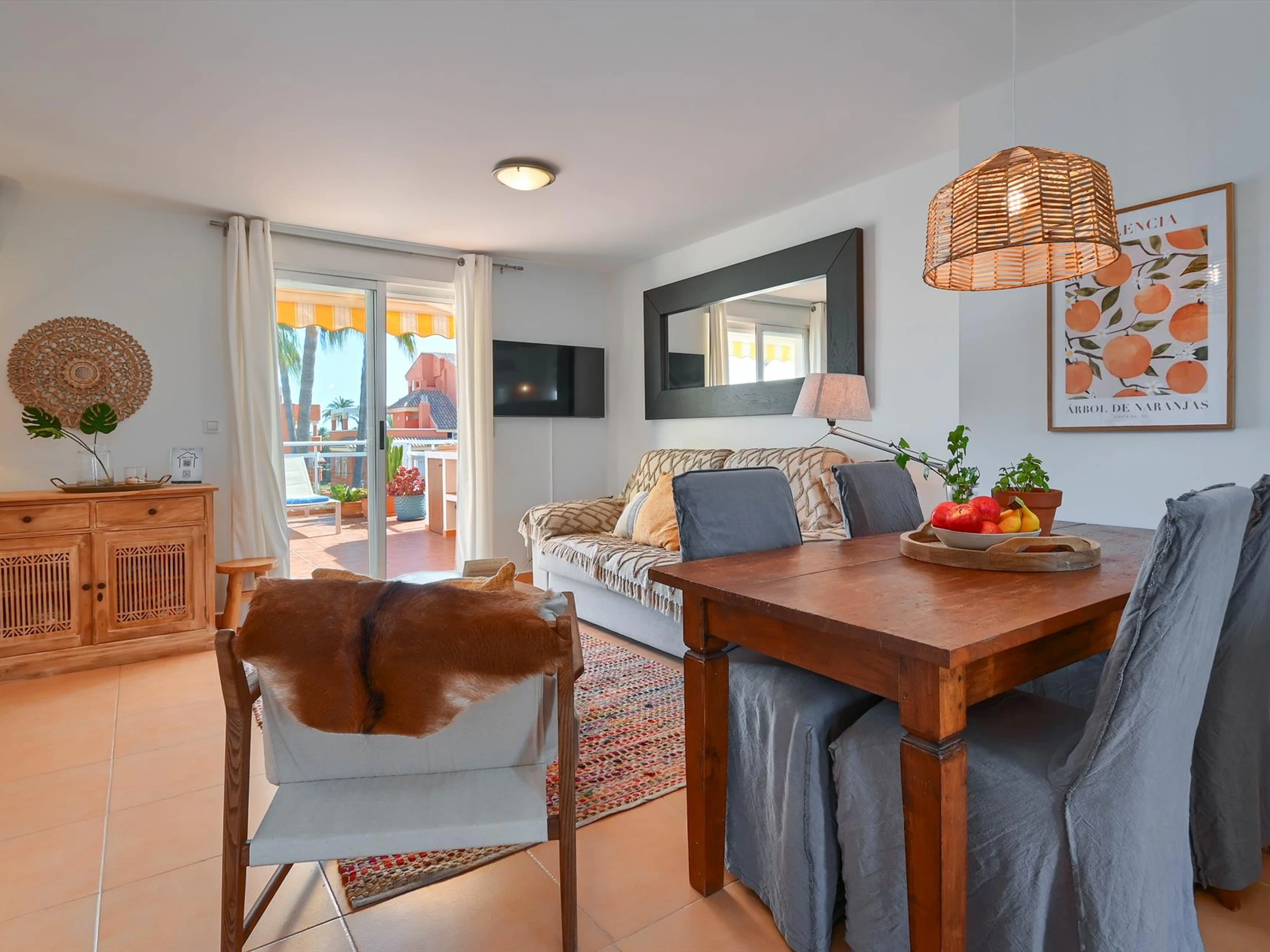 The apartment has 2 bedrooms and 2 bathrooms, spread over 2 levels. The accommodation offers a beautiful lawned garden with trees, a lawned communal garden with trees and wonderful views of the pool and the garden. Its comfort and the vicinity of the beach, places to shop, sports activities, places to go out, sights and culture make this a fine apartment to spend your holidays in Spain with family or friends.