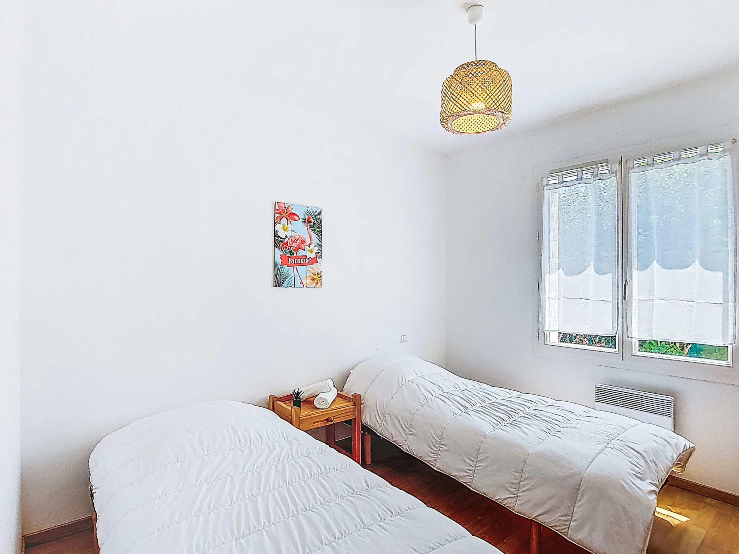 4-room house 100 m2. Comfortable and beautiful furnishings: living/dining room with cable TV (flat screen). Exit to the terrace. 1 room with 1 french bed (1 x 140 cm, length 190 cm). 1 room with 1 french bed (1 x 140 cm, length 190 cm). 1 children's room with 2 beds (90 cm, length 190 cm) (90 cm). Open kitchen (4 hot plates, oven, dishwasher, toaster, kettle, microwave, grill). Shower, sep. WC. Electric heating. Terrace 18 m2. Terrace furniture, barbecue, deck chairs (2). Facilities: washing machine, children's high chair, hair dryer. Internet (WiFi, extra). Parking (1 car). Please note: non-smoking house. Smoke alarm. Offer by a private individual according to  Art. 155, IV of CGI. [hidden]