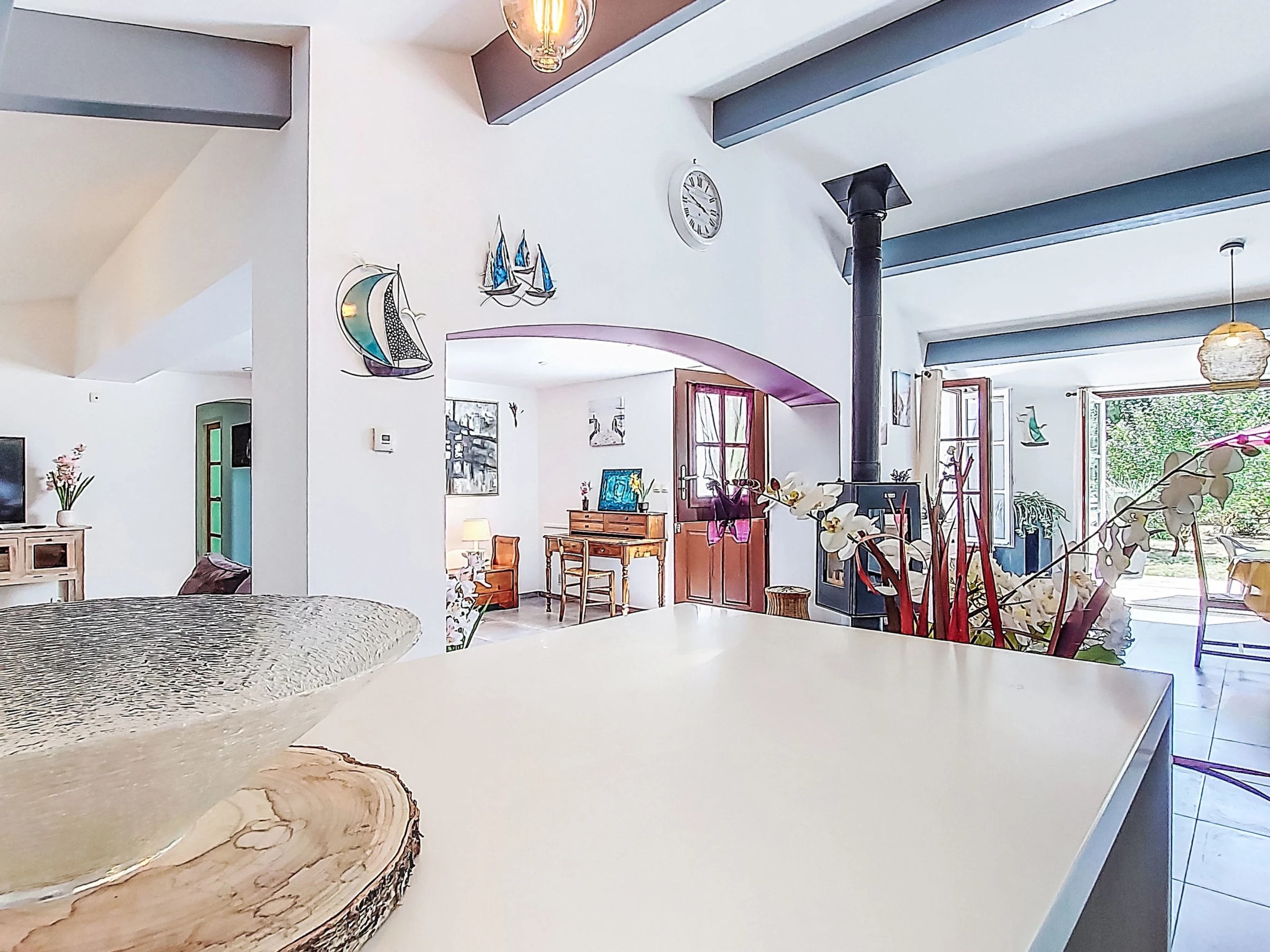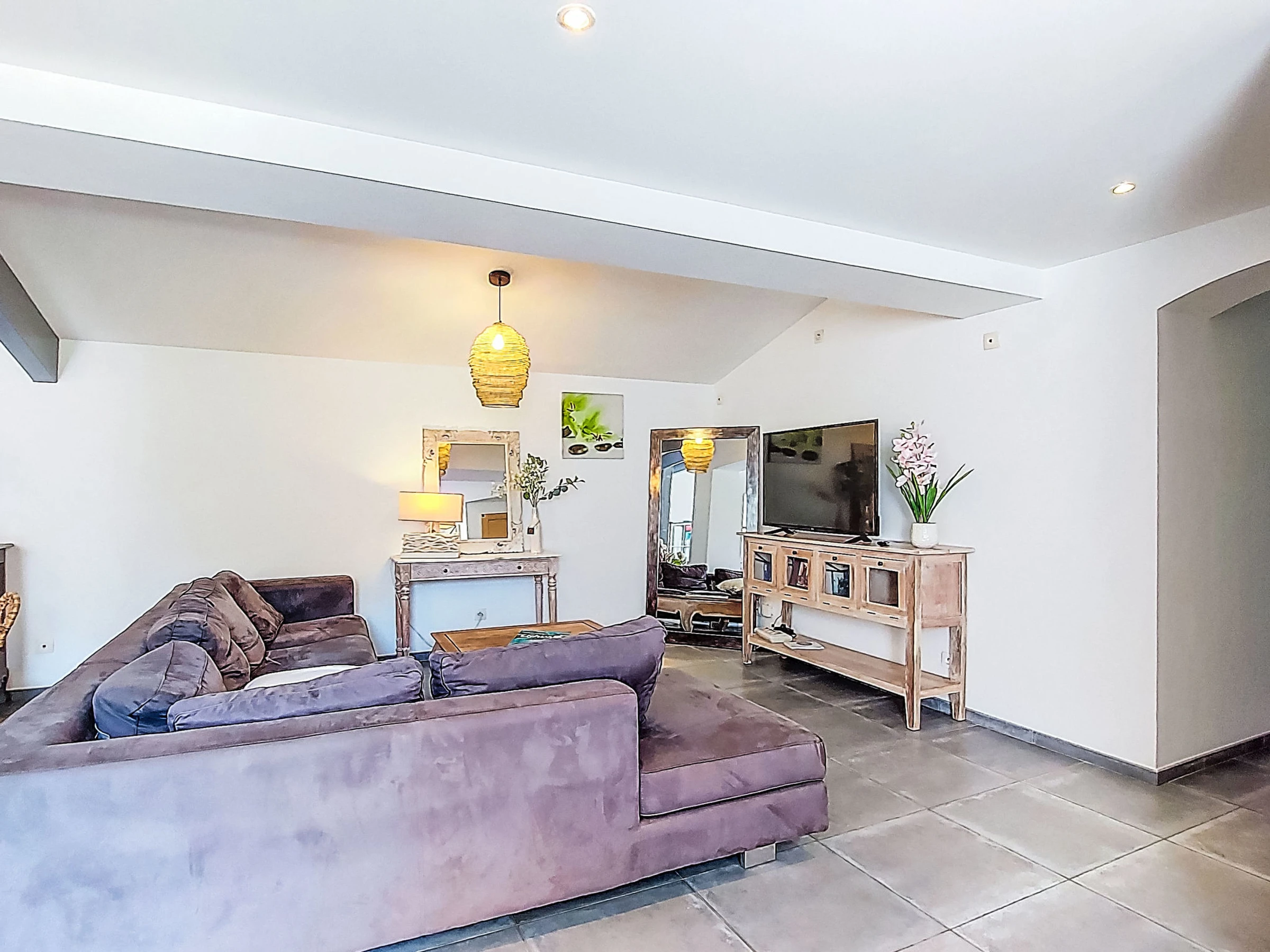 6-room villa 250 m2. Spacious, comfortable and modern furnishings: living/dining room with TV (flat screen). Exit to the garden, to the terrace, to the swimming pool. 1 room with Dressing room with 1 french bed (1 x 160 cm, length 200 cm). Exit to the terrace. 1 room with 1 french bed (1 x 140 cm, length 190 cm). Exit to the terrace. Large, open kitchen (oven, dishwasher, 4 ceramic glass hob hotplates, toaster, kettle, microwave, electric coffee machine, cooking island). Bath/shower, sep. WC. Electric heating. Upper floor: (exterior staircase) living/sleeping room with 1 french bed (1 x 120 cm, length 190 cm). 1 room with sloping ceilings with 1 bed (90 cm, length 190 cm), 1 french bed (1 x 140 cm, length 190 cm), shower/WC. Electric heating. Large terrace. Terrace furniture, barbecue, deck chairs (6), conservatory. Facilities: washing machine, iron, baby cot, hair dryer. Internet (WiFi, free). Garage, height 190 cm. Please note: non-smoking house. Maximum 1 pet/ dog allowed. Smoke alarm. Offer by a private individual according to Art. 155, IV of CGI. [hidden]