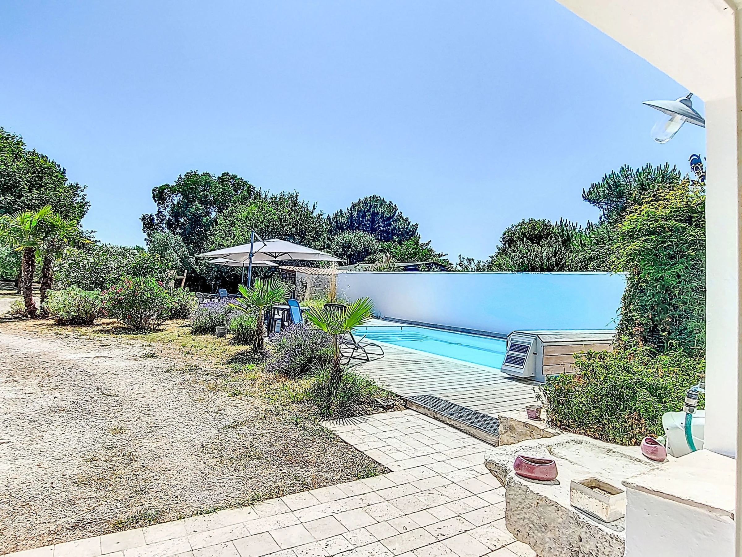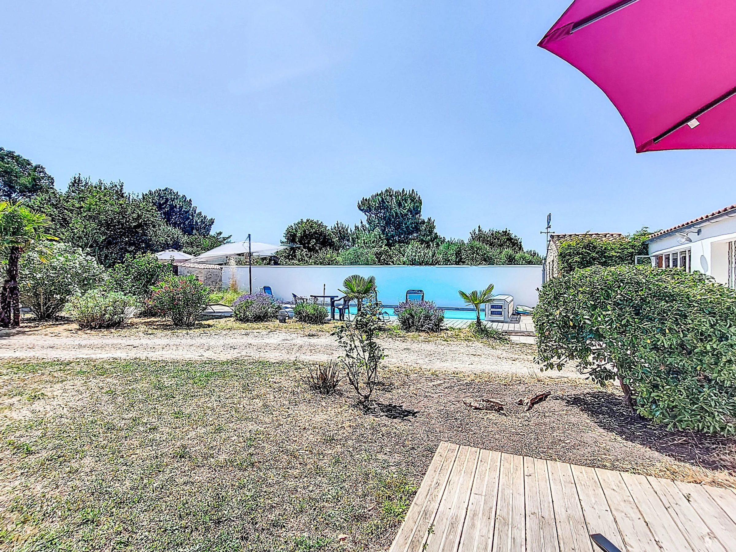 Modern, beautiful, comfortable villa "Le Grand Deau", built in 2008. In the centre of Le Grand Deau, in a quiet position, 3 km from the sea, 4 km from the beach. Private: property 2'300 m2 (fenced), wildlife garden and flowers, swimming pool angular, heated (8 x 4 m, seasonal availability: [hidden] - [hidden] with shutter cover. Pool house with shower and WC, terrace, garden furniture, barbecue house, parking, single garage. Parking space or garage only for small to medium-sized cars. Dimension: height 190 cm. Shop 1 km, grocery 1 km, supermarket 1 km, restaurant 1 km, bar 1 km, bakery 1 km, café 1 km, bicycle rental 1 km, bus stop "Les Chasseries" 900 m, railway station "Rochefort sur Mer" 41 km, sandy beach 4 km. Golf course (9 hole) 8 km. Nearby attractions: Iléo centre aquatique 2 km, Phare de Chassiron 23 km, Port de la Cotinière 9 km, Corderie Royale Rochefort 39 km, La Rochelle 72 km.