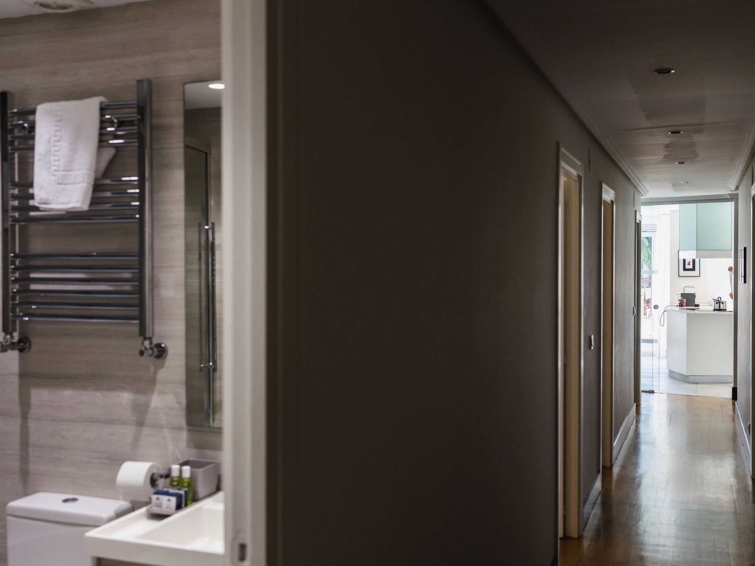 The apartment is a magnificent 220 square metres large, with capacity for up to 8 people. Its contemporary, elegant and sophisticated decor faithfully brings together and reflects its surrounding environment: the city's flagship colours (white and blue), the reflection of the sky, the waves and sand... The flat is also well-equipped with high-end features guaranteeing you to feel at home from the moment you get there.