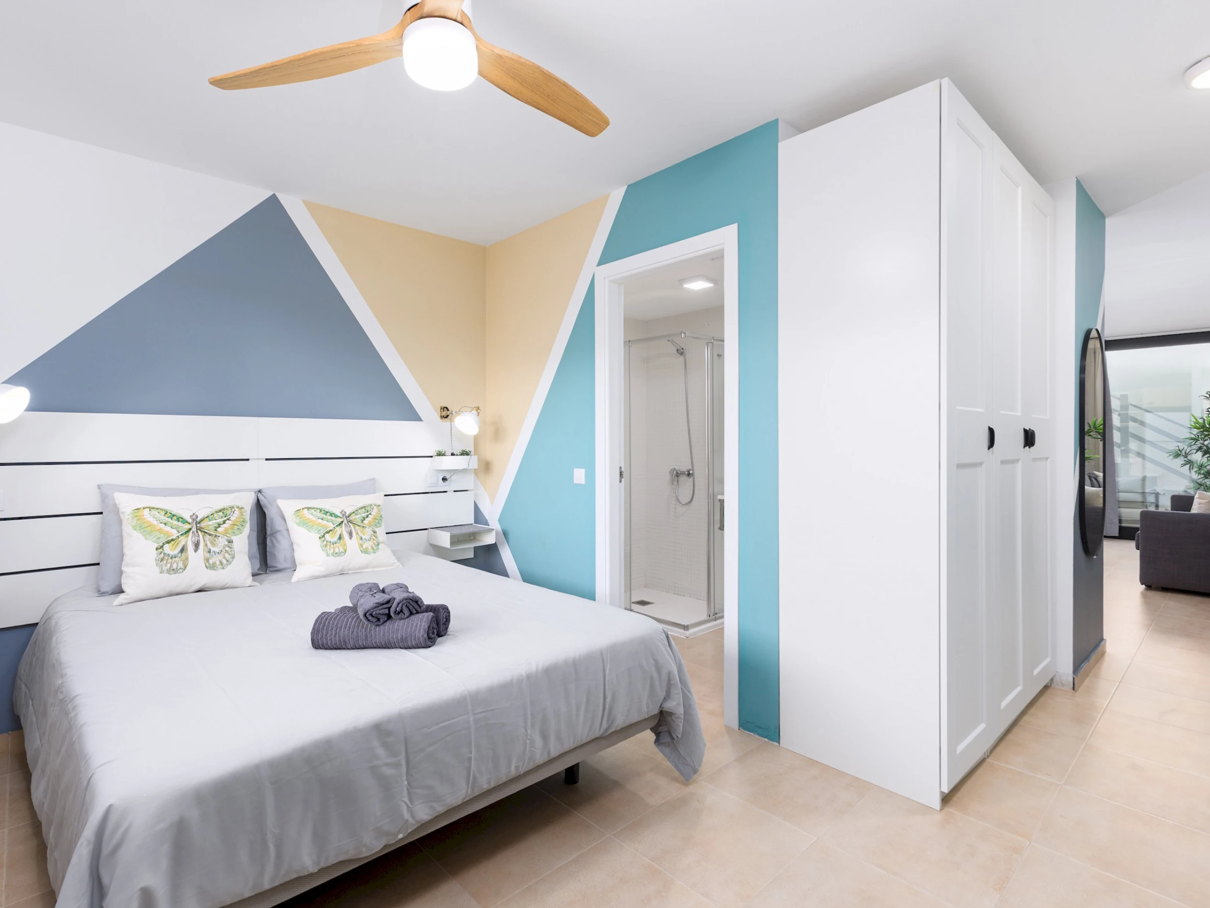 Designed to accommodate up to 3 guests, it offers a comfortable layout with one bedroom featuring a double bed, a bathroom with a shower, and an open-plan living area with a sofa bed and integrated kitchen. The private 20 m² terrace extends the living space outdoors, becoming the perfect spot for unhurried breakfasts, reading in the shade, or watching the afternoon fade away. A serene retreat to enjoy Fuerteventura at an easy pace.