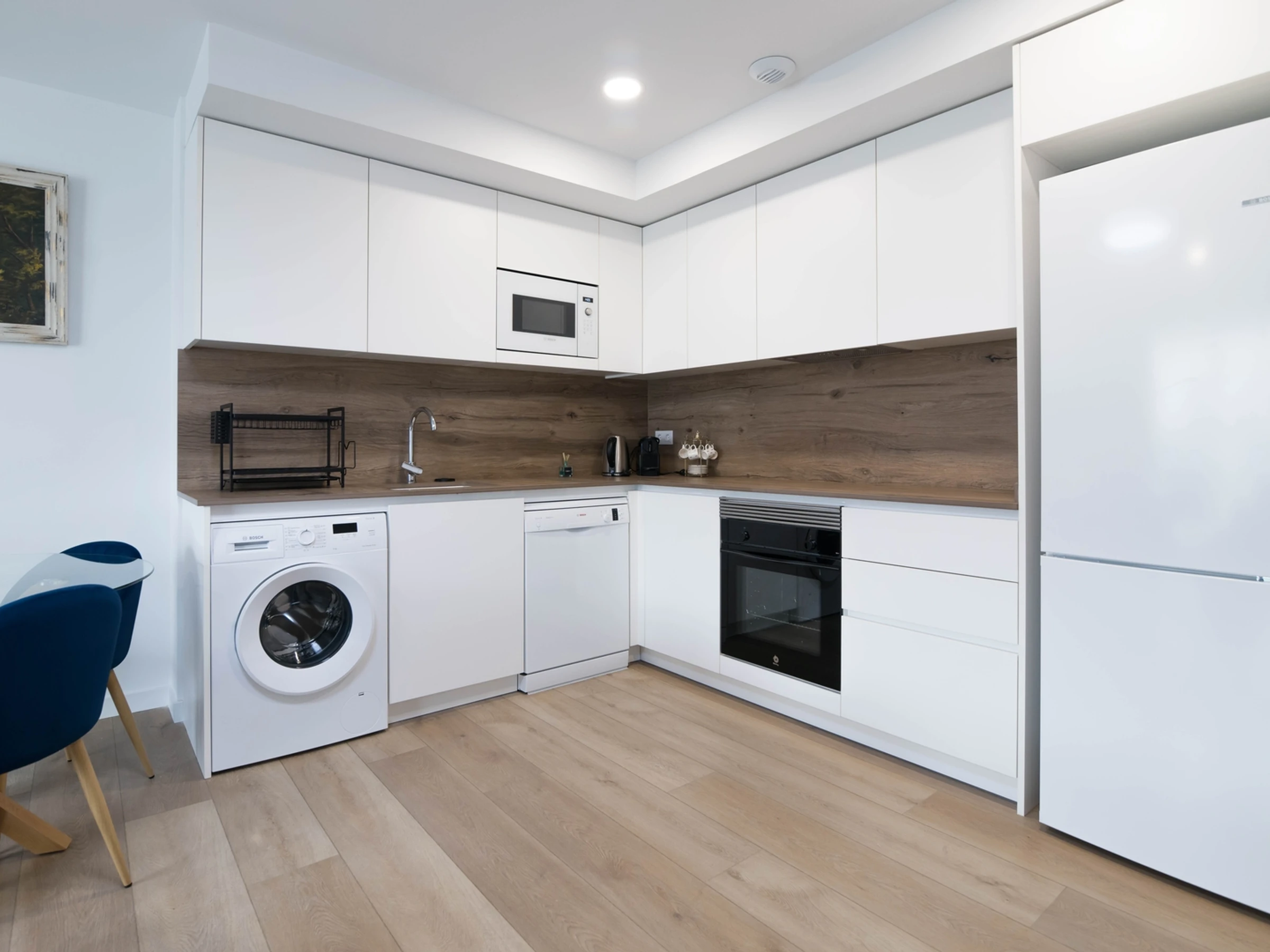 The kitchen is fully equipped with appliances and utensils for short or long stays.