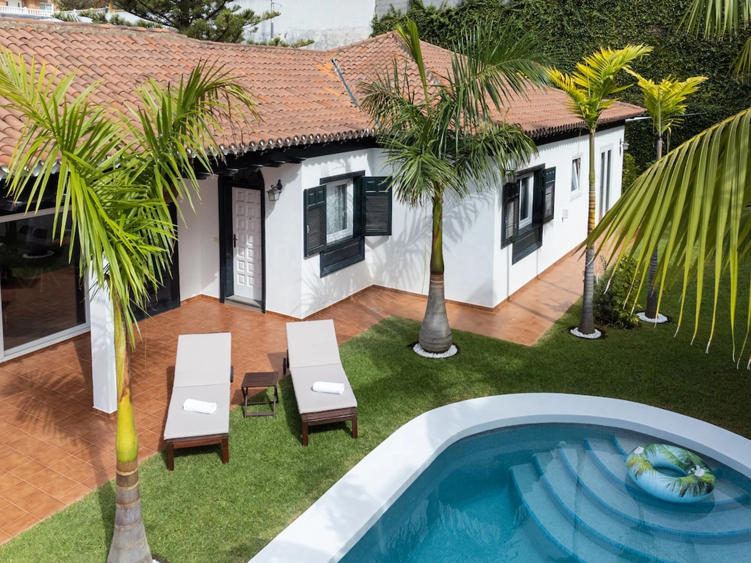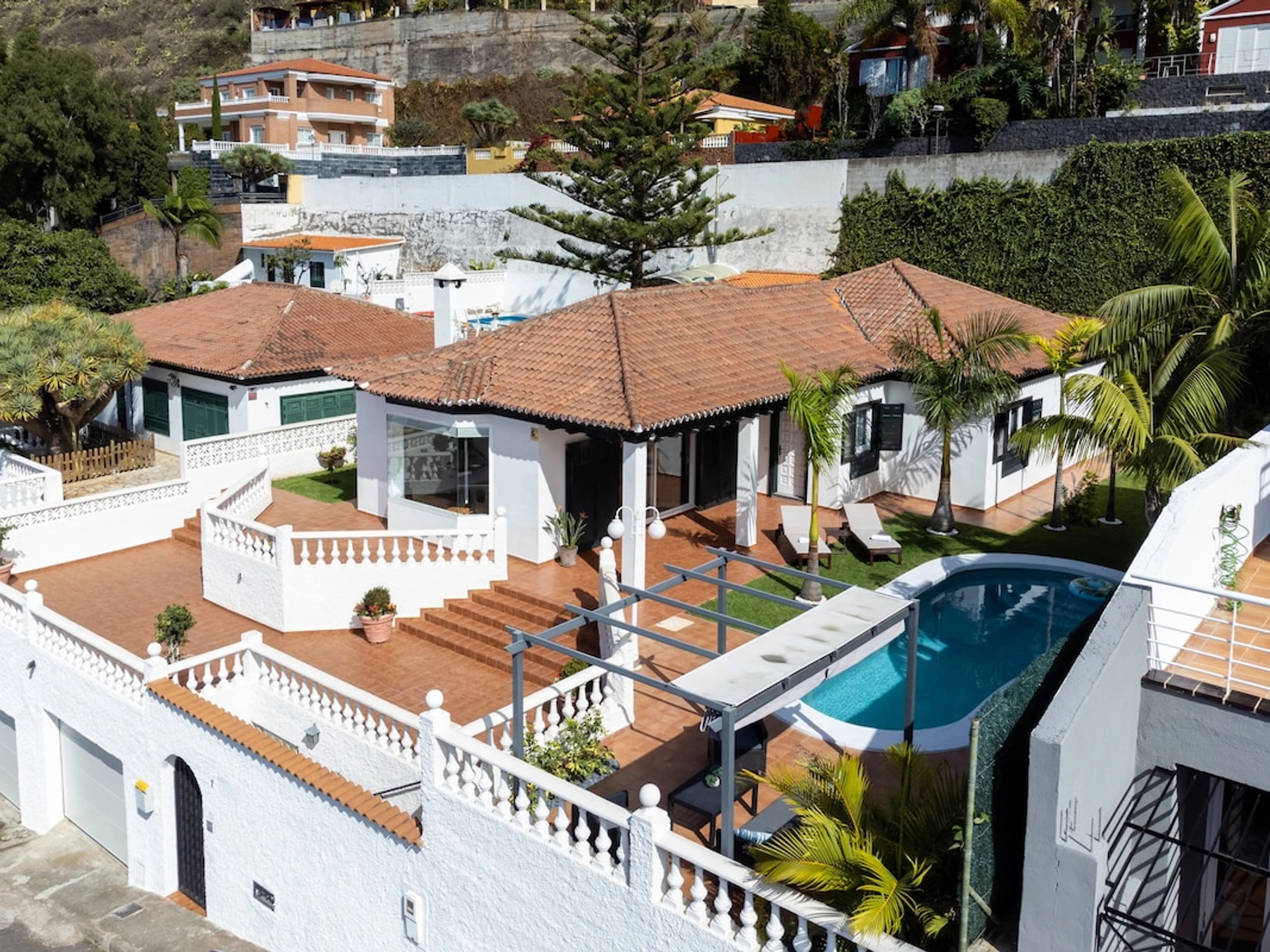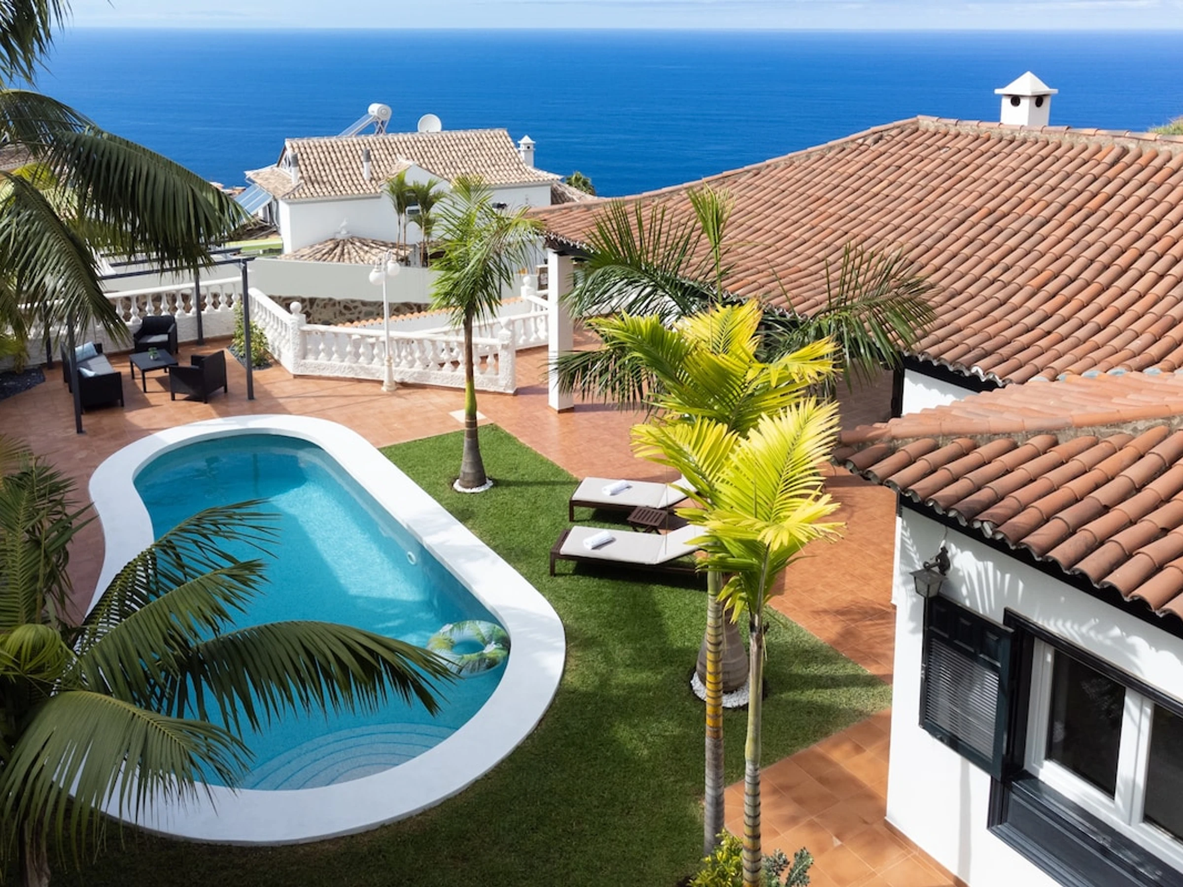 This beautiful villa is ideal for families and business trips as it can accommodate up to 6 people. Distributed in 3 large bedrooms, the master bedroom with dressing room, two bathrooms and a toilet. With a large central living room with views of both the sea and the Teide, fully equipped kitchen and 600 mb fibre Wifi Internet access designed for teleworking. With a luxury outdoor space with private heated swimming pool, sunbathing area and different corners where you can relax, have lunch or simply enjoy the environment. All surrounded by gardens with sea views, in an idyllic setting where you can breathe tranquillity.