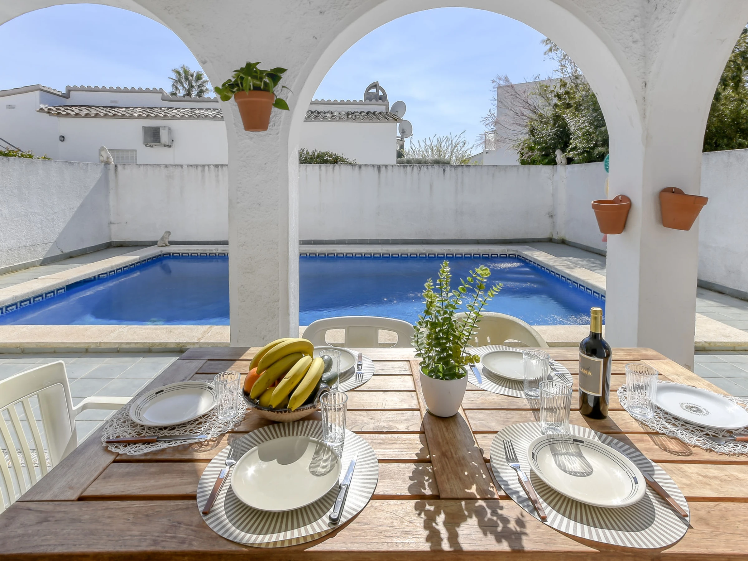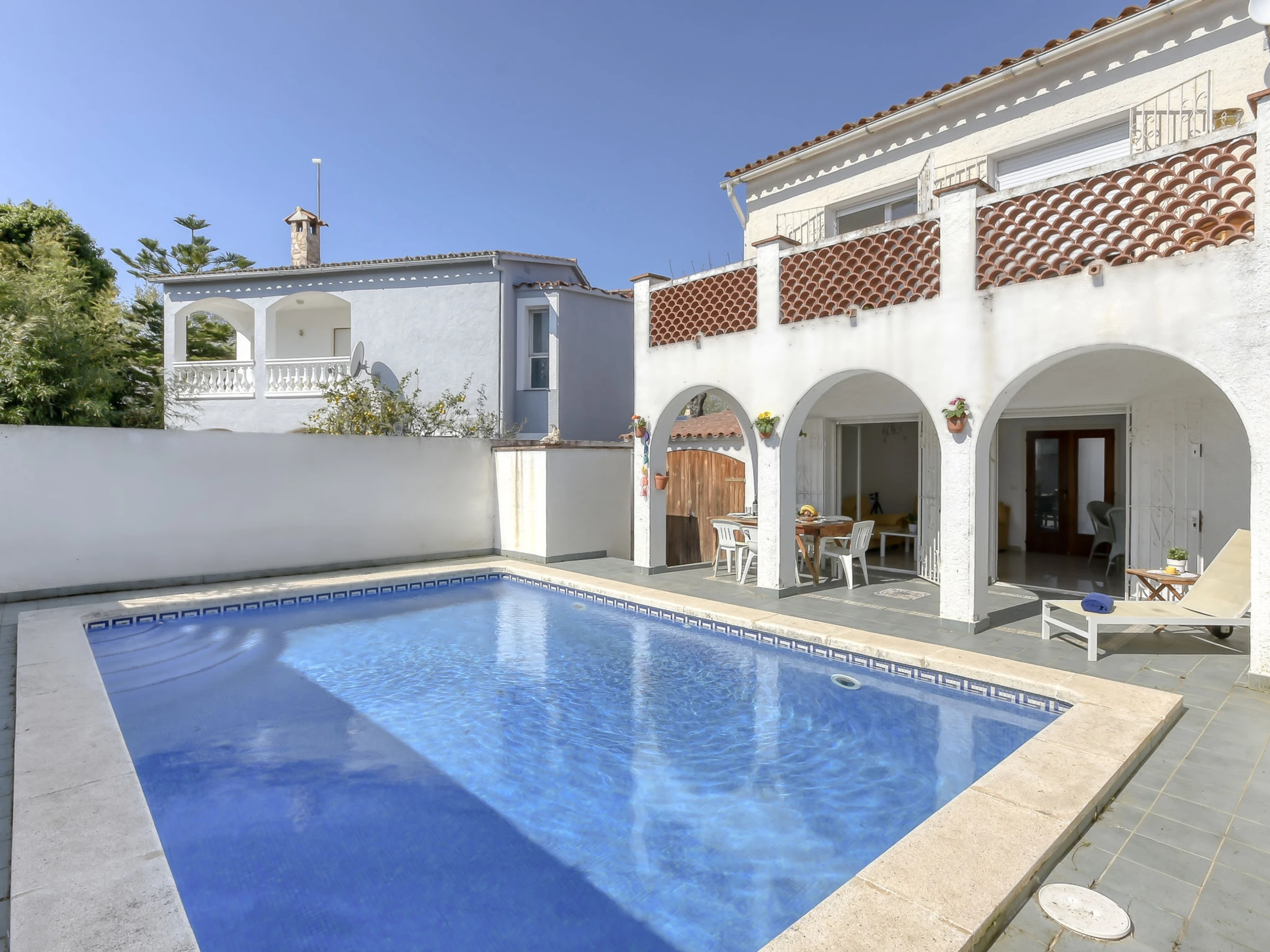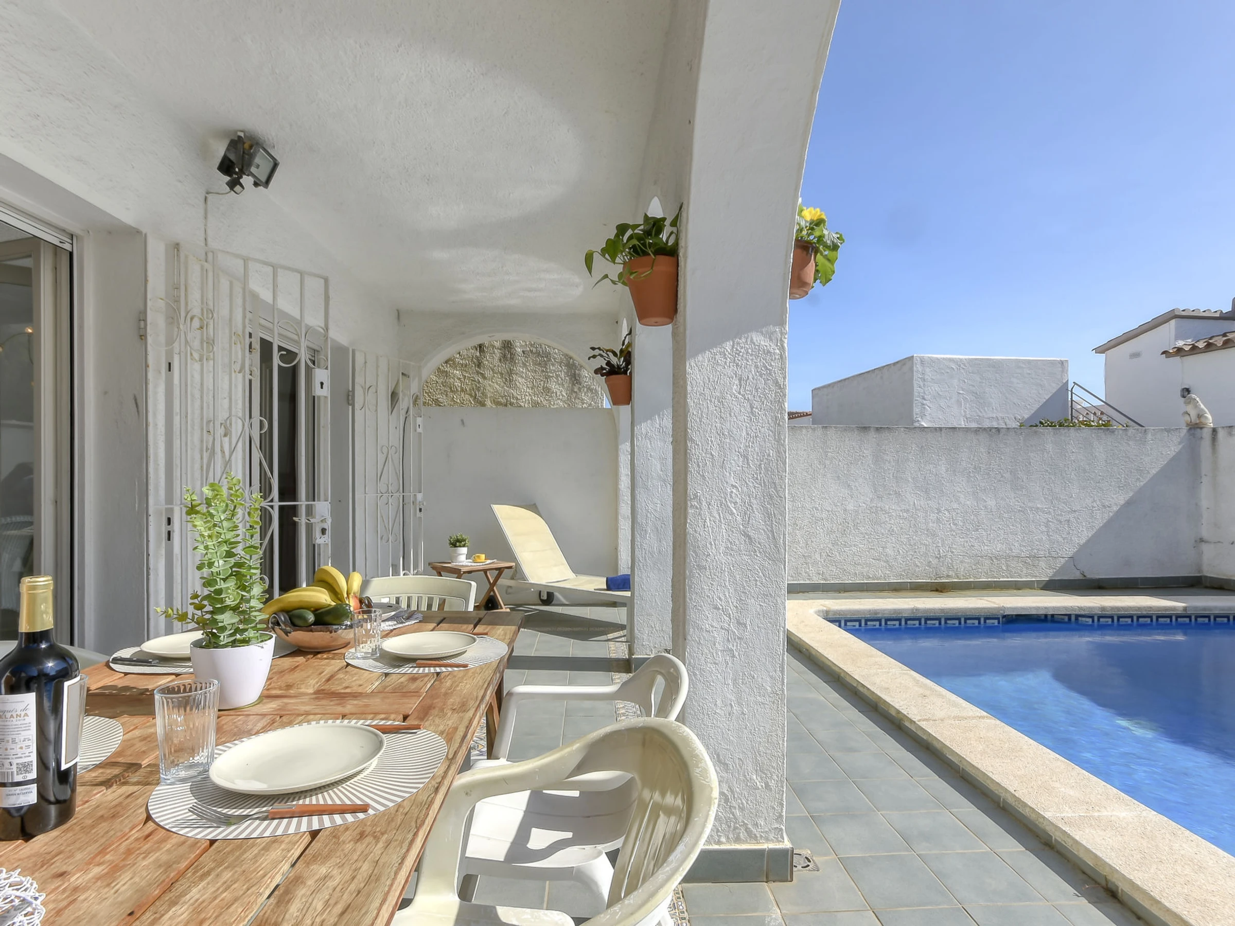 Simple single-family house "Steffy", 2 storeys. In the district of Montgri, 1.2 km from the centre of Empuriabrava, in a quiet, sunny position residential area (villas), traffic calmed area, 1.8 km from the sea, 50 m from the river, south facing position. Private: property, wildlife garden and trees, swimming pool angular (4 x 7 m, depth [hidden] - [hidden] cm, seasonal availability: [hidden] - [hidden] with internal staircase. Pergola, terrace, garden furniture, barbecue, parking on the premises. Shop, grocery [hidden] m, supermarket 1.5 km, restaurant, bar, bakery, cafĂ© [hidden] m, bus stop "Alberes" [hidden] m, railway station "Figueres Renfe Adif" 14 km, sandy beach "Empuriabrava" 1.2 km. Sports harbour 2 km, golf course (18 hole) 14 km, surf school 1.3 km, sailing school 1.3 km, tennis 2 km, minigolf [hidden] m, walking paths from the house, cycle lane 50 m. Nearby attractions: TĂșnel del viento y skydive Empuriabrava 2 km, Parque AcuĂĄtico Roses 6 km, Casino y festival de Peralada 12 km, Museo DalĂ Figueres 15 km, RuĂŻnes de Empuries 21 km, Monasterio de Sant Pere de Rodes 23 km. Hiking paths: CadaquĂ©s / Cap de Creus 20 km. Please note: no lift. The keysâ handover takes place by the agency in Empuriabrava.