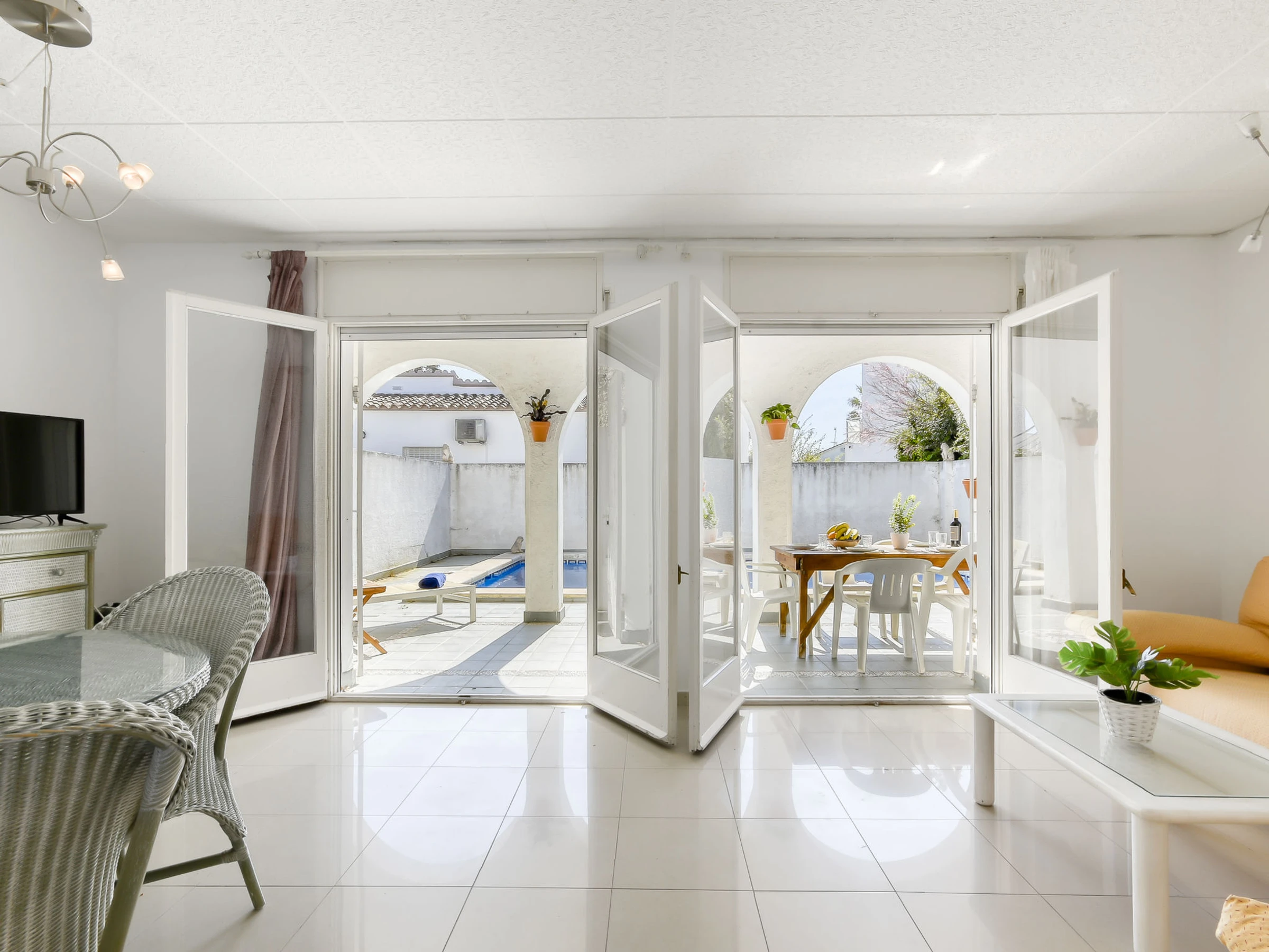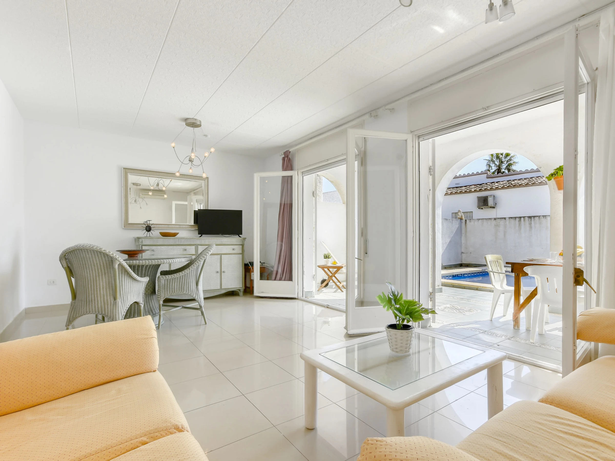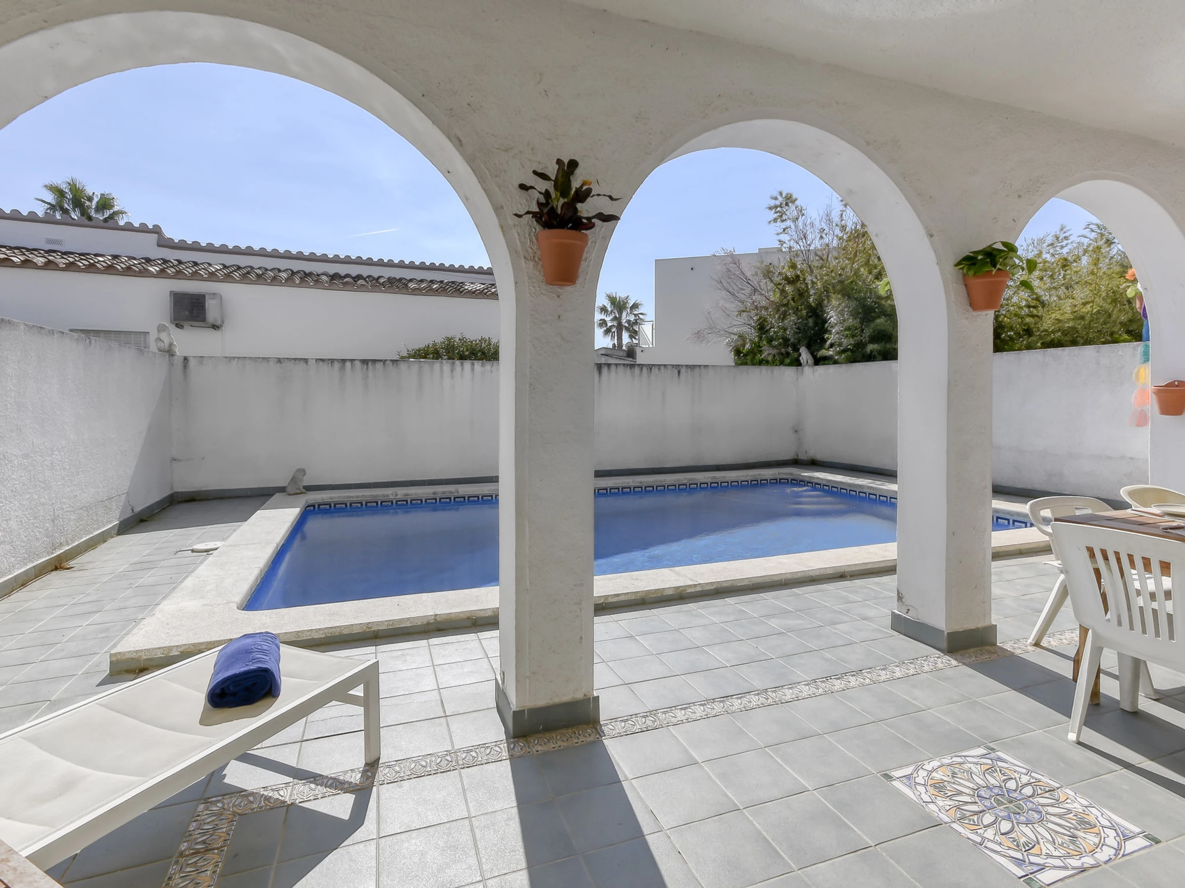 Simple single-family house "Steffy", 2 storeys. In the district of Montgri, 1.2 km from the centre of Empuriabrava, in a quiet, sunny position residential area (villas), traffic calmed area, 1.8 km from the sea, 50 m from the river, south facing position. Private: property, wildlife garden and trees, swimming pool angular (4 x 7 m, depth [hidden] - [hidden] cm, seasonal availability: [hidden] - [hidden] with internal staircase. Pergola, terrace, garden furniture, barbecue, parking on the premises. Shop, grocery [hidden] m, supermarket 1.5 km, restaurant, bar, bakery, cafĂ© [hidden] m, bus stop "Alberes" [hidden] m, railway station "Figueres Renfe Adif" 14 km, sandy beach "Empuriabrava" 1.2 km. Sports harbour 2 km, golf course (18 hole) 14 km, surf school 1.3 km, sailing school 1.3 km, tennis 2 km, minigolf [hidden] m, walking paths from the house, cycle lane 50 m. Nearby attractions: TĂșnel del viento y skydive Empuriabrava 2 km, Parque AcuĂĄtico Roses 6 km, Casino y festival de Peralada 12 km, Museo DalĂ Figueres 15 km, RuĂŻnes de Empuries 21 km, Monasterio de Sant Pere de Rodes 23 km. Hiking paths: CadaquĂ©s / Cap de Creus 20 km. Please note: no lift. The keysâ handover takes place by the agency in Empuriabrava.