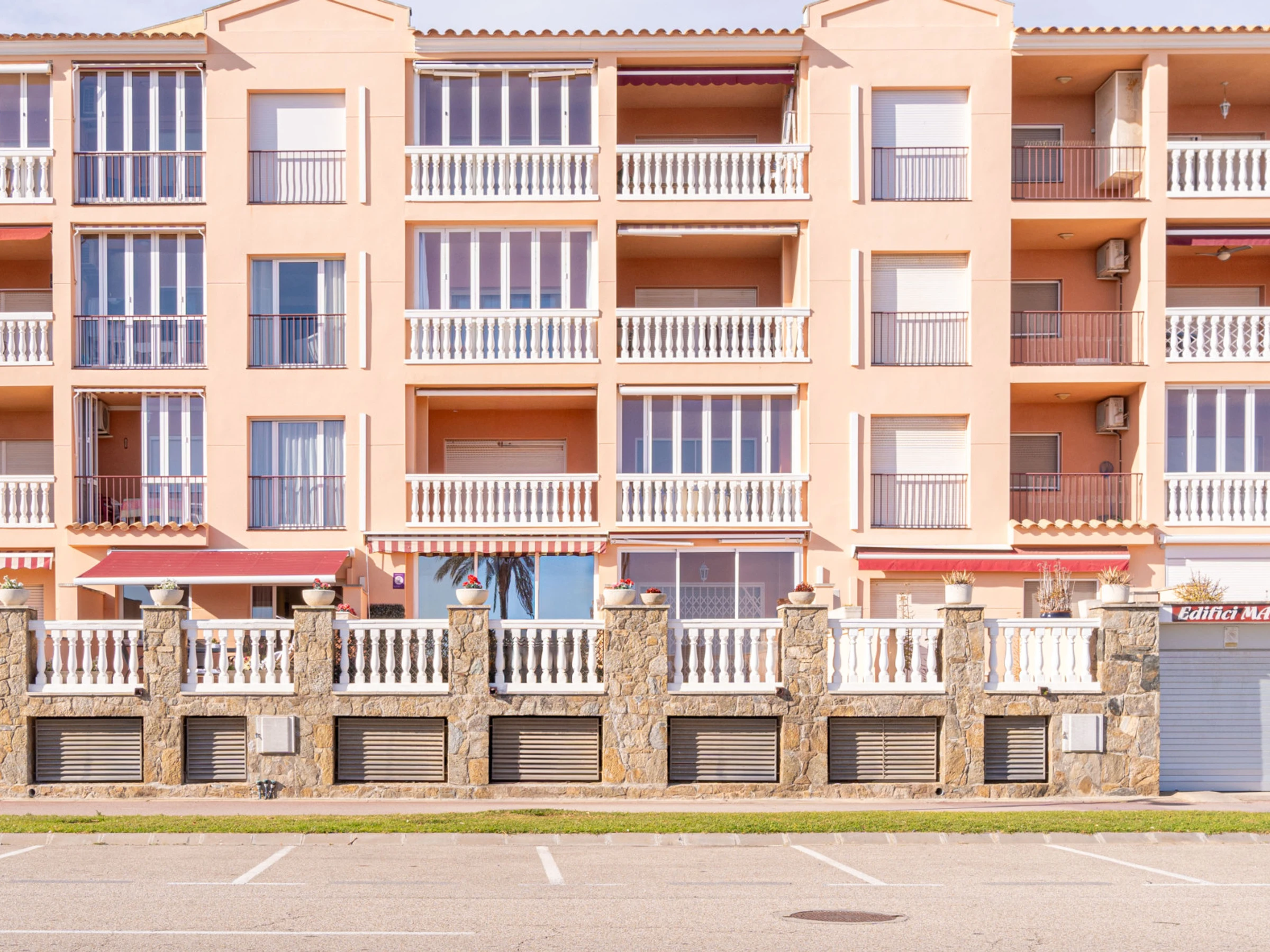 It is located 50 m from the sandy beach, 150 m from the supermarket, 16 km from the “Peralada” golf course, 20 km from the AVE/TGV train station in Figueres and 65 km from Girona airport. It is located by the sea, within a residential complex.