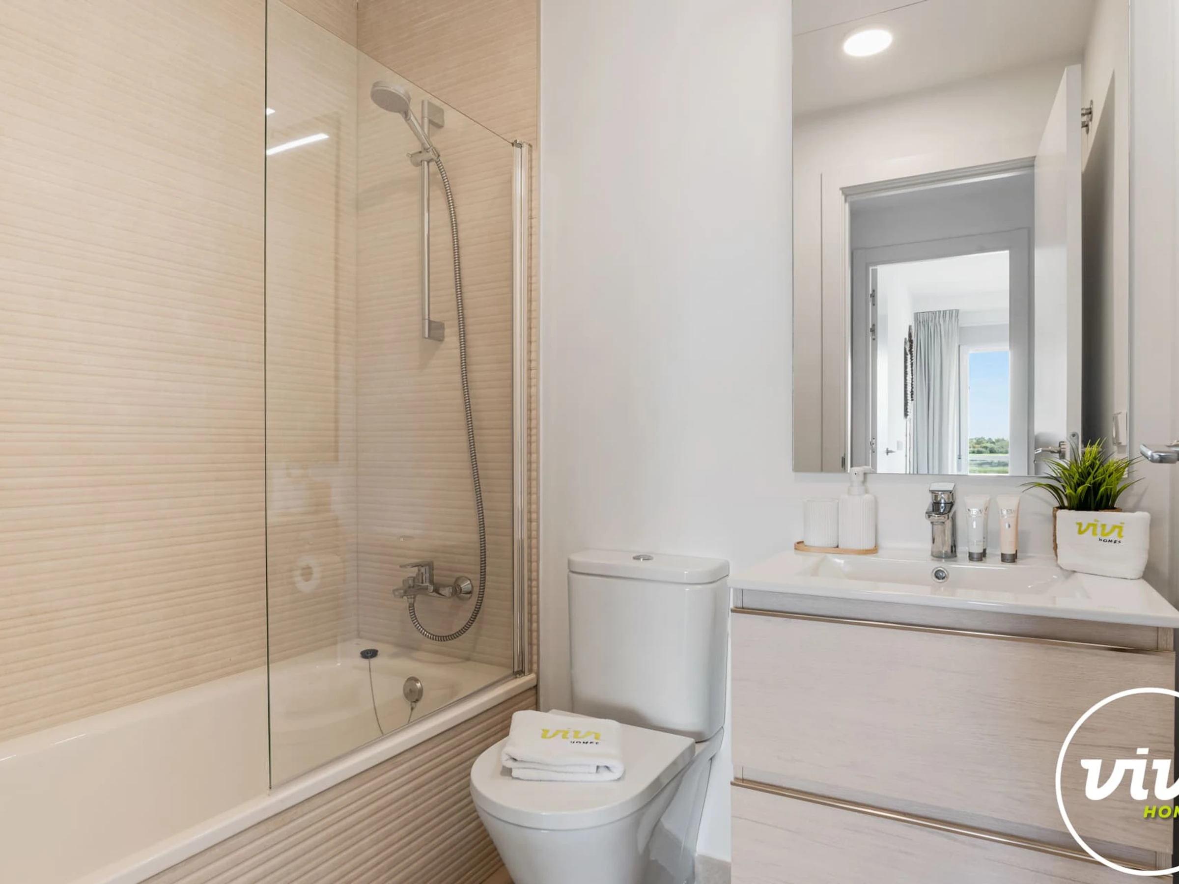 Come and enjoy this brand-new modern apartment with 2 bedrooms and 2 bathrooms in the middle of the New Golden Mile, 10 minutes from Marbella and Estepona.
