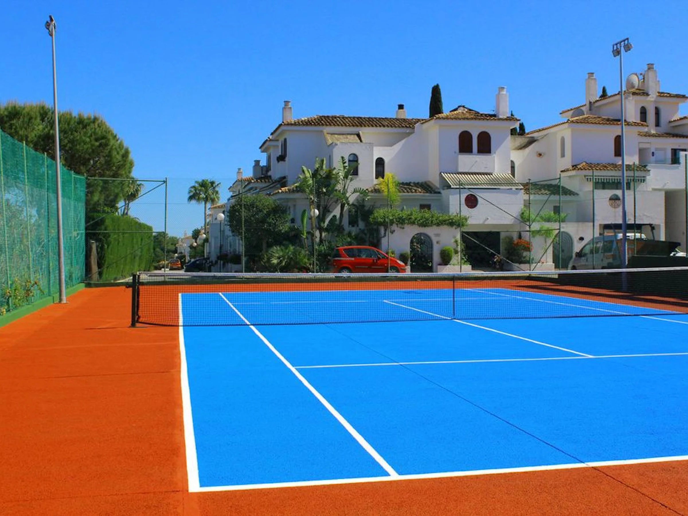 The accommodation is equipped with the following items: garden, garden furniture, 30 m² terrace, washing machine, barbecue, fireplace, iron, internet (Wi-Fi), balcony, tennis court, heat pump, air-conditioned, swimming pool communal+children's, open-air parking in the same building, 1 TV, satellite tv (Languages: Spanish, English, German, French).