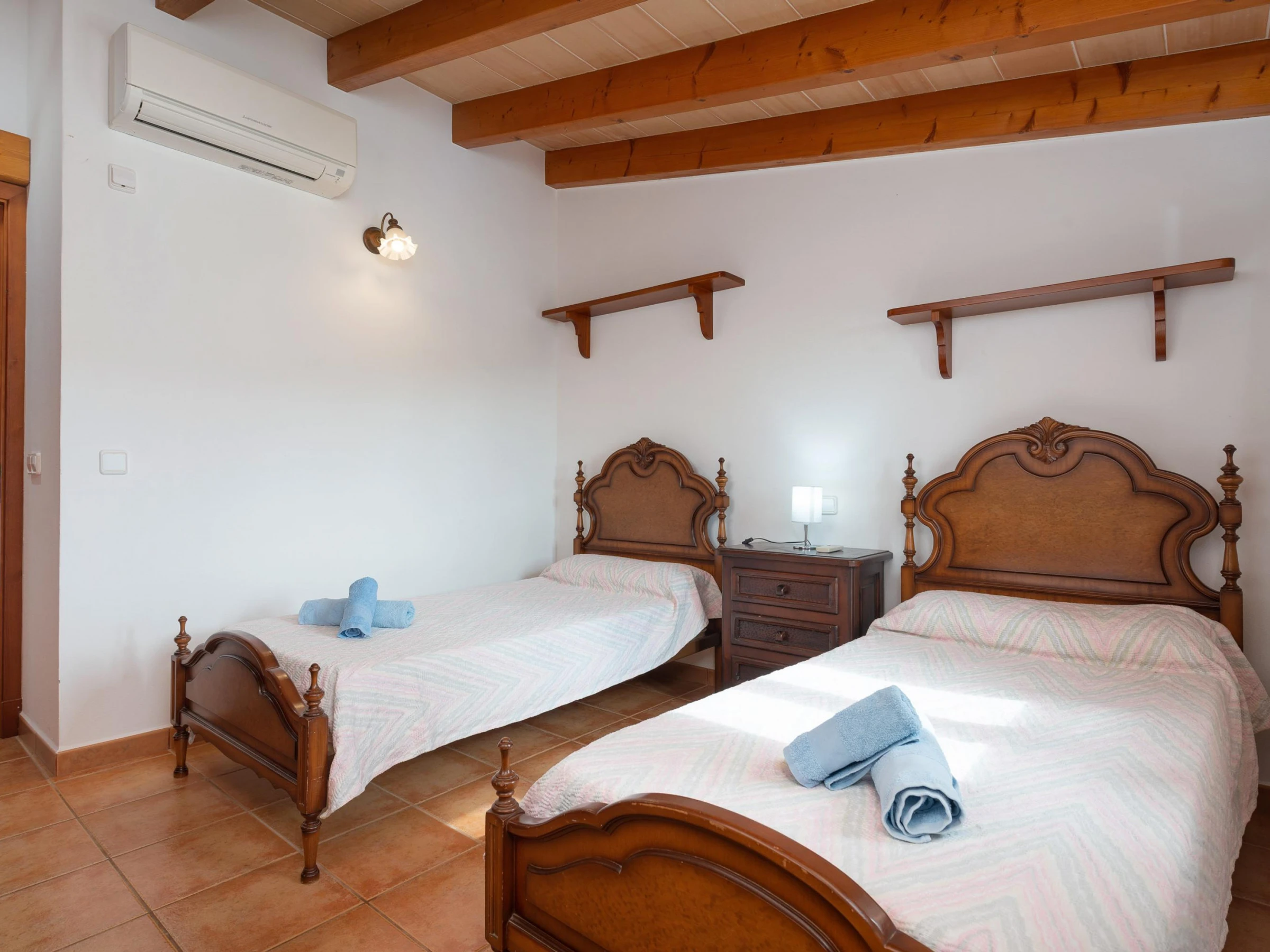 Moving inside, the villa combines a functional design with a cosy atmosphere that will make you feel at home. Distributed over two floors, it consists of a spacious living room with Smart TV, a separate dining room with space for all guests and a modern kitchen fully equipped with ceramic hob and all the necessary utensils to cook like at home. To complete the ground floor, there is a bedroom with two single beds and a full bathroom with shower. Going up to the first floor, you will find the 3 remaining bedrooms; two with double beds and one with two single beds. All rooms are air-conditioned. Up to 2 cots and 2 high chairs are available on request. Finally, the house has a laundry area, iron and ironing board.