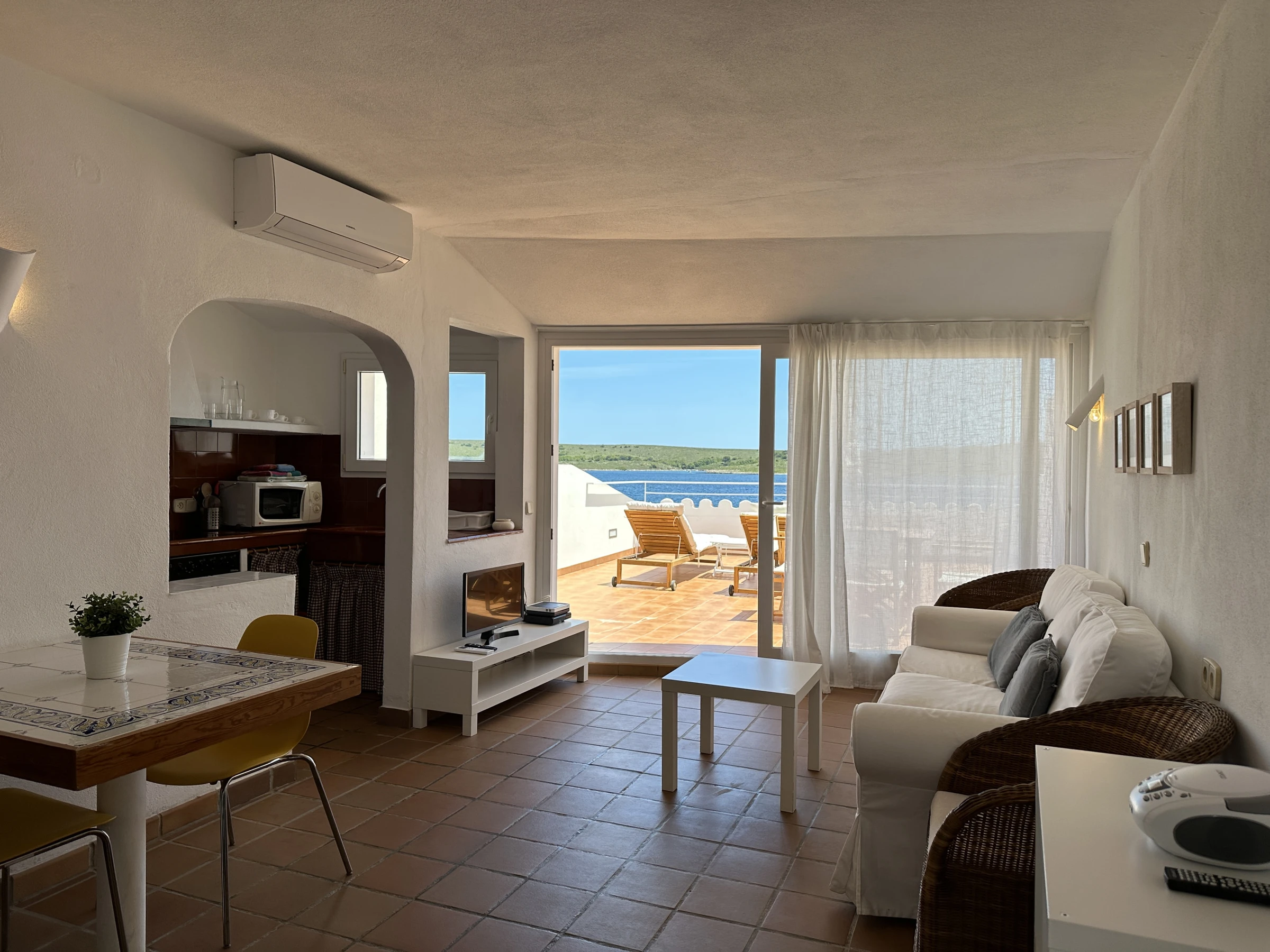 Cosy apartment located on the Paseo Marítimo of Fornells in the very first line and with spectacular sea views. Equipped with air conditioning in the living room and bedroom, as well as WiFi internet access.