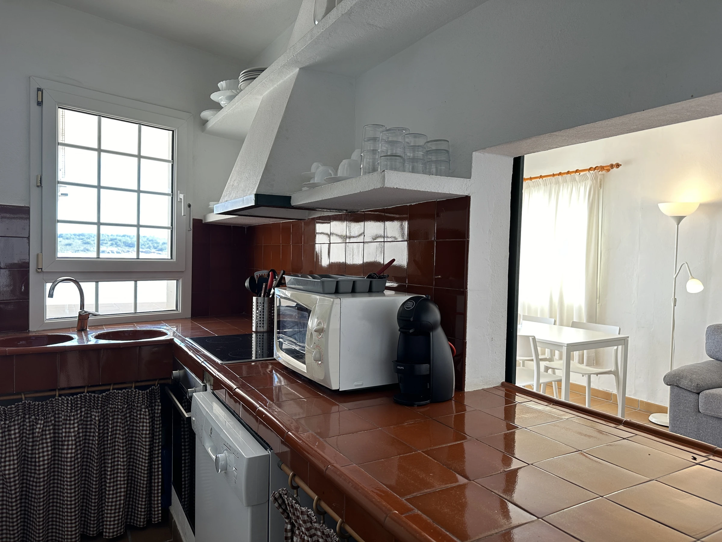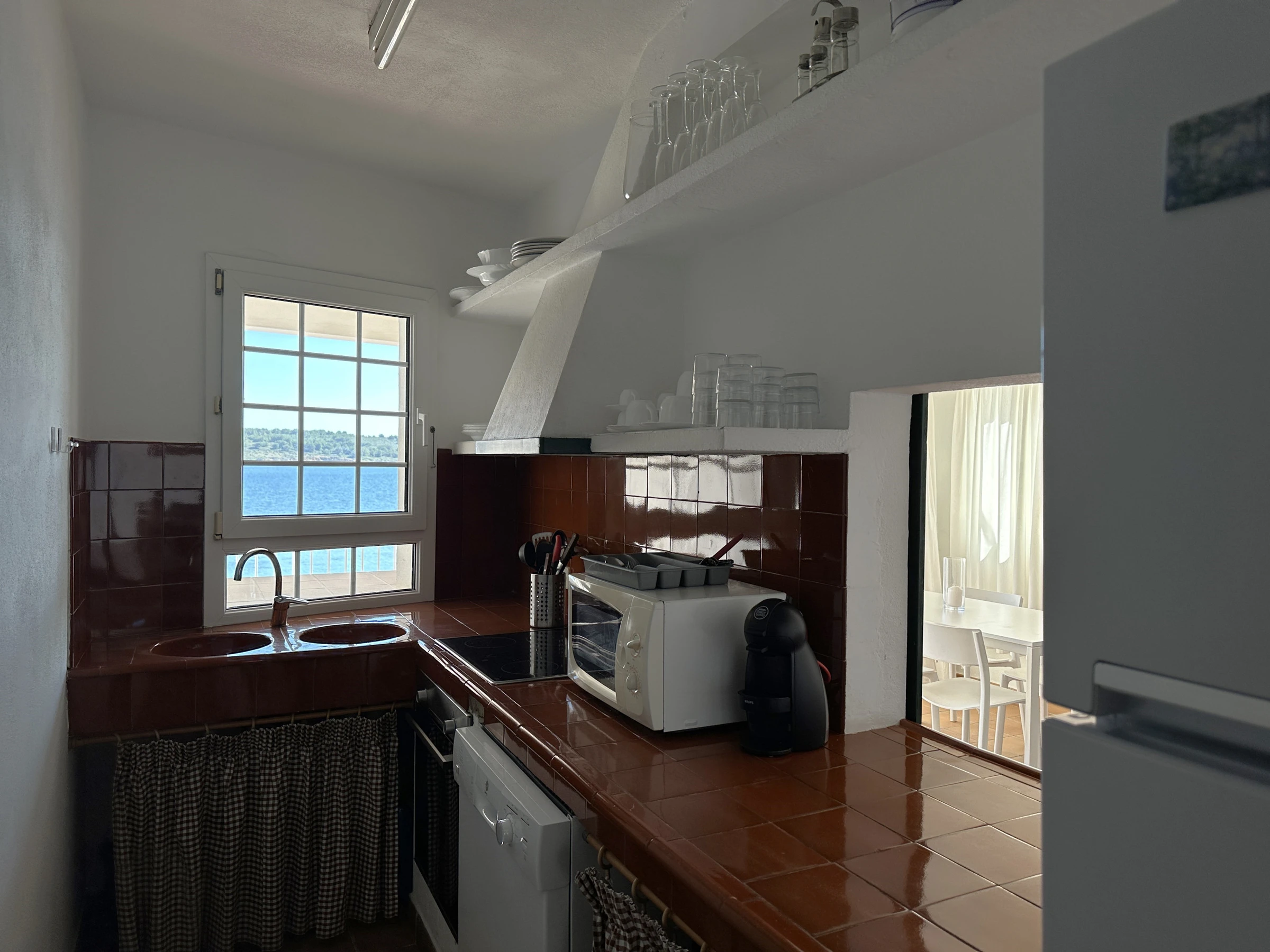 The apartment consists of a master bedroom with double bed and another room with twin beds, two bathrooms (one en-suite), living room with TV, fully equipped kitchen with fridge, dishwasher, washing machine, oven, microwave oven. Large terrace with table and chairs where you will enjoy magnificent views over the bay of Fornells.