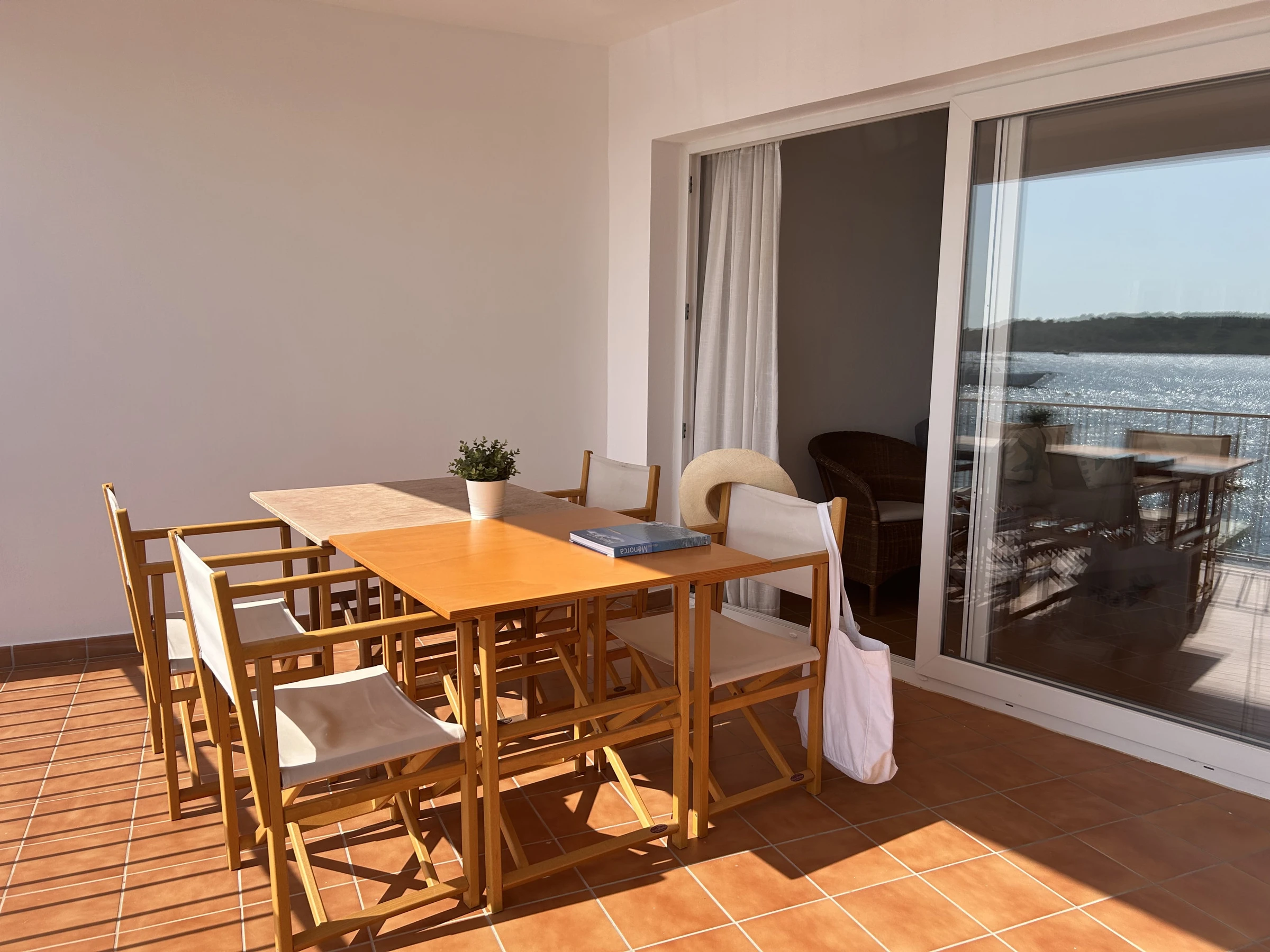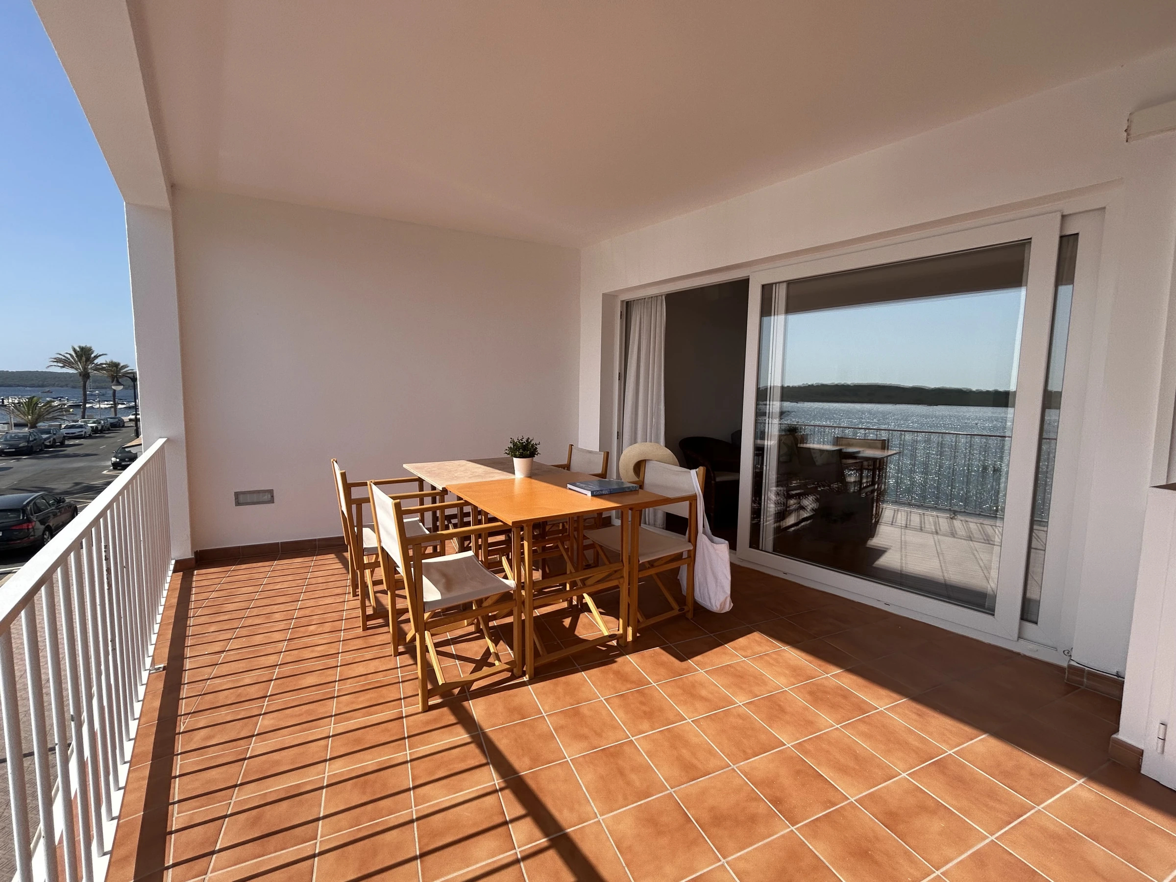 The apartment consists of a main bedroom with a double bed and another bedroom with a single bed, two full bathrooms (one en-suite), living-dining room with TV, fully equipped kitchen with dishwasher, fridge, oven, microwave, etc... and terrace with table and chairs from where you will enjoy magnificent views over the bay of Fornells.