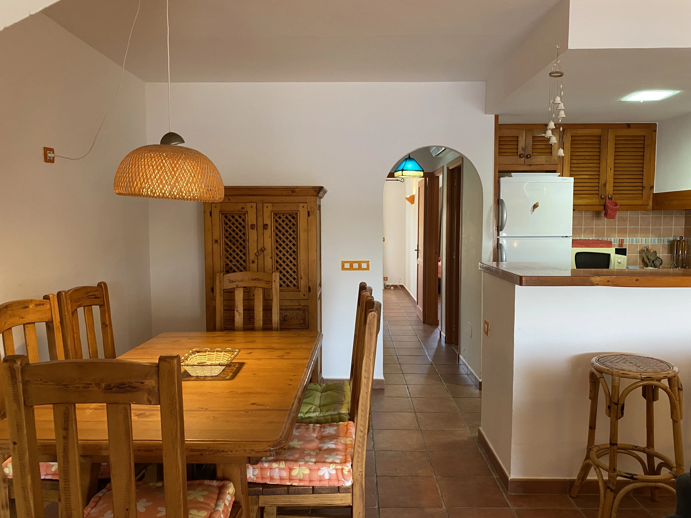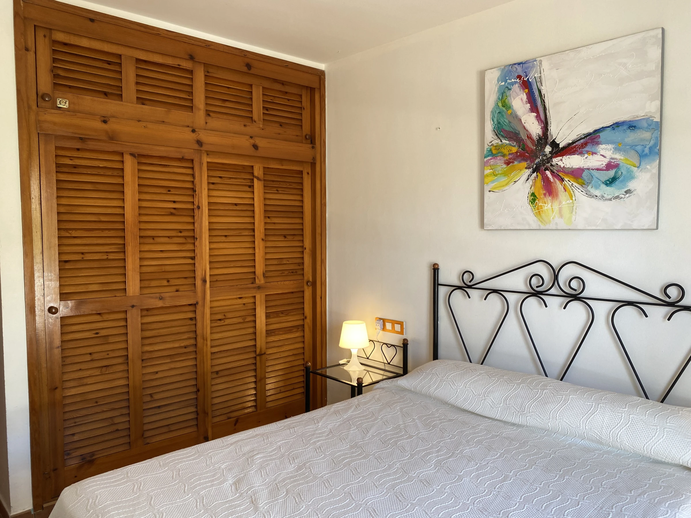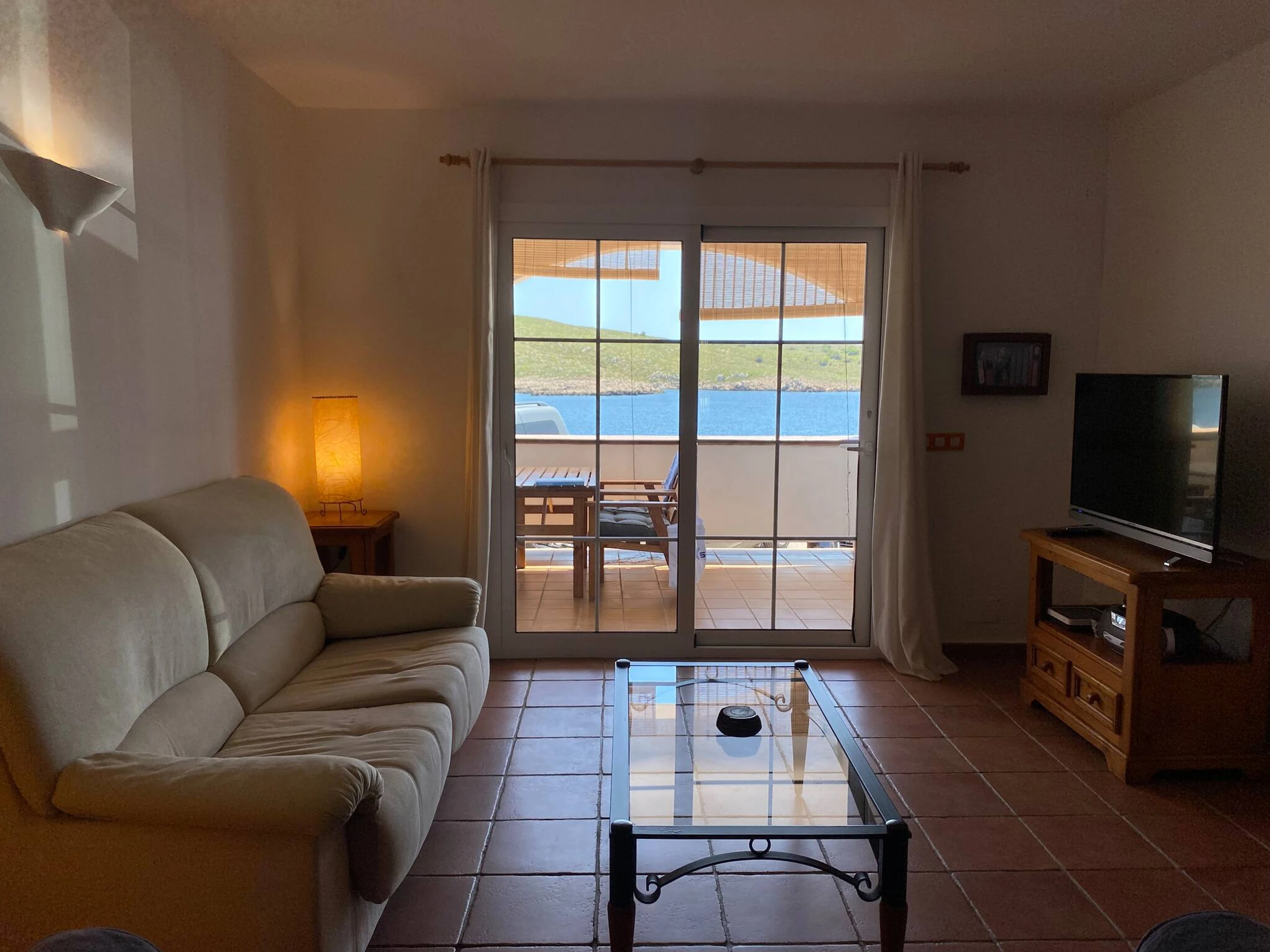 It consists of a spacious living-dining room with air conditioning in the hallway that distributes air throughout the house. It is worth highlighting its terrace with outdoor furniture, fully equipped kitchen, two double bedrooms, two complete bathrooms and a pleasant rear patio with views. If you are looking for a cosy apartment in the first line of Fornells, Caracola will not disappoint you.